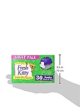 Royal Pet Inc. presents the 30 Count Jumbo Litter Box Liners from their "Fresh Kitty" collection These scratch-guard Jumbo Liners prevent kitty claws from ripping through; designed and scented to prevent yucky cat box odor No more messes! No more scrubbing! When ready for changing, simply lift and tie the liner to dispose of properly Pack includes 30 Jumbo Liners with Ties and fits most litter boxes up to 18" x 20" x 7" Recognizing the critical role pets play in people's families, all Royal Pet products are produced with the simple principle of delivering maximum-grade quality