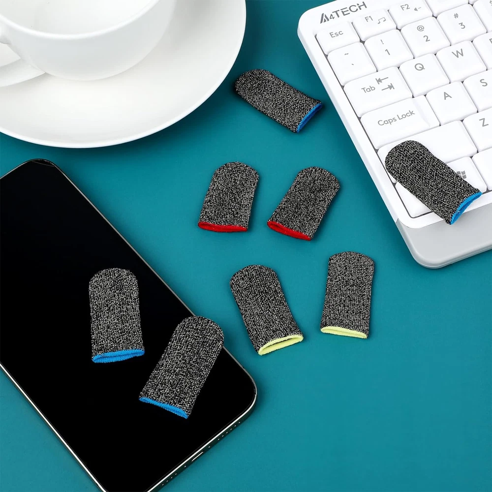 Compatible with all devices: Precision Gaming Finger Sleeves remove friction and "game drag" for the ultimate in touch control accuracy and smooth consistency. High sensitivity: Finger gamer gloves made from genuine carbon fibre, providing highly conductive touch response and sensitivity with strong tensile strength. Not only does it reduce friction on the screen, but it also ensures touch sensitivity, allowing you to fully immerse yourself in the gaming experience without any distractions from the outside environment. Thin and breathable: Finger sleeve for gaming gray is breathable and seamless, greatly enhancing touch sensitivity. Thin, soft and comfortably flexible. Our gaming finger covers resist the adverse effects of moisture, sweat, dust and oil on the game. Highly elastic: The mobile game finger sleeve can be adjusted and fits most people's finger sizes, fits comfortably for different finger sizes, no tightness, no friction, easy to carry and can be kept in your pocket or bag. Packaging: 30 pieces of gaming finger sleeves, enough to meet your gaming daily needs. These finger covers can be used not only when you are playing mobile games, you can also use it while using your mobile phone. Compatible with all devices, finger sleeves for precision gaming for ultimate touch control accuracy and frictionless consistency . With strong tensile strength, it reduces friction on the screen, allowing you to fully immerse yourself in the gaming experience without any outside distractions. Our mobile gaming finger covers resist the adverse effects of moisture, sweat, dust and oil on the game. The mobile gaming finger covers can be adjusted and fit most people's finger sizes for a comfortable fit with no tightness for different finger sizes. Name: 30pcs Seamless Anti-Sweat Breathable Finger Sleeve Gloves for Gaming Colour: red/ blue/yellow Material: fibre Size:4.4 x 2.3cm/1.73 x 0.91inch