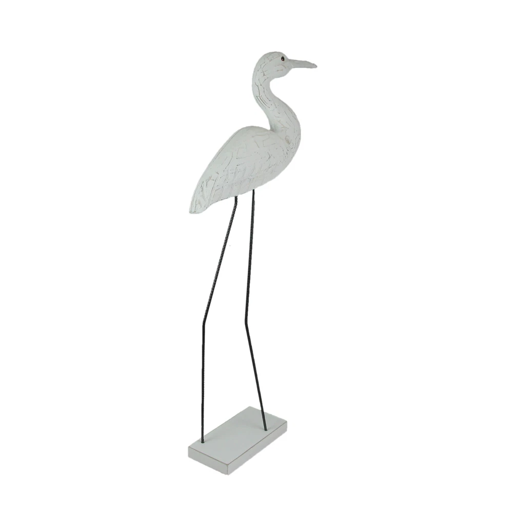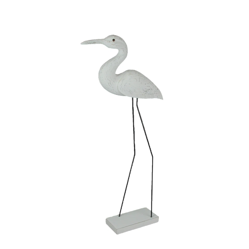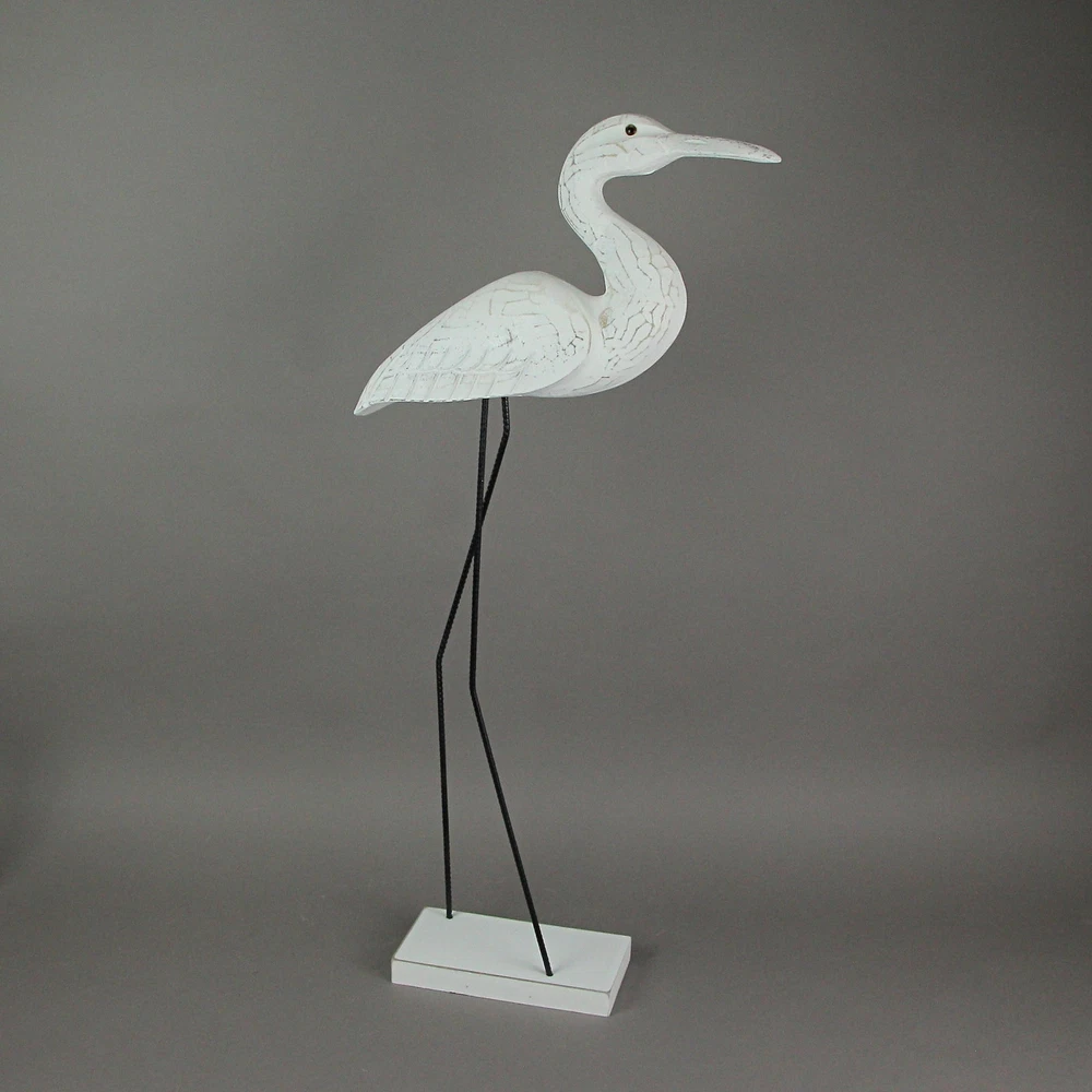 If you love the shore, but live inland, you can bring the look of the coast to your home with this wonderful hand-carved wooden egret statue, with legs made of reinforced steel round bar. Place on a table with plants or on a wall shelf as part of a gallery wall. The white painted finish has a distressed look giving it a seaside appearance. It measures 30 inches high, 10 inches long, and 4 inches wide. This wood and metal statue is a charming way to beautifully complement beach, coastal and nautical decor styles. Our eBay Store About Us Add to Favorite Sellers 30 Inch Hand Carved Wood and Metal White Bird Statue Coastal Decor Sculpture OVERALL SIZE - 10 Inches Long, 4 Inches Wide, 30 Inches High DURABLE MATERIAL - Creatively Crafted of Albesia Wood and Reinforced Steel Bar UNIQUE DETAIL - Hand Carved And Painted For A Unique Sculpture INDOOR / OUTDOOR - Looks Great on Porches and Patios as Well as Bedrooms and Living Rooms GREAT GIFT - For Yourself or For Friends and Family If you love the shore, but live inland, you can bring the look of the coast to your home with this wonderful hand-carved wooden egret statue, with legs made of reinforced steel round bar. Place on a table with plants or on a wall shelf as part of a gallery wall. The white painted finish has a distressed look giving it a seaside appearance. It measures 30 inches high, 10 inches long, and 4 inches wide. This wood and metal statue is a charming way to beautifully complement beach, coastal and nautical decor styles. Product Details Color White Height 30 Length 10 Weight 2.25 LB