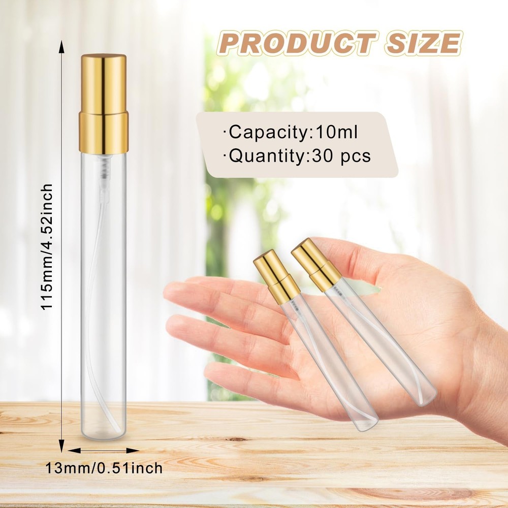 30 Pack Empty Mini Glass Spray Bottle Refillable Fine Mist Perfume Atomizer Portable Travel Sample Spray Bottles Containers For Perfume Essential Oils Cosmetics Liquid (clear bottle, 10ml) Product Details Color: clear bottle Size: 10ml Brand: glasstore MPN: GD0064 UPC: Does not apply EAN: Does not apply Brand: glasstore Color: clear bottle Material: Glass Capacity: 8.53 g Recommended Uses For Product: Perfume Brand: glasstore Color: clear bottle Material: Glass Capacity: 8.53 g Recommended Uses For Product: Perfume Number of Items: 12 Product Dimensions: 0.7"W x 5"H Item Weight: 6.4 ounces Included Components: Nozzle Manufacturer: glasstore Part Number: GD0064 Country of Origin: China Item model number: GD0064 Size: 10ml Batteries Included?: No Batteries Required?: No Date First Available: March 10, 2025 Value Pack:you will receive 30 pcs empty glass Spray Bottles,can meet your daily using and changing needs, you can also share them with your friend or family High quality Material:the bottle is made of thick glass ,sturdy,not easy to break or broking,the aluminum spray nozzles is durable,not be blocked or easily stuck, stable, safe, reliable to use Easy to use and fill:Refillable for long term apply,Easy to refill,just remove the pump, wash and dry the bottle, then refill it in seconds. Leak-proof Design:our aluminum spray nozzle has a plastic threaded ring inside, which matches the threads of the glass mouth,which can match very closely and tightly, which can effectively avoid leaking Portable to carry:our perfume spray bottle size is mini,3ml size:1.4cm*5.7cm;5ml size:1.4cm*7.4cm;10ml size:1.4cm*11.5cm,portable to carry and use,can be easily put into a pocket, wallet, purse or small bag,suitable for traveling or business trips Widely Application:Perfect for storing perfume, essential oils, fragrances, hair spray, Aftershave,Makeup Remover,facial mist and more