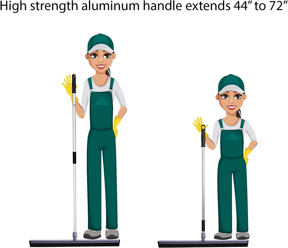 Includes: (1) Premium Double Foam Squeegee Blade 30". Includes: (1) Telescopic 72" High Strength Aluminum Handle. Light-weight plastic squeegee frame reduces fatigue yet is extremely durable. Handle can be set anywhere from 39"-72", this allows for more comfort and control. Works great on flat surfaces but will also work on tile & uneven surfaces. (1) Premium Double Foam Squeegee Blade 30" These are produced with high impact polypropylene acid resistant plastic squeegee frames. The universal locking coupler will accommodate up to a 15/16" diameter handle. The double foam blade is designed to deep clean floors and works on tiles & other uneven surfaces. (1) Telescopic 72" High Strength Aluminum Handle Constructed with high strength aluminum it is built for longer product life and superior performance. It easily extends up to 72" based on what length the user prefers.