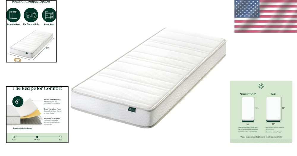 30” Wide x 75” Long Foam & Spring Hybrid Mattress – CertiPUR Certified Comfort ‹ › ‹ › ‹ › ‹ › ‹ › ‹ › ‹ › ‹ › ‹ › ‹ › ‹ › ‹ › 30” Wide x 75” Long Foam & Spring Hybrid Mattress – CertiPUR Certified Comfort Features: Compact size: 75”x30”, 8 inches narrower than a regular twin, perfect for tight spaces like bunks, trundles, day beds, and RVs. Traditional support reimagined: Hybrid design provides even support night after night. Eco-friendly packaging: Arrives in a smaller box, reducing its carbon footprint. Reliable support: Heavy-gauge steel coils are interconnected, ensuring consistent, durable support from head to toe. Built to last: Supports up to 250 lbs for twin sizes and 500 lbs for other sizes. Safe materials: Made from CertiPUR-US certified foam and OEKO-TEX certified mattress cover, free of harmful chemicals. Benefits: Perfect for smaller living arrangements while providing superb comfort and support. Eco-conscious design helps protect our planet. Enjoy the durability and consistent support of interconnected steel coils. Sleep peacefully knowing you’re resting on high-quality, safe materials. Comes with a 10- limited for added peace of mind. Why choose our Hybrid Mattress? Experience a restful night's slumber with our uniquely designed 30” x 75” Foam & Spring Hybrid Mattress. Perfectly engineered to blend the durability of steel coils with the comforting embrace of high-quality foam layers, this mattress offers a harmonious balance of support and softness. Enjoy the peace of mind that comes from sleeping on CertiPUR-US certified materials, knowing that your health and comfort are our utmost priority. Each mattress comes neatly compressed and conveniently packed in a box, making setup a breeze. Redefine your sleep experience with our thoughtfully crafted hybrid mattress—where comfort, quality, and a commitment to the environment coalesce. Elevate your rest today by choosing a mattress that not only supports your body but also contributes to a healthier planet. Shipping Free & Fast Shipping - We offer free shipping to most of the USA with a normal delivery time of 3-7 days. However, due to the current situation, additional delivery time (up to 3 weeks) may be required for some items. Alternative Carriers - We may use alternative carriers (e.g. USPS, FedEx, UPS, etc.) to ensure your package arrives safely and on time. Due to the use of multiple carriers, we are unable to provide a tracking number automatically. Handling Time - Orders are processed and shipped within 1-2 business days of receiving cleared payment. Shipping Restrictions - Shipping to Alaska, Hawaii, Puerto Rico, Guam, and other US territories may incur shipping charges or delivery restrictions. Please contact us before ordering, or your order can be refunded/cancelled. State Restrictions - There may be restrictions based on your state of purchase. For example, certain items may not be shipped to California due to state regulations. Contact for Tracking Updates - If you require tracking updates or have any concerns about the delivery of your order, please feel free to contact us, and we will be happy to assist you. Return 30-Day Hassle-Free Returns - We want you to be completely satisfied with your purchase. If you are not, you can return the item within 30 days of receiving it for a full refund or exchange. Easy Return Process - To start a return, simply contact us and we will provide you with a prepaid return shipping label and detailed instructions. Restocking Fee - There are no restocking fees for returns. However, the buyer is responsible for return shipping costs if the return is not due to a seller's error. Refund Processing Time - Refunds will be processed within 5 business days of receiving the returned item in its condition. Payment We accept all major credit cards, PayPal, and Apple Pay for your convenience. Your payment information is secure and encrypted to ensure a safe and seamless transaction. Please complete your payment within 3 days of purchase to avoid any delays in shipping. Feedback Your feedback is extremely important to us. We strive to provide the best products and customer service possible. If you are satisfied with your purchase, please take a moment to leave us a positive review. If you have any concerns or issues with your order, please contact us before leaving negative feedback. We are committed to resolving any problems and ensuring your satisfaction. Contact Us If you have any questions or concerns, please feel free to out to our customer support team. You can contact us through the eBay messaging system. We are available Monday to Friday, 9:00 am to 5:00 pm EST, and we will do our best to respond to your inquiry within 24 hours. Buy it now and enjoy a pleasant shopping experience! Unit Quantity: 22.7 lb Features: CertiPUR-US Certified,Compact Design,Environmental Friendly,Even Support,Interconnected Coils,Durable Design,Compact,Durable,Comfortable,Supportive,Safe Materials,Environmentally Friendly,Tight Top,Hybrid Technology,Bunk Bed Compatible,Trundle Compatible,RV Compatible Cover Material: Polyester Labels & Certifications: Twin Mattress Firmness: Medium Size: Twin Type: Hybrid Mattress Color: White Thickness: 6 in Mattress Breathability: Medium Style: Contemporary/Modern Room: Bedroom Shape: Rectangle Pattern: New Small Box Number of Springs: 700 Item Weight: 22.7 lb Care Instructions: Do Not Bleach