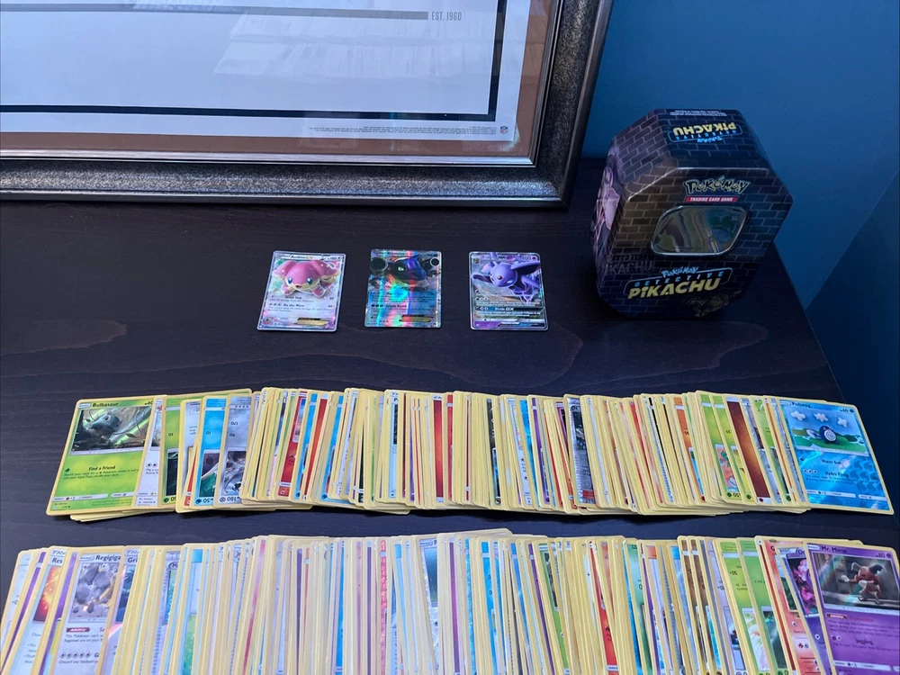 This Pokémon Card Lot contains a whopping 300 cards, perfect for any avid collector or player. Included in this set is a tin for storage and transport. The lot features a variety of Pokémon cards, including some rare and hard-to-find cards. Expand your collection and enhance your gameplay with this massive Pokémon Card Lot. Whether you're looking to add to your existing collection or start a new one, this set has everything you need. The cards in this lot are perfect for use in the Pokémon Trading Card Game (TCG), a popular and engaging card game enjoyed by people of all ages.