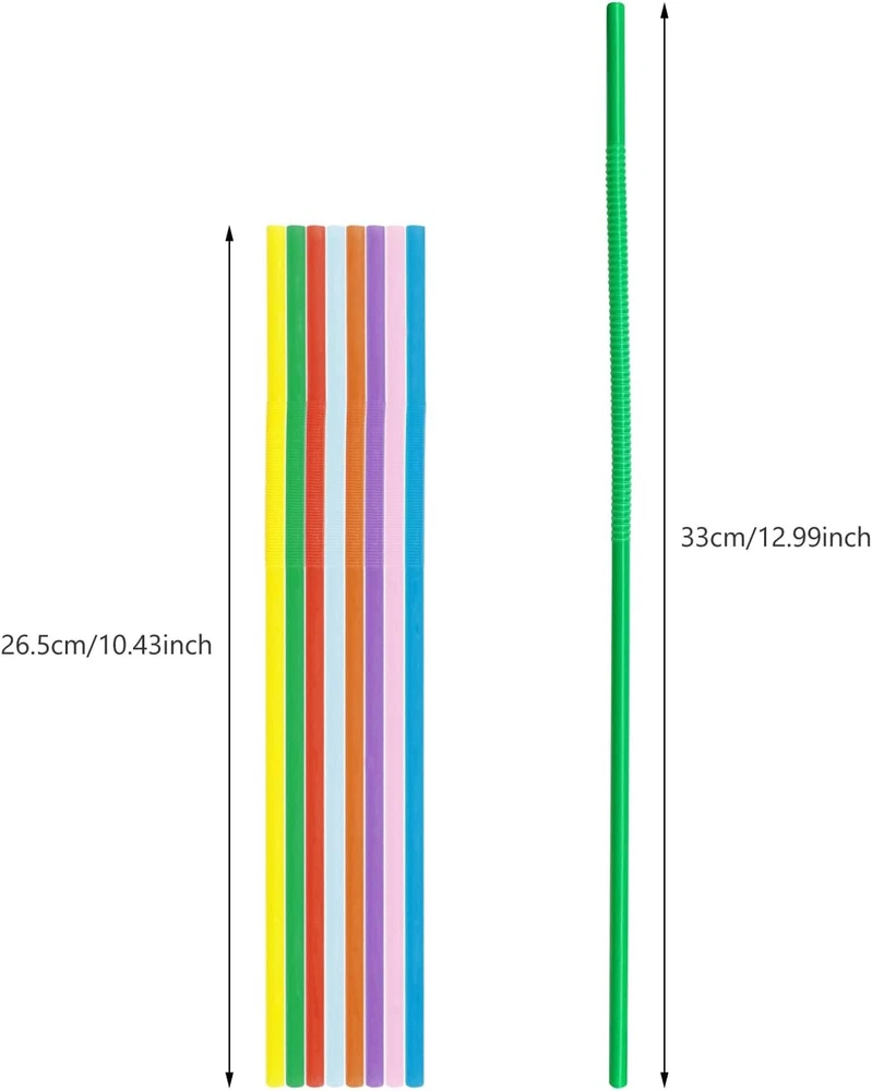 300 Pcs Flexible Large, Rainbow,8 Colors,Yellow,Orange,Green,Red,Pink,Purple Product Details Material: Plastic Color: Rainbow,8 Colors,Yellow,Orange,Green,Red,Pink,Purple Size: Large Special Feature: Durable,Bendable,Flexible,Disposable Brand: KTOJOY Unit Count: 300 Count Number of Items: 300 Product Dimensions: 12.99 x 0.5 x 0.5 inches Item Weight: 9.9 ounces Unique Design: Flexible straws, flexible section can be looped into various shapes for arts and crafts. Both ends are large bottle mouth, no sharp corners, will not scratch the mouth when eating, can easily sip sand ice, pearl milk tea and milkshake Colorful & Playful Striped Straws: 300 straws in 8 colors(Red Pink Yellow Orange Dark Blue Light Blue Purple Grass Green) Multi-colors plastic straws will make you happy every day SIZE: Large quantity of 300 pieces, the straws wide is 0.23 inch (6 mm), and 10.43 inches long, after stretched, the length of the straws will reach to 12.99 inches, can be applied to most containers like bottles, cans and jars Eco-friendly: Made of made of food grade plastic material, BPA-free. and food safe ink, serviceableand sturdy drinking straws that last long, non-toxic and odor-free, will not do harm to your health, one-time use or re-use after washing, can also be used as handcraft WIDE APPLICATION: Great for Birthday party, baby shower, wedding shower, bridal shower, housewarming party, engagement party, graduation celebrations it can create warm and cheerful atmosphere for your party. It also can be applied in arts and crafts Product description Set of 300 paper straw in 8 colors, with all the color of the rainbow Benefits of These Straws: These high quality straws are made of paper material and food grade ink, non-toxic, odor-free, sustainable and sturdy paper drinking straws that last long, good choice for decorating birthdays, wedding receptions, baby showers, graduation celebrations, Christmas, parties, summer picnics and everyday occasions. Keep you in a happy mood while drinking. Specifications: Large quantity of 300 pieces, the straws wide is 0.23 inch (6 mm), and 10.4 inches long, after stretched, the length of the straws will reach to 12.9 inches, can be applied to most containers like bottles, cans and jars, 300 pack