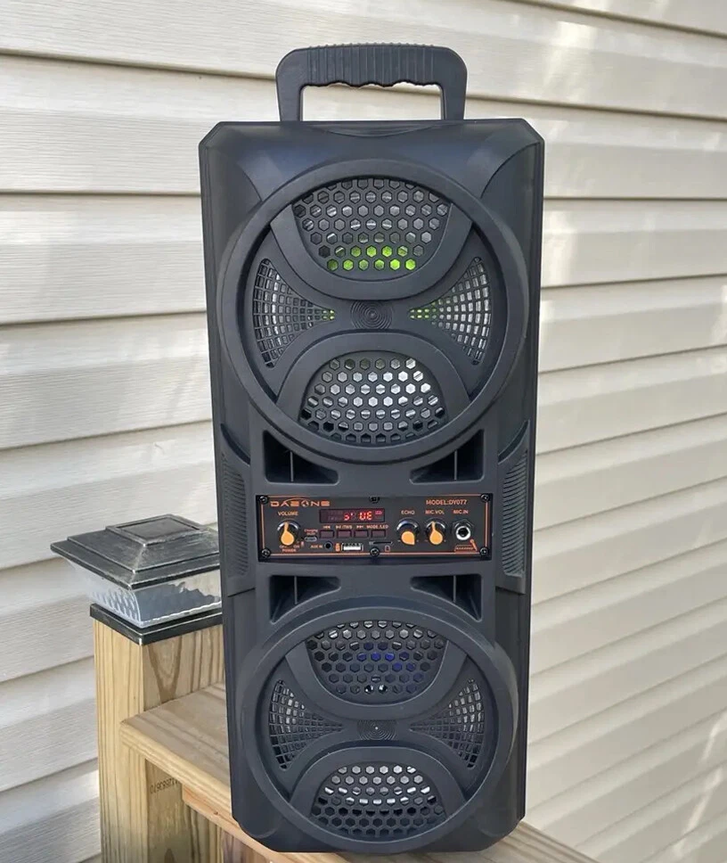 3000W Portable Bluetooth PA Speaker System with 6.5'' Woofer USB FM Remote+Mic Vertical Speaker with Bassstereo Features: Portable BT wireless speaker with super bass stereo sound effect. Support Memory Car,BT,FM,AUX Function. MIC input Connector to sing like karaoke. Vertical design saves more space. Built-in rechargable battery. With LED colorful lighting. Specifications: Output Power: 10W. Power input:5V. Speaker Size: 6.5"*2. BT Operation Distance: 10m. Frequency Response: 90Hz-20KHz. Battery Capacity: 1800mah. Play Time (80% Volume) :2Hours. Charging Time: 3~6Hours. Color: Black Package: 1x Vertical Speaker 1x Charging Cable 1x Manual 1x Auxin Cable 1x Remote control 1x Microphone Delivery details Payment Terms of sales Feedback Contact us Delivery details 1. BUSINESS DAY MONDAY- FRIDAY FAST SHIPPING FROM USA. 2. All orders and payments received before 4PM EST (1PM PST) will be shipped the same business day. 3. No shipping on Saturday,Sunday or USA Public Holidays 4. No responsibility for any custom duty Payment We accept payment by PayPal only. Terms of sales 1. We offer a 60 day money back guarantee or exchange. 2. Buyer pays return shipping and we pay replacement shipping. 3. If you want to initiate a return,please contact us to get a returning address before sending the item back. Feedback 1. We strive to provide the best products and services. 2. Your positive feedback 5 stars DSR help us do better. 3. If anything about your transaction did not meet expectations, please CONTACT US and give us the opportunity to make things right. We are always here to help. Contact us Please do not hesitate to CONTACT US . You can message 24/7 on eBay for all questions and inquiries. We will get back to you within one business days at the latest from Monday- Friday.