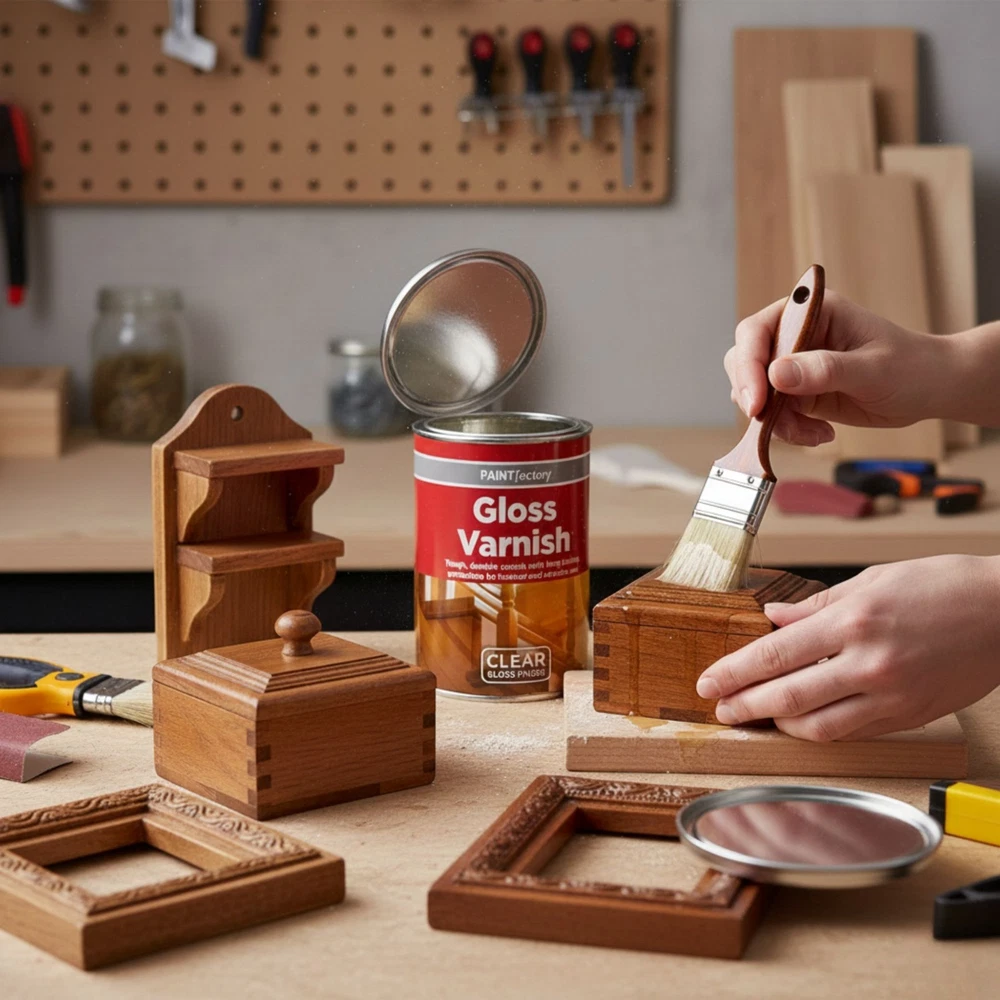 300mlClear Finish Varnish Paint Factory Long lasting Indoor & Outdoor Wood Shine PAINT factory Gloss Varnish is a premium, clear varnish designed to provide a high-gloss, durable finish for all types of wood surfaces. Perfect for both indoor and outdoor applications, this varnish enhances the natural beauty of wood while protecting it from wear, moisture, and fading. Its smooth finish brings a professional, polished look to furniture, staircases, cabinets, and decorative wooden items. This tough and long-lasting varnish offers excellent resistance to scratches, water, and UV rays, ensuring your wood retains its shine and strength for years. It is easy to apply and dries to a clear, glossy finish that highlights the wood grain and texture. Suitable for use on furniture, doors, window frames, and even creative DIY projects, this varnish combines style and protection in one. Ideal for home, office, or outdoor spaces, Gloss Varnish can be applied on wooden furniture, garden benches, decorative crafts, and even mixed material projects like wood and resin art. Its versatile formula allows you to bring a high-quality finish to any project, adding elegance, durability, and water-resistant protection. Perfect for anyone looking to elevate their wooden surfaces with a brilliant, lasting shine.