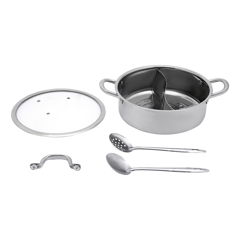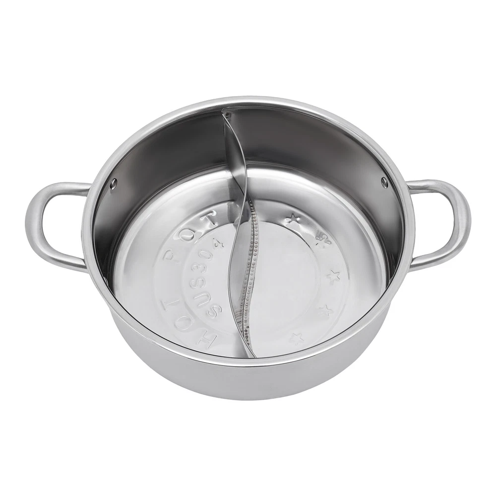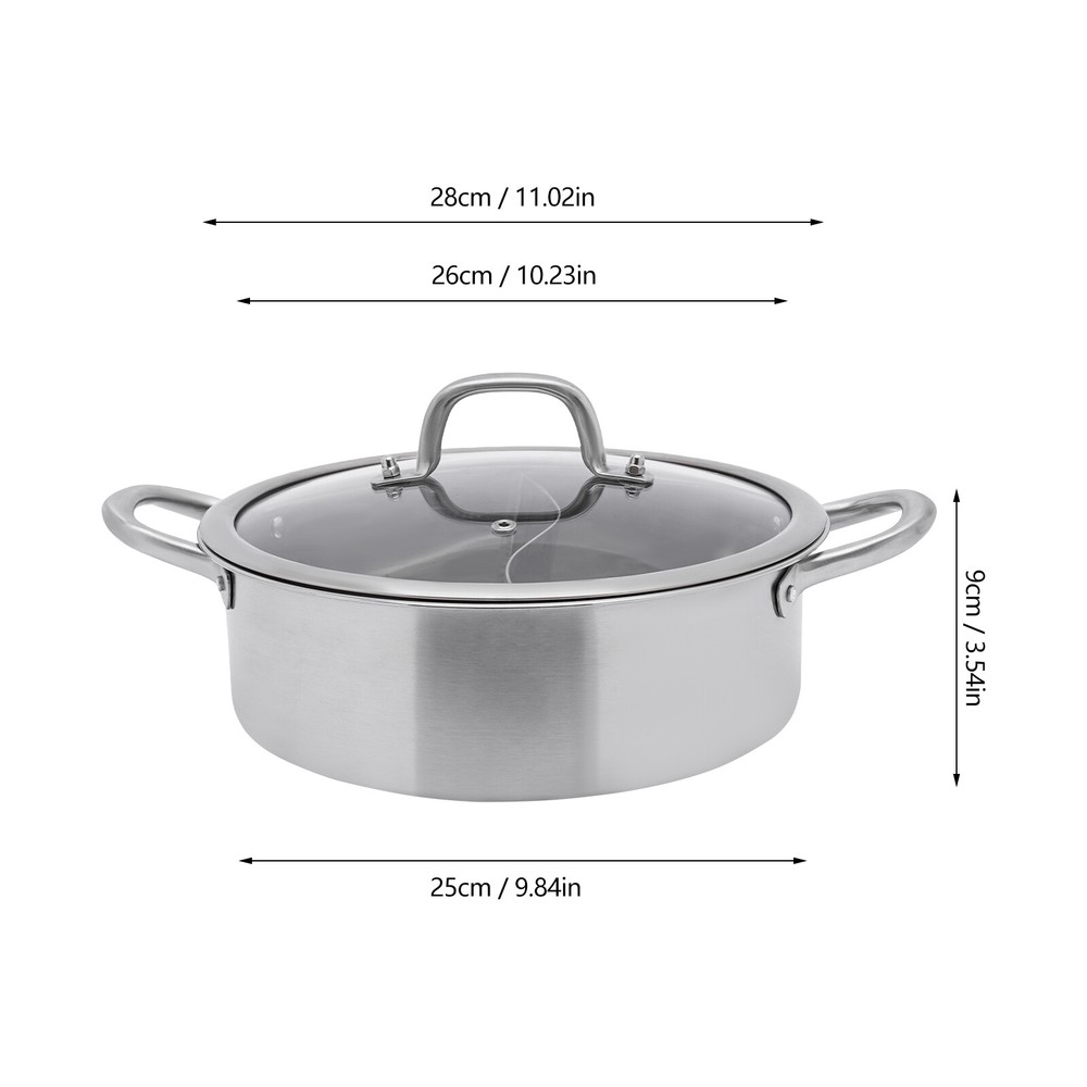 Specification Material: 304 Stainless Steel Color: Silver Style: Modern Assembly Required: Yes Division: 2 Inner Diameter: 26cm/10.23in Specification: 28cm/11.02in Overall Size (D*H): 25*9cm/9.84*3.54in Package Size: 28.3*28.3*13cm/11.14*11.14*5.12in Gross Weight: 1.5kg/3.31lbs Net Weight: 1.4kg/3.09lbs Package Included 1 * Pot 1 * Lid 1 * Leaky Spoon 1 * Spoon 304 Stainless Steel Shabu Shabu Hot Pot with Divider , Lid , Spoon , Leaky Spoon Specification Material: 304 Stainless Steel Color: Silver Style: Modern Assembly Required: Yes Division: 2 Inner Diameter: 26cm/10.23in Specification: 28cm/11.02in Overall Size (D*H): 25*9cm/9.84*3.54in Package Size: 28.3*28.3*13cm/11.14*11.14*5.12in Gross Weight: 1.5kg/3.31lbs Net Weight: 1.4kg/3.09lbs Package Included 1 * Pot 1 * Lid 1 * Leaky Spoon 1 * Spoon Description Are you still feeling frustrated about the different tastes of family members? Or would you like a delightful hot pot? So don't miss out on our product. It is made of high-quality materials with a partition in the middle, which can meet the different taste needs of family members. Don't hesitate, come and buy to add more joy and convenience to life. Key Features Build to Last: It is made of 304 stainless steel, making it durable, healthy, and rustproof to meet your long-term cooking needs. Large Capacity: The inner diameter of 10.23 inches and the height of 3.54 inches can provide you with enough capacity, whether it's for friends' gatherings or family dining, it can provide enough food. Good Helper: Because of the divider design, you can cook two different flavors of soup at the same time to meet the different preferences of the family and promote family harmony. Excellent Kitchenware: A right-angled design and flat bottom provide a larger heating surface and allow your ingredients to be heated more evenly, making the dishes more delicious. Visual Design: The clear glass lid allows you to constantly observe the condition of the cooking food, making it more convenient to use. Complete Accessories: In addition to the pot and lid, the package also comes with a leaky spoon and spoon, making it more convenient for you to use and eliminating the need to reorder accessories. Easy to Clean: It has a simple structure and a smooth surface, and you only need to wash it with clean water and clean it with a damp cloth (not included). Customer Service: We aim to provide quality products and services. If you have any problems, please feel free to contact us. We will reply and solve the problem for you as soon as possible. Details Practical Handles: There are handles on both sides of the pot and the top of the lid, making it easier for you to pick them up and put them down while protecting your hands from being scalded. Large rivets ensure high weight capacity, stability, and durability. Round Edges: The smooth, and burr-free edges make it not only more comfortable to use but also care for your skin. Application It can be used in kitchens in hotels, restaurants, homes, etc. Notes Please wash in hot water with dishwashing liquid before first use. Please do not heat an empty pot for a long time to avoid deforming the pot. Please be sure to dry the pot and the bottom of the pot after each use. Please avoid detergent residue as it may corrode the surface of the pot. Please avoid placing strong acids and alkali food in the pot for a long time. Please allow the slight color difference caused by the shooting light and 1-3cm error due to manual measurement, and make sure you do not mind before ordering. Payment Delivery details Terms of sales About us Contact us Payment We accept ebay payment 。 Fees such as import duties, taxes are not included in the item price or shipping costs. These charges are the buyer's responsibility. Delivery details Shipping: 2-9 working days to: USA Terms of sales We maintain high standards of excellence and strive for hundred percent customer satisfaction. Feedback is very important to us. We hope that you contact us immediately before you give neutral or negative feedback, so that we can address your concerns. It is impossible to address issues if we do not know about them! About us Your satis faction is our ultimate goal. We work hard to earn your trust and future business. Our certified technicians have tested each item before shipping. The unit comes with 1 year limited warranty on all manufacturing defects. a) If you receive a defective item, you may return it or ask for a discount. Please contact us within 14 days after you receive the package. b) What you returned must be intact and in its original packaging as re? u. Customer is responsible for shipping costs of the returned item. c) We will cover the cost of shipping back t with the shipping rate indicated in the registration page. We will send you a new unit or refund the full payment you paid. Thank you. Contact us Business Hour Business Hour: Monday To Friday: 8:30 AM to 5:00 PM (Beijing China time) Due to time zones, our reply to your questions may not be immediately. But within above working time, we will reply your email within 24 hours. If it's non-workdays, please kindly be patient and wait till Monday. Please contact us with ebay message. Please feel free to contact us if you have any questions. Monday To Friday: 8:30 AM to 5:00 PM (Beijing China time) Due to time zones, our reply to your questions may not be immediately. But within above working time, we will reply your email within 24 hours. If it's non-workdays, please kindly be patient and wait till Monday. Please contact us with ebay message. Please feel free to contact us if you have any questions. On Jun 27, 2025 at 00:11:33 PDT, seller added the following information: