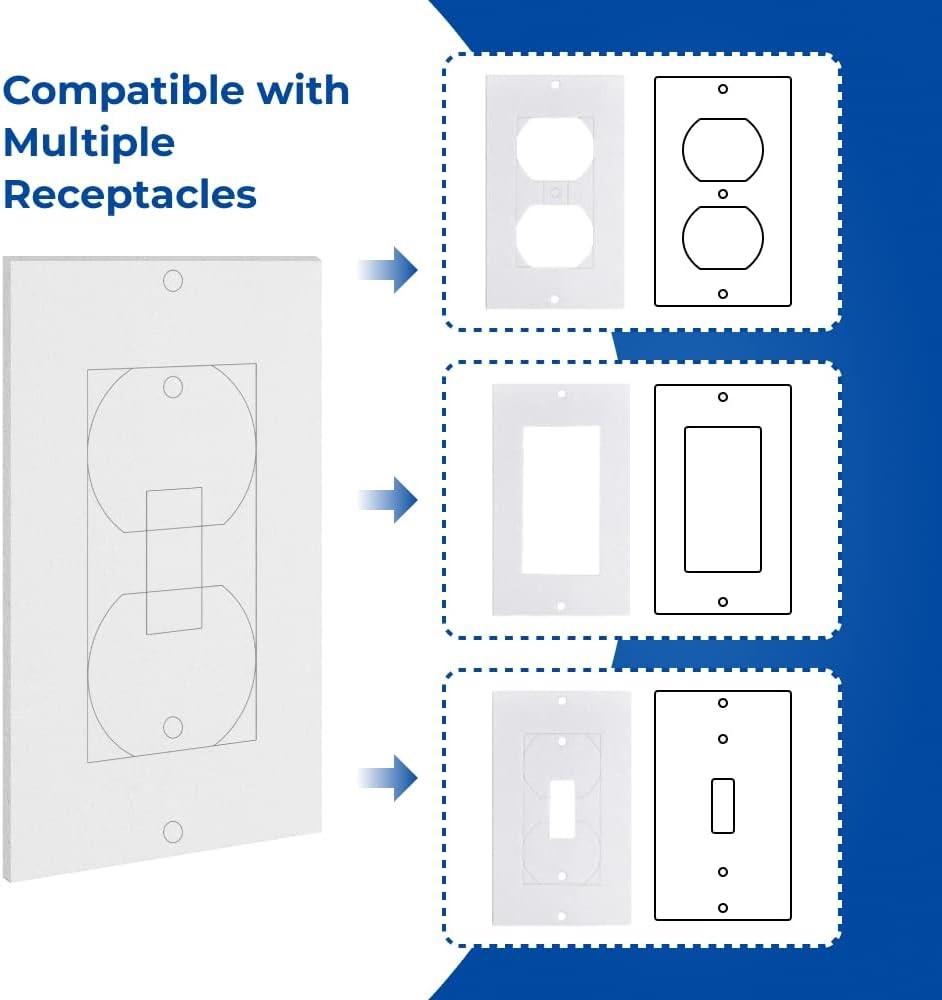 Wall Insulation Outlet Insulators Draft Sealers, 30 Pack 30Pack White Product Details Switch Type: Duplex Material: EVA, Ethylene Vinyl Acetate Brand: Mrayaki Color: 30Pack White Product Dimensions: 2.5"W x 4.2"H Finish Type: Polished Configuration: duplex Installation Type: Screw-In Manufacturer: Mrayaki Part Number: AK0010-30W Item Weight: 1.44 ounces Country of Origin: China Item model number: AK0010-30W Finish: Polished Included Components: 30 Pack Electrical Outlet Insulation Pads Batteries Included?: No Batteries Required?: No Switch Type: Duplex Material: EVA, Ethylene Vinyl Acetate Brand: Mrayaki Color: 30Pack White Product Dimensions: 2.5"W x 4.2"H 【Size to Seal】The outlet gasket insulation is about 2.5 x 4.2 inches in size that fits most sockets and switches nicely, which can tightly seal the outlets, not allowing the air to flow out easily, making them an essential addition to any energy-saving strategy. Please confirm the sizes before ordering. 【Firmly Applied】Made of safe EVA Insulating Material, The Wall Plate Insulation Gasket Is Non Flammable and Weatherproof, Safe and Sturdy, Which Features Good Resilience,and Can be safely used in any room of the house. 【One Fits 3 Types】Switch insulation gaskets are suitable for mainstream types of wall plate openings, including toggle, duplex, rocker,bank and their combined configurations. 【Easy to Install】The pre-cut design makes the socket sealers easy to use by matching the right type of shape, cutting off the excess, then installing under the socket cover for use.