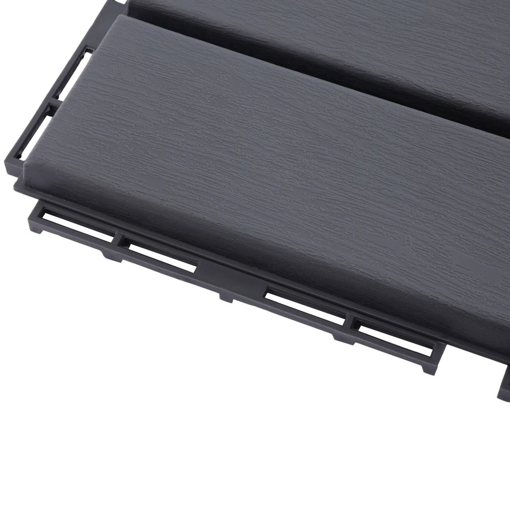 These interlocking deck tiles are a game-changer! Super easy to install—no tools needed, just snap them together. The dark gray wood grain looks stylish and realistic, perfect for sprucing up patios or balconies. Sturdy PP material holds up well outdoors, and the thickness provides great support. Shipping was fast, and the value for 30 tiles is unbeatable. Highly recommend for DIYers wanting a quick, affordable upgrade!