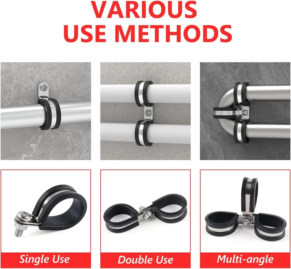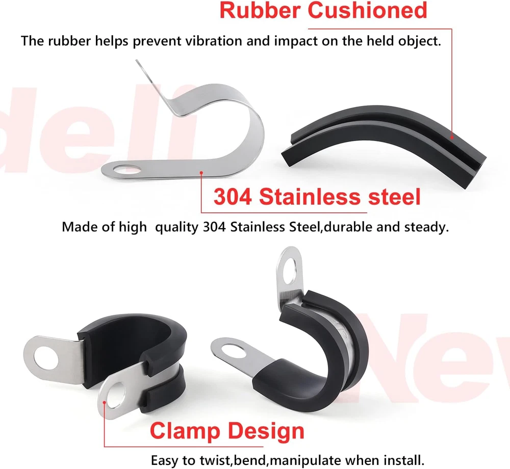 Store New Arrivals Add to Favorite View Feedback Contact 30Pcs Cable Clamps 1/2 Inch Stainless Steel Cable Clamp Rubber Cushioned Hose Clamp Insulated Tube Clips Automotive Wire Pipe Clamps Description Item model number cable clamps Item Package Quantity 1 Style 30Pcs 1/2" Material Stainless Steel, Rubber Country of Origin China Batteries Required? No Item Weight 10.8 ounces Batteries Included? No Package Dimensions 8.74 x 6.26 x 0.83 inches Included Components pipe clamps 【Cable Clamps Kit】The stainless steel cable clamp Kit includes 30 pieces 1/2 inch cable clamp. Fit for M6(1/4") screw bolt to through the screw hole. 【R-shape design】Unique R-shape design, flexible twisting and easy control during installation, simple disassembly, just use screwdriver and screws to fix the cable clamps in the proper position, saving time and effort, recyclable and reusable for long term use. 【Quality Assurance】: Made of 304 high-quality stainless steel with rubber-coated cushion, these clamps offer superior corrosion resistance and durability for long-lasting use. 【Worry-Free Use】: The rubber-coated clamp helps to prevent vibration and impact on the held objects, while the easy installation process and reliable rubber insulation ensure a secure and safe fit. Say goodbye to rusting and breaking worries with these strong, reliable cable clamps. 【Wide Application】: With the ability to effectively protect lines and tubes from impacts and vibrations, these cable clamps are perfect for automotive, industrial, marine, household, and outdoor use in securing wiring, cables, pipes, and racks. Product Description Newdeli Cable Clamps Assortment Kit Add to Cart Add to Cart Add to Cart Add to Cart Customer Reviews 4.7 out of 5 stars 42 4.7 out of 5 stars 42 4.7 out of 5 stars 42 4.7 out of 5 stars 42 Price $20.99 $ 20 . 99 $22.99 $ 22 . 99 $35.99 $ 35 . 99 $39.99 $ 39 . 99 Specification 6 Sizes 56Pcs 3 Sizes 72Pcs 10 Sizes 110Pcs 12 Sizes 125Pcs Clamp hole diameter 1/4 inch 1/4 inch 1/4 inch 1/4 inch Nylon R-type ✔ ✔ ✔ ✔ 304 stainless steel ✔ ✔ ✔ ✔ Prevent vibration and impact ✔ ✔ ✔ ✔ ABOUT US We offer the best prices around on high quality products. Our E-store includes media such as books, movies, music and games while offering electronics, toys, sporting apparel, clothing, tools, general home, garden items and more. SHIPPING We are always working hard to ensure your package arrives as soon as possible. Please understand that some factors like weather, high postal traffic, and the performance of shipping companies are outside of our control. We offer free shipping to the lower 48 states and ship within 2 business days of payment, usually sooner. We do not accept P.O. Boxes. Please provide a physical address. RETURNS We offer a 30-Day Return Policy on items which you are not completely satisfied with. You have the option for a full-refund or an exchange of the item. No returns are available on items shipped outside of the USA. PAYMENT We accept PayPal. CONTACT US This page content is yet to come Please ad us to your favorite seller and visit again later Thank You CUSTOMER SATISFACTION We try our very best to make sure every customer is completely satisfied. If there's a problem, message us! We're happy to help.