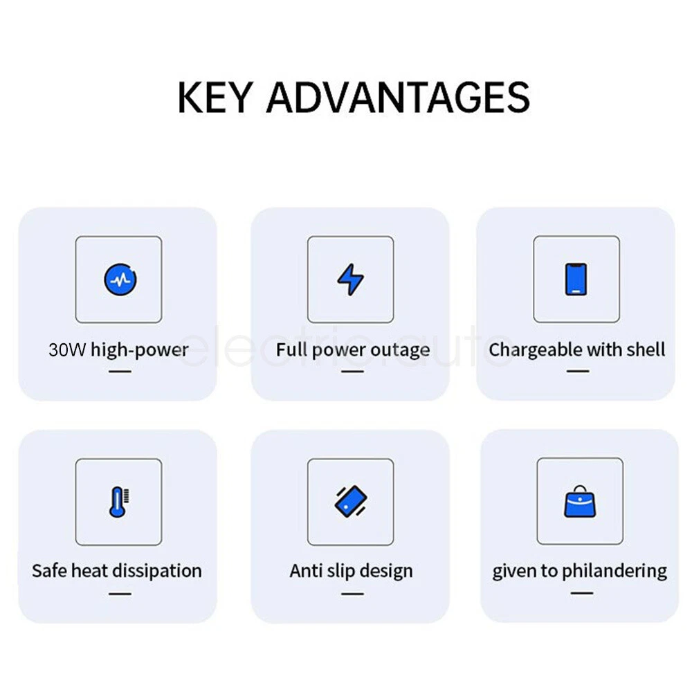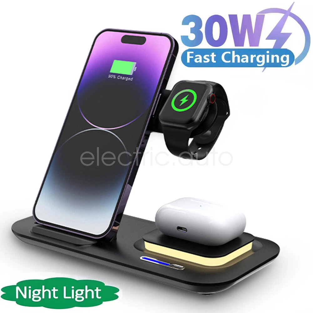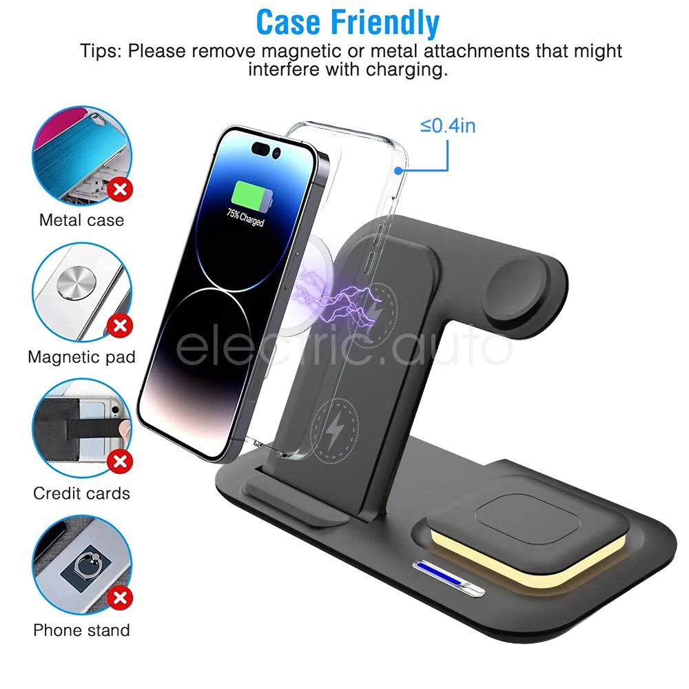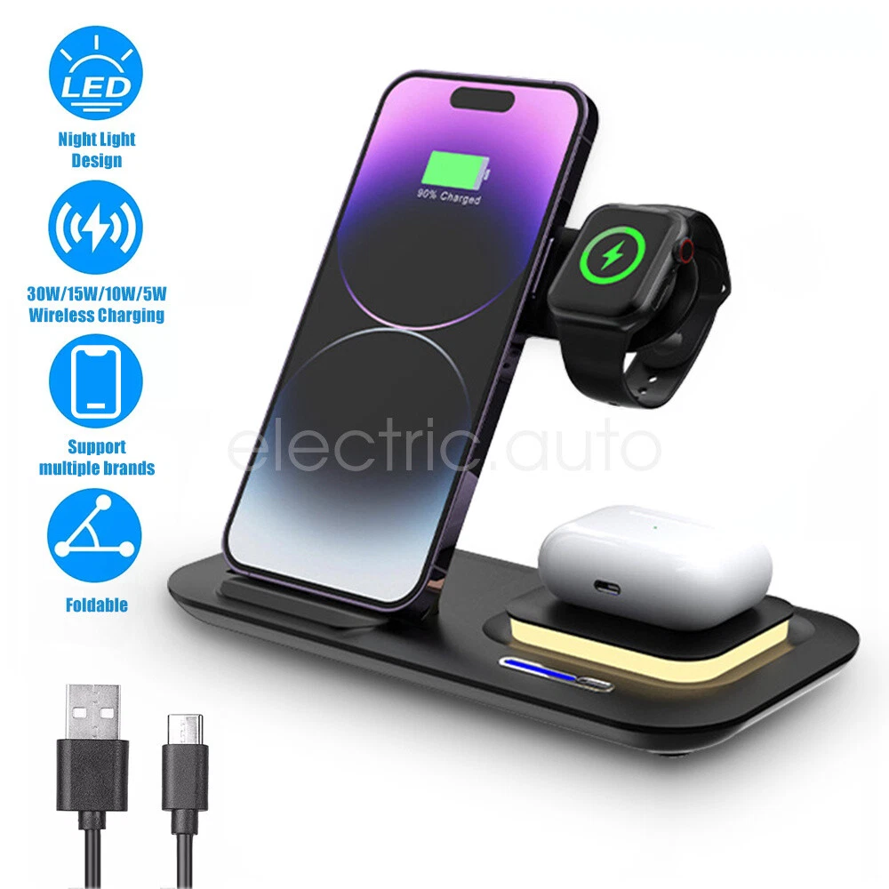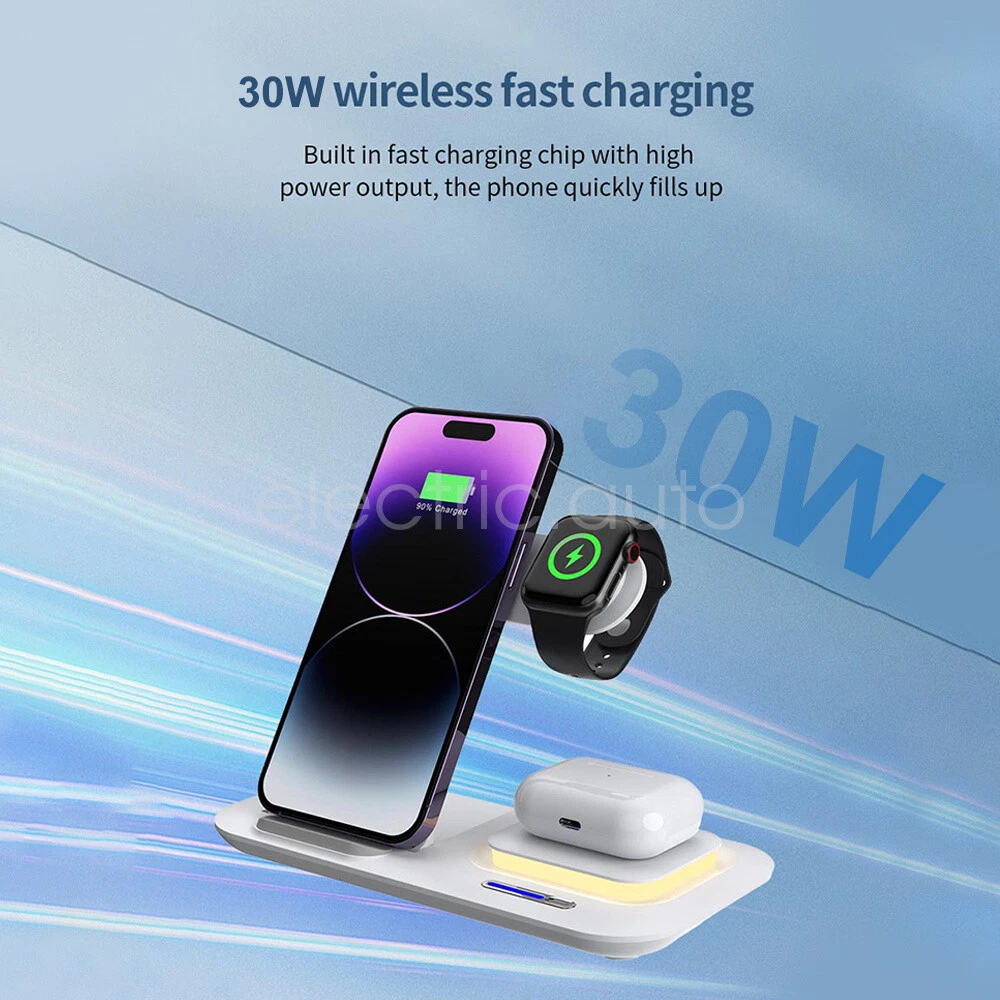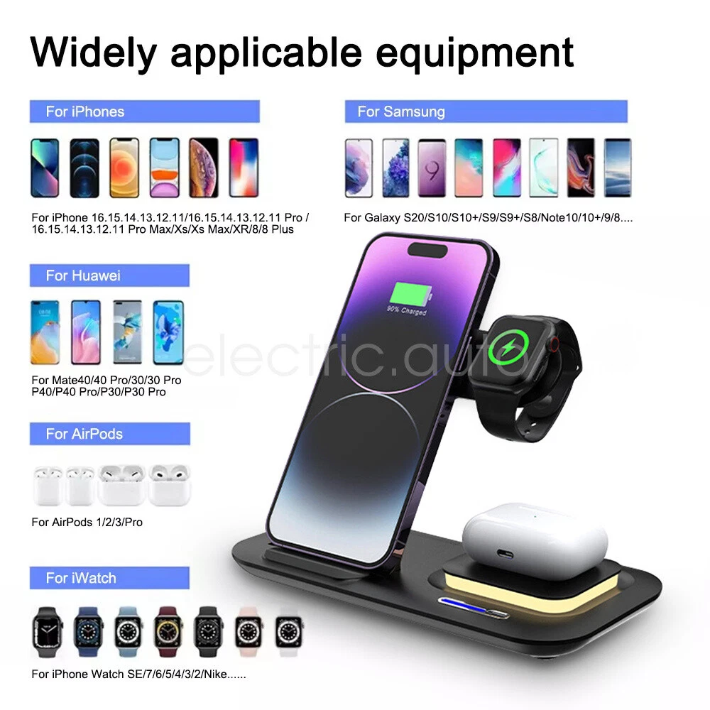 Product View Detail Features: [5-in-1 CHARGING STATION] The wireless charger conveniently charges your iPhone, Apple Watch, AirPods, and other devices with wireless charging capabilities at the same time. The charging station makes it easy to charge your entire desktop and nightstand, so say goodbye to tangled cords. Compatible with iPhone 16, 15, 14, 13, 12, 11Pro/Max/Mini/Plus, X, XR, XS/Max, SE, 8/Plus, iWatch 8/7/6/5/4/3/2/SE, AirPods 2/3/pro/pro 2. [Rapid Wireless Charger] Simply place your wireless device on the charging station, make contact and start charging steadily and efficiently. After many extreme tests and fan feedback, we use high power charging chips and world-class electronics to ensure the fast charging quality of the charging station. [SAFE WIRELESS CHARGER STAND] Apple wireless charging station with over-current protection, over-voltage protection, over-temperature protection and foreign object detection. The reasonable internal circuit design of the Apple wireless charging station prevents overcharging from damaging the device battery and ensures safe and fast charging of the device. [Foldable Travel Wireless Charger] The Apple Wireless Charging Station for multiple devices features a compact and foldable design that provides fast charging for your iPhone at home, in the office and on the go. The Apple wireless charger can be used as a wireless charger stand with angle adjustment. iPhone wireless charger can be used as a wireless charging pad to keep your phone charged by simply laying it flat. [Fits Cases and Sleep Friendly Indicators] The iPhone wireless charger supports most cases up to 2 inches/5 millimeters thick, eliminating the need to remove the case when charging with the wireless charging station (excluding cases with magnetic or metal attachments). Place your device on the wireless phone charger to start charging, and the LED night light can be turned off manually. So you don't have to worry about the light affecting your sleep. Attention: 1.For a fast charging experience, please use a 9V-2A or 12V-2A power adapter (adapter not included). 2.The watch charger is only for Apple Watch, it can't charge Samsung Watch or other brand watches. Parameters: *Product Name: 5-in-1 Wireless Charger *Input power: 9V-2A/12V-2A *Mobile phone output: 5W/7.5W/10W/15W/30W *Watch output: 5W (max) *Headphone output: 3W (max) *Charging efficiency: ≥75% *Product material: ABS *Product color: black Package Includes: 1*5-in-1 wireless charger 1*Type-C cable Attention: 1.Not included not include the power adapter! 2.Item is limited to charger only, not including headphones, watches! 3. Due to manual measurement, please allow a difference of 1cm error! 4.Depending on the light color or monitor hue may vary! Shipping Policy Payment Method Returns Policy Shipping Policy We only accept your Ebay Address ,Please Make sure it's 100% right. The items you ordered will be shipped out in 1 business day by Hong Kong Air Mail when your payment is clear. The arrival time is 5-20 business days to United States usually. We maintain high standards of excellence and strive for 100% customer satisfaction! Feedback is very important to us. We request that you contact us immediately BEFORE you give us neutralor negative feedback, so that we can satisfactorily address your concerns. Payment Method Returns Policy Copyright © 2017 DataCaciques 30W Wireless Charger Fast Charging Dock Stand iPhone Apple Watch Airpods Samsung Home Payment Shipping About us Contact us Store Categories Store Categories Consumer Electronics PC&Tablet Accessories Mobile Phone Accessories Sound&Vision Headphones Watches Camera Led Lights Others Auto Car Accessories Lights Others Motorcycle Motor Accessories Lights Others Headlamp&Torch Others Other Product View Detail Features: [5-in-1 CHARGING STATION] The wireless charger conveniently charges your iPhone, Apple Watch, AirPods, and other devices with wireless charging capabilities at the same time. The charging station makes it easy to charge your entire desktop and nightstand, so say goodbye to tangled cords. Compatible with iPhone 16, 15, 14, 13, 12, 11Pro/Max/Mini/Plus, X, XR, XS/Max, SE, 8/Plus, iWatch 8/7/6/5/4/3/2/SE, AirPods 2/3/pro/pro 2. [Rapid Wireless Charger] Simply place your wireless device on the charging station, make contact and start charging steadily and efficiently. After many extreme tests and fan feedback, we use high power charging chips and world-class electronics to ensure the fast charging quality of the charging station. [SAFE WIRELESS CHARGER STAND] Apple wireless charging station with over-current protection, over-voltage protection, over-temperature protection and foreign object detection. The reasonable internal circuit design of the Apple wireless charging station prevents overcharging from damaging the device battery and ensures safe and fast charging of the device. [Foldable Travel Wireless Charger] The Apple Wireless Charging Station for multiple devices features a compact and foldable design that provides fast charging for your iPhone at home, in the office and on the go. The Apple wireless charger can be used as a wireless charger stand with angle adjustment. iPhone wireless charger can be used as a wireless charging pad to keep your phone charged by simply laying it flat. [Fits Cases and Sleep Friendly Indicators] The iPhone wireless charger supports most cases up to 2 inches/5 millimeters thick, eliminating the need to remove the case when charging with the wireless charging station (excluding cases with magnetic or metal attachments). Place your device on the wireless phone charger to start charging, and the LED night light can be turned off manually. So you don't have to worry about the light affecting your sleep. Attention: 1.For a fast charging experience, please use a 9V-2A or 12V-2A power adapter (adapter not included). 2.The watch charger is only for Apple Watch, it can't charge Samsung Watch or other brand watches. Parameters: 