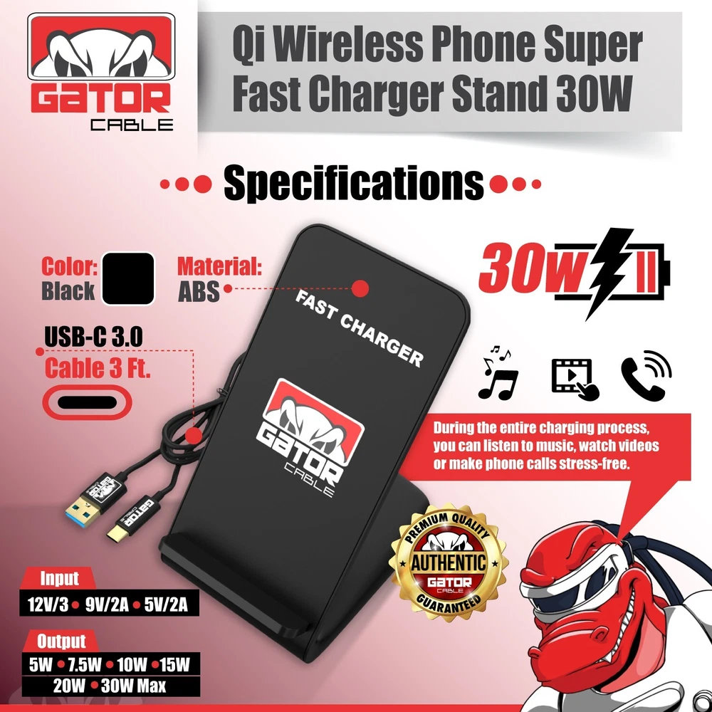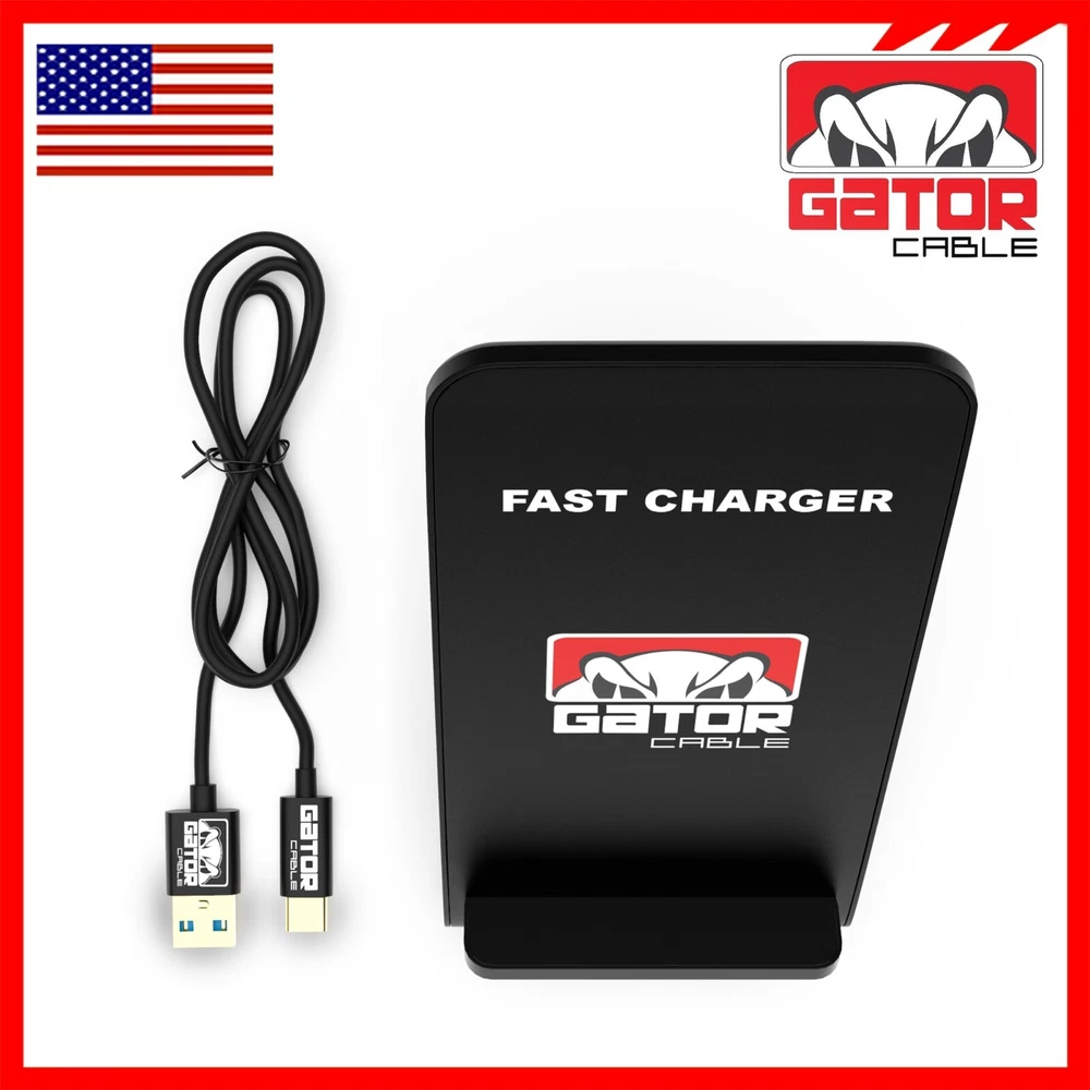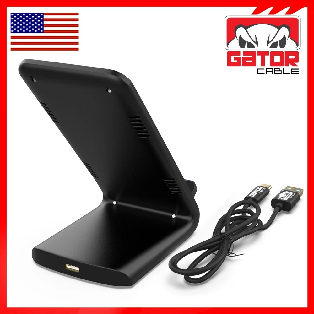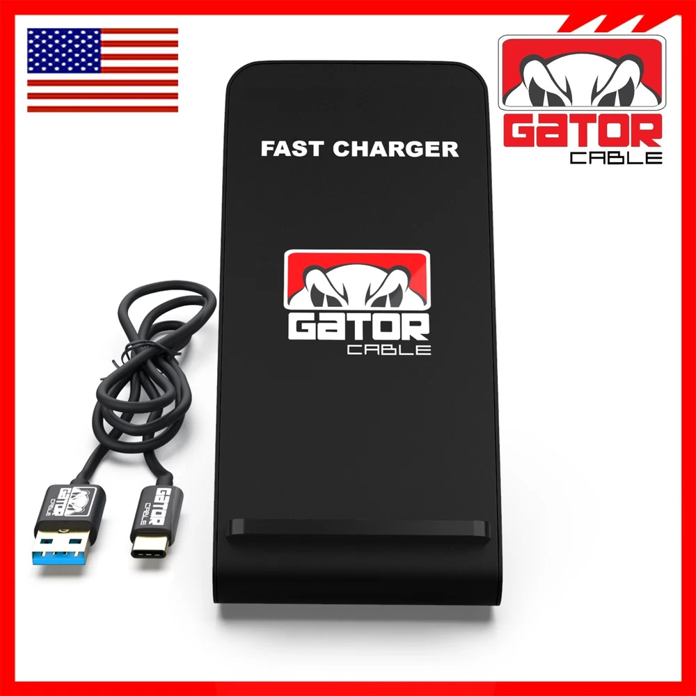 Gator Cable Qi Wireless 30W Super Fast Charger Stand/Dock USB-C 3.0 Charger Cable 3 FT Universal Compatibility with Qi Wireless Charger Phones With Two High Efficiency Transfer Charger Coils Charger Color: Black Specifications : Gator Cable Wireless 30W Super Fast Charger Stand Place a Qi-Enabled phone or device equipped with a Qi compatible cover on it. Features a power efficient idle mode to avoid overcharging and energy waste. Friendly LED indicator light to let you know when its charging. 2 high efficiency charger coils on charger. 30W Super Fast Wireless Charger Dock Input: 12V/3.0A Output: 30W Charger Dimensions: 4.6 in x 2.76 in x 3.6 in (H x W x D) Compatibility: Compatible with any Qi enabled phone or device. Compatible with: iPhone 8, 8 Plus, SE, X, XR, XS, XS Max 11, 11 Pro, 11 Pro Max, 12, 12 Pro, 12 Pro Max, 12 Mini 13, 13 Pro, 13 Pro Max, 13 Mini, 14, 14 Plus, 14 Pro, 14 Pro Max, 15, 15 Plus, 15 Pro, 15 Pro Max Samsung Galaxy S6, S7, S8, S9, S10, S20, S21, S22, S23, S24 Samsung Note 5, Note 8, Note 9, Note 10, Note 11 LG G2 G3 G4 G5 G6 G7 G8 G9 Moto Droid Turbo, Moto Droid Maxx/Droid Mini Nexus 4 5 6 7 8 Nokia Lumia 1020, 920, 928 HTC Droid DNA, HTC RZound Blackberry Z3 Pentax WG-III Camera Any and All Qi Compatible Devices or Equipment Included in Package: 1 x Gator Cable Qi Wireless Charging Stand 1 x USB-C 3.0 Cable 3FT We Offer The Lowest Prices On eBay for OPTIMUM Quality Cables + Free Shipping On All USA Orders! BUY 4 OR MORE GATOR CABLES, GET FREE U.S. PRIORITY MAIL SHIPPING! ALL ORDERS ARE SHIPPED OUT WITHIN 1 TO 8 HOURS! Strong-Rugged-Durable Heavy Duty Wireless Charger Stands/Pads and Cables Premium Quality Wireless Pads & Cables Ultimate Performance Great Value CLICK ON OUR eBay STORE