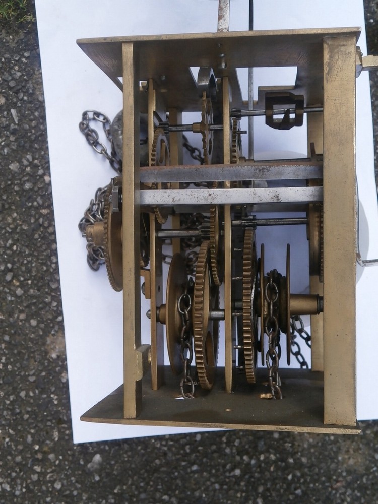 C1750 good 30hr 4 PILLAR longcase clock movement the plates are 5+1/4 inches wide 6+1'4 inches tall 10+1/2 with the bell 4+1/2 deep PLEASE SEE PHOTOS post in the uk £20 usa and europe £85