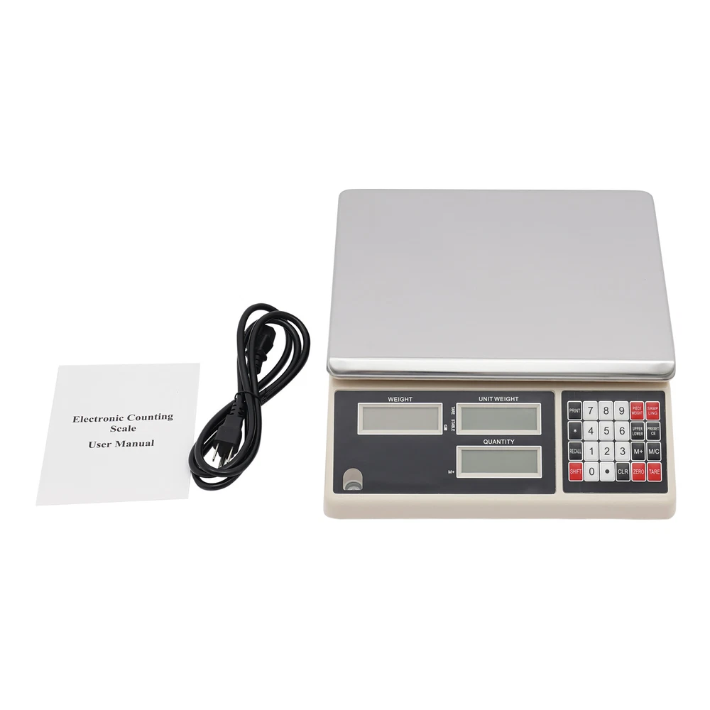 Description: Our counting scale can be used for weighing. High-precision sensors can quickly sense weight. High-quality materials make it sturdy and durable. The LED high-definition display screen makes data clear at a glance. Choose it to make every weighing more accurate and efficient! Package Included: 1* Counting Scale 1* English Manual 1* Power Cord 30kg,0.5g Industrial Counting Scale Precision Counting Scale Weighing Scale Description Our counting scale can be used for weighing. High-precision sensors can quickly sense weight. High-quality materials make it sturdy and durable. The LED high-definition display screen makes data clear at a glance. Choose it to make every weighing more accurate and efficient! Key Features Build to Last: Made of stainless steel and ABS, this product is impact-resistant and tear-resistant , ensuring your long-term use. Powerful Function: This product has multiple functions such as peeling, weighing, counting, and overloading upper and lower limit alarm settings. Its alarm settings can be divided into two modes: quantity alarm (counting) and weight alarm (weight), which standardizes the use of counting scale and effectively extends their service life. High-precision sensors can quickly sense weight and provide you with accurate readings quickly. Thoughtful Design: The equipped large-capacity battery ensures long endurance and low power consumption. It will automatically enter power-saving mode after about 3 seconds when the scale is empty (without weighing). In addition, this product can be plugged into a 110V AC power source for use when the battery is depleted, without worrying about shutdown issues. Quick Reading: The LED high-definition white backlight screen can display weight, unit weight, and total quantity, allowing you to read clearly and quickly. Easy to Use: You can long press the clear unit button to switch units (from g to kg, lb, H2 (jin)), meeting your different weighing needs. Multiple buttons are convenient for your use. Simple Cleaning: It has a smooth surface and a simple structure, so you only need to wipe the dust with a towel regularly. Ideal Gift: This practical product can be used as an ideal housewarming, birthday, and holiday gift for parents, friends, and loved ones. Customer Service: We stand behind all our guests and look forward to assisting you with your purchase. It is our pleasure to answer your confusion and questions. The end of the story between us is definitely not "we sell and you buy". Details Scale Pan: The scale pan is placed upright and can be used to count and weigh large items that are not easily dropped. The scale pan is reversed and can be used to count items that are prone to falling, such as weighing particles. Adjustable Scale Feet: Its height can be adjusted to provide greater stability depending on the flatness of the tabletop. Application It is widely used in laboratories, healthcare, school education, industry, research centers, factories, and more. Specification Color: Silver Style: Modern Material: Stainless Steel and ABS Display Type: LED Power Supply Mode: 110V Plug-in/Battery Weighing Range: 1-30000g/0.002-66.14lbs Accuracy: 0.5g/0.001lbs Product Size: 33.5*37.5*13cm/13.19*14.76*5.12in Scale Pan Size: 30*23cm/11.81*9.05in Package Size: 38*34*13.5cm/14.96*13.39*5.31lbs Gross Weight: 3.6kg/7.94lbs Net Weight: 3.42kg/7.54lbs Package Included 1* Counting Scale 1* English Manual 1* Power Cord Notes Please read the operating manual completely before use. And pay particular attention to the safety instructions included. Please note that the bottom power switch must be turned on when using, otherwise this product will not start working. Please allow the slight color difference caused by the shooting light and 1-3cm error due to manual measurement, and make sure you do not mind before ordering. Payment Delivery details Terms of sales About us Contact us Payment We accept ebay payment 。 Fees such as import duties, taxes are not included in the item price or shipping costs. These charges are the buyer's responsibility. Delivery details Shipping: 2-9 working days to: USA Terms of sales We maintain high standards of excellence and strive for hundred percent customer satisfaction. Feedback is very important to us. We hope that you contact us immediately before you give neutral or negative feedback, so that we can address your concerns. It is impossible to address issues if we do not know about them! About us Your satis faction is our ultimate goal. We work hard to earn your trust and future business. Our certified technicians have tested each item before shipping. The unit comes with 1 year limited warranty on all manufacturing defects. a) If you receive a defective item, you may return it or ask for a discount. Please contact us within 14 days after you receive the package. b) What you returned must be intact and in its original packaging as re? u. Customer is responsible for shipping costs of the returned item. c) We will cover the cost of shipping back t with the shipping rate indicated in the registration page. We will send you a new unit or refund the full payment you paid. Thank you. Contact us Business Hour Business Hour: Monday To Friday: 8:30 AM to 5:00 PM (Beijing China time) Due to time zones, our reply to your questions may not be immediately. But within above working time, we will reply your email within 24 hours. If it's non-workdays, please kindly be patient and wait till Monday. Please contact us with ebay message. Please feel free to contact us if you have any questions. Monday To Friday: 8:30 AM to 5:00 PM (Beijing China time) Due to time zones, our reply to your questions may not be immediately. But within above working time, we will reply your email within 24 hours. If it's non-workdays, please kindly be patient and wait till Monday. Please contact us with ebay message. Please feel free to contact us if you have any questions. On Jan 27, 2026 at 18:38:34 PST, seller added the following info