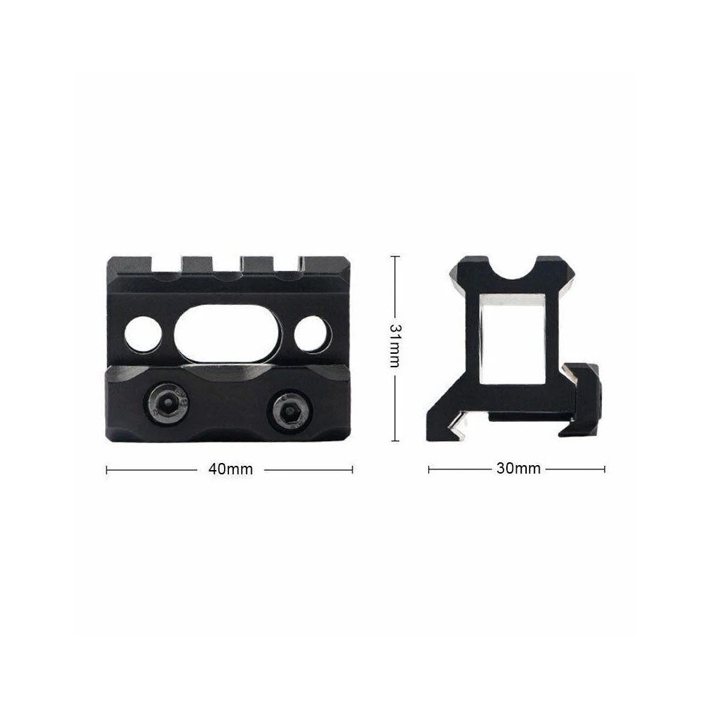 Tactical 45 Degree Offset 25.4/30mm Flashlight Picatinny Light Laser Mount 13.99 USD Free shipping Universal 20mm Converter Adapter /25.4mm&30mm Scope Ring QD Quick Release Mount 15.99 USD Free shipping 1'' inch Low Profile Scope Rings Mount 11mm/20mm Rail for Picatinny / Dovetail 8.59 USD Free shipping Holographic Reflex Red Green Adjustable Dot Sight w/1" High Profile Rail Mount 8.99 USD Free shipping 1 inch Scope Rings Low/High Airsoft Scope Mounts for 3/8" 11mm Dovetail Rails 8.59 USD Free shipping 30mm Scope Rings 3/8' Dovetail High Profile .22 caliber Riflescope rings 9.99 USD Free shipping 1 inch 25.4mm High Profile Scope Rings for 20mm Picatinny Weaver Mount 2pairs 12.59 USD Free shipping 30mm/ Quick Release 25.4/30mm Ring High ProfileScope Rings Weaver Picatinny Rail 10.99 USD Free shipping Laser Light Scope Ring Mount with Tri Picatinny rail + 30mm to 1" Reducer Insert 9.99 USD Free shipping Tactical Red Green Dot Sight 4 Reticles Sight with Dovetail Extend Weaver Mount 29.99 USD Free shipping Tri-rail 1" Tube Barrel Mount/Converter Barrel Mount/Dual Rail Mount 20mm Rail 9.59 USD Free shipping Mini Holographic Reflex 3 MOA Red Dot Sight / Tactical Red Beam Dot Laser Sight 9.99 USD Free shipping 2Pcs Tactical Sling Swivel Stud 1 Slot to 20mm Picatinny Rail Mount Black US 19.59 USD Free shipping 30mm High / Medium Profile Scope Rings for Picatinny Weaver Mount Heavy Duty 12.69 USD Free shipping Tactical PEPR style Cantilever Riflescope Mount with 30mm-1" Reducer Adapters 16.89 USD Free shipping Scope Rings Medium Profile 30mm DIA with 0.83”3 Slot Riser Scope Mount Hunting 20.99 USD Free shipping ACOG 5x35 Real Green Fiber Optic Scope with Mount for Hunting Airsoft US 129.99 USD Free shipping 2PCS Low Profile 25mm 1" Scope Rings 20mm Picatinny Weaver Rail Mount USA 10.59 USD Free shipping A=1" Riser Mount: 1. Material: It is made of aluminum alloy, which is light and durable, and has super shock absorption capacity. 2. Features: Quick disassembly function, easy to install and disassemble. 3. Suitable for: installing sights, flashlights, lasers, etc., perfect hunting accessories. Specification: Name: Increased rail Colour: Black Applicable track: 20mm Top rail width: 20mm Width of bottom dovetail rail: 20mm Product size: 40X30X31mm List: 1xMount B=25.4/30mm Ring Mount Feature The 30mm scope ring adapter, equipped with a plastic adapter ring, can convert the product into a scope ring adapter suitable for 25.4mm. Suitable for any 25.4mm/30mm diameter scope or flashlight. Used with standard 20mm rail. Quick release design, quickly install or remove the product from the base, easy to use. The screw on the top can securely fix the scope or flashlight. Made of high-quality aluminum alloy, very durable. Matte black color, simple and fashion. Specifications Type: 25.4mm/30mm QD Scope Mount Ring Material: Aluminum Alloy Color: Matte Black Total Height: 60mm/2.4inch Weight: 82g Ring Height :high Ring Dia : 25.4mm/30mm Scope Feature: Quick Release Attached on: 20mm Rail Package Include: 1x 30mm QD Scope Mount Ring 1x 25.4mm Plastic Adapter Ring 1x Allen Key