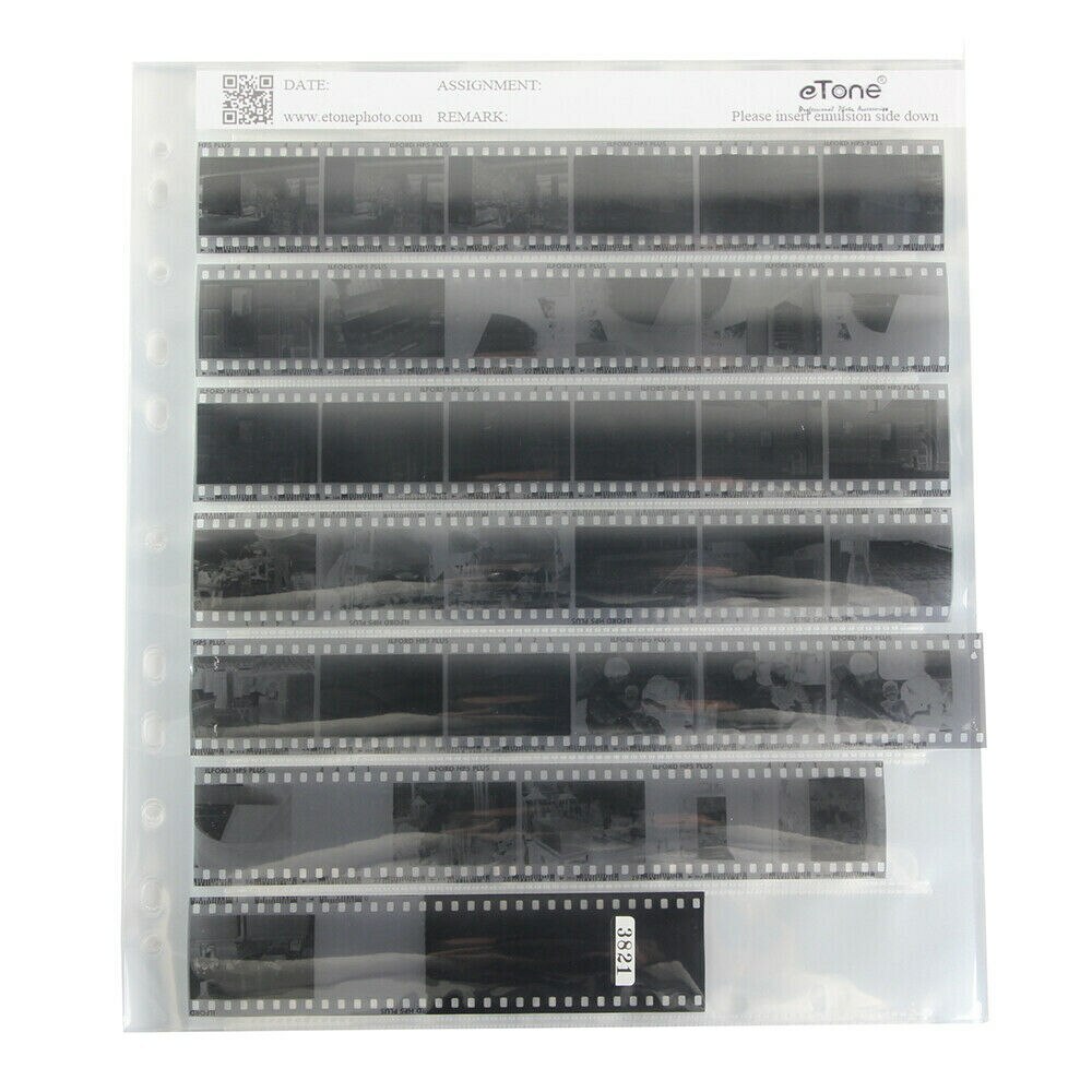 30 PCS Negative Slide Film Sheets Feature: * Holds seven 35mm strips of 6 frames, 42 frames total. * Translucent archival quality polyethylene - NO PVC - safe for long term storage. * Prevent your film out from dust, acid corrosion and again external influences. * PAT passed. * The piercing is compatible with Print file. It's inexpensive, suitable for mass shooting films photographer, photo processing shop or color lab. We sell bulk rolls as well. Package: 30 sleeves Dimensions: 10 "W x 11.6 "H or 25.5x29.5cm