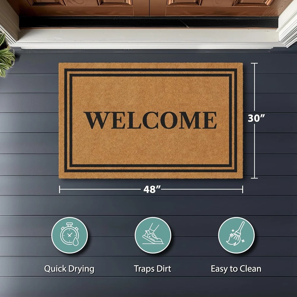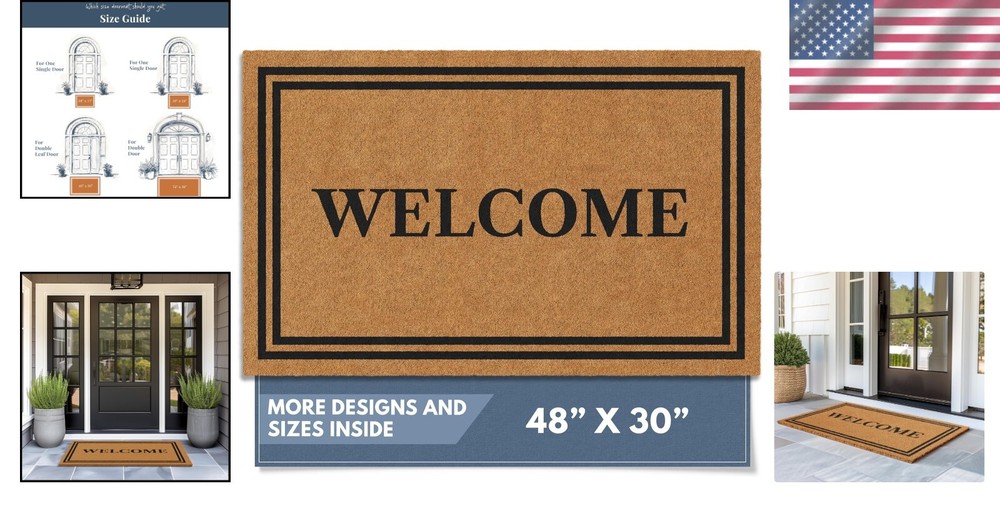 Stylish 30x48 Rectangular Welcome Mat with Non-Slip Backing for Outdoors ‹ › ‹ › ‹ › ‹ › ‹ › ‹ › ‹ › ‹ › ‹ › ‹ › Stylish 30x48 Rectangular Welcome Mat Welcome in Style: Say hello to your guests with an eye-catching Welcome Doormat featuring a classic rectangular border detail. With its bold design and large lettering, this mat adds an elegant touch to any entryway, ensuring your guests feel warmly welcomed from the moment they arrive. Features: Slip-Proof: Equipped with non-slip rubber backing to keep the doormat securely in place, preventing unexpected slips and falls. Durable Material: Made of 100% coconut coir fibers, known as the strongest natural fibers on earth, ensuring long-lasting shape and appearance. Optimal Size: Measuring 48 x 30 inches, it’s large enough to accommodate three people side by side, making it perfect for any entryway. Versatile Use: Ideal for patios, outdoor events, or camping trips, this doormat also serves as a reliable accessory for homes, cabins, and RVs. Benefits: Elevates your entryway decor with its stylish design Ensures safety with slip-proof backing on any surface Holds up under heavy use without compromising quality Cleans shoes effectively to keep your interiors tidy Dries quickly, perfect for all-weather conditions Why Choose Our Welcome Mat? Transform your entryway into an inviting space with our Stylish Rectangular Welcome Mat. Designed to impress, this mat is not only aesthetically pleasing but also practical, ensuring safety and cleanliness. The durable coconut coir construction stands up to heavy foot traffic while the slip-proof backing keeps it firmly in place. Don’t let your entrance go unnoticed; welcome your guests in style and comfort with our exceptional outdoor rug! Enhance your home’s welcome today with this indispensable accessory! Shipping Free & Fast Shipping - We offer free shipping to most of the USA with a normal delivery time of 3-7 days. However, due to the current situation, additional delivery time (up to 3 weeks) may be required for some items. Alternative Carriers - We may use alternative carriers (e.g. USPS, FedEx, UPS, etc.) to ensure your package arrives safely and on time. Due to the use of multiple carriers, we are unable to provide a tracking number automatically. Handling Time - Orders are processed and shipped within 1-2 business days of receiving cleared payment. Shipping Restrictions - Shipping to Alaska, Hawaii, Puerto Rico, Guam, and other US territories may incur shipping charges or delivery restrictions. Please contact us before ordering, or your order can be refunded/cancelled. State Restrictions - There may be restrictions based on your state of purchase. For example, certain items may not be shipped to California due to state regulations. Contact for Tracking Updates - If you require tracking updates or have any concerns about the delivery of your order, please feel free to contact us, and we will be happy to assist you. Return Please see our eBay Return Policy. Thank you. Payment We accept all major credit cards, PayPal, and Apple Pay for your convenience. Your payment information is secure and encrypted to ensure a safe and seamless transaction. Please complete your payment within 3 days of purchase to avoid any delays in shipping. Feedback Your feedback is extremely important to us. We strive to provide the best products and customer service possible. If you are satisfied with your purchase, please take a moment to leave us a positive review. If you have any concerns or issues with your order, please contact us before leaving negative feedback. We are committed to resolving any problems and ensuring your satisfaction. Contact Us If you have any questions or concerns, please feel free to reach out to our customer support team. You can contact us through the eBay messaging system. We are available Monday to Friday, 9:00 am to 5:00 pm EST, and we will do our best to respond to your inquiry within 24 hours. Thank you for supporting our small family business! UPC: Not Set Unit Quantity: 4.3 Room: Any Room,Patio,Porch,Entrance Material: Natural Fibers,PVC,Rubber,Coconut Coir Features: Eco Friendly,Non-Slip,Stain Resistant,All-Weather,Durable Department: Kids,Teens,Adults Theme: Not Set Brand: Unbranded Type: Doormat Color: Brown Pattern: Welcome Shape: Rectangle Item Width: Not Set Item Length: Not Set MPN: Not Set Model: Not Set Size: 30 x 48 in Style: Traditional Pile Height: Low Pile Regional Design: Not Set Country/Region of Manufacture: Not Set Weave: Flat Weave Pile Type: Low Pile Era: 21st Century (2000-Now) Unit Type: lb Personalize: Not Set Personalized: Not Set