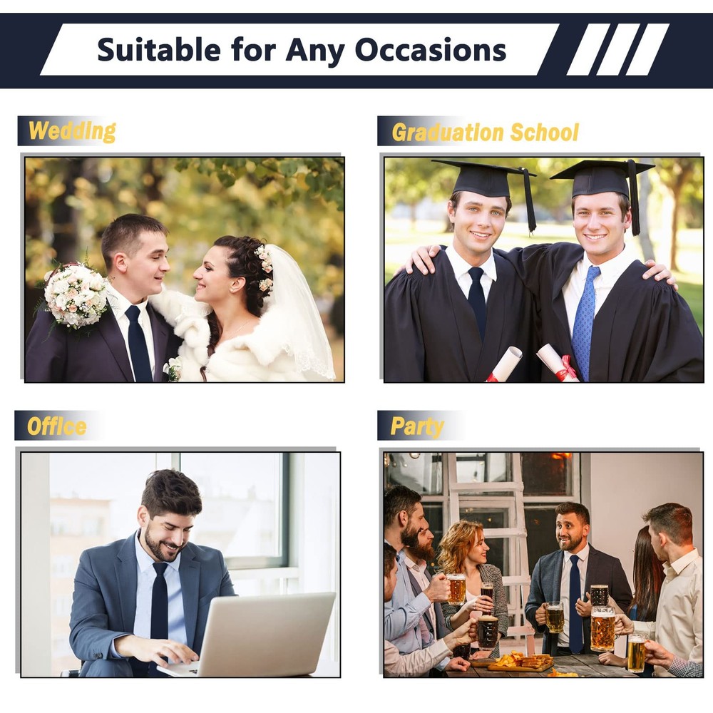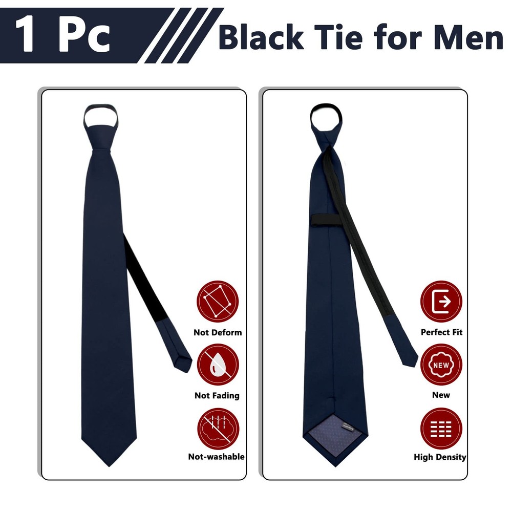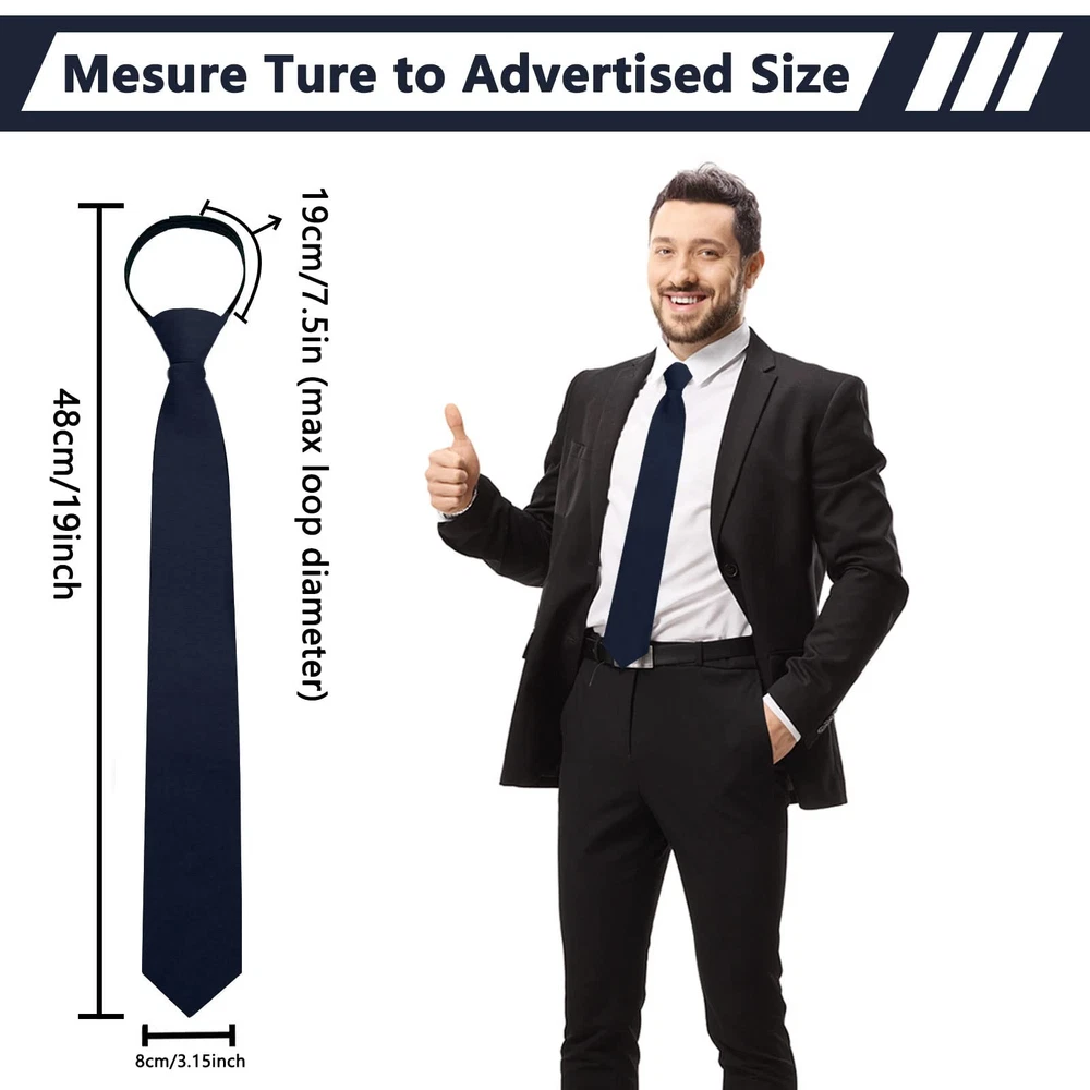 More than ten years of professional tie production, affordable ties. Men's Tie Your Best Choice. Perfect for everyday use,excellent for formal Business or Parties,such as Wedding Party, Graduations, Celebrations casual events or spruce up your every day. ✿ Three Second to Put on & Take Off: Save your time & easy to use. You don’t need spend much time when wear it, those mens tie are comes pre-tied in a neat knot , put on the neck and pull gently to complete wearing, so allows you to sleep 5 minutes more every morning. ✿ One Size Suitable for Most of Men: Adjustable to fit neck sizes up to approximately 7.5in (loop diameter),the length of the navy tie from the knot is 19’’ (48cm) long, and the widest of the neckties is 3.15in (8cm). ✿ Navy Tie: Men accessories ties for men are Handmade with polyester silk and zipper, features fine workmanship, smooth and flat appearance, not easy to damage or deform, reliable material to provide you with a long time of service. ✿ Easy to Match: Solid color to meet your needs of wearing and matching different clothes, adding seriousness to you. Suitable for School/Wedding/Meeting/Daily Dress/Cocktail Party/Business/ Office/Engagement/Ball Party. ✿ Best Gift for Men: The tie suit in any formal, professional, or casual occasion, so get this stunning necktie for your husband for your anniversary, your dad for Father’s Day, your brother for his birthday, your son for Christmas or school uniforms, or your boyfriend for Valentine’s Day. ✿ How to Care Your Tie? Hand wash gently in cold or lukewarm water, do not wring the pre-tied ties, hang to dry; do not tumble dry.