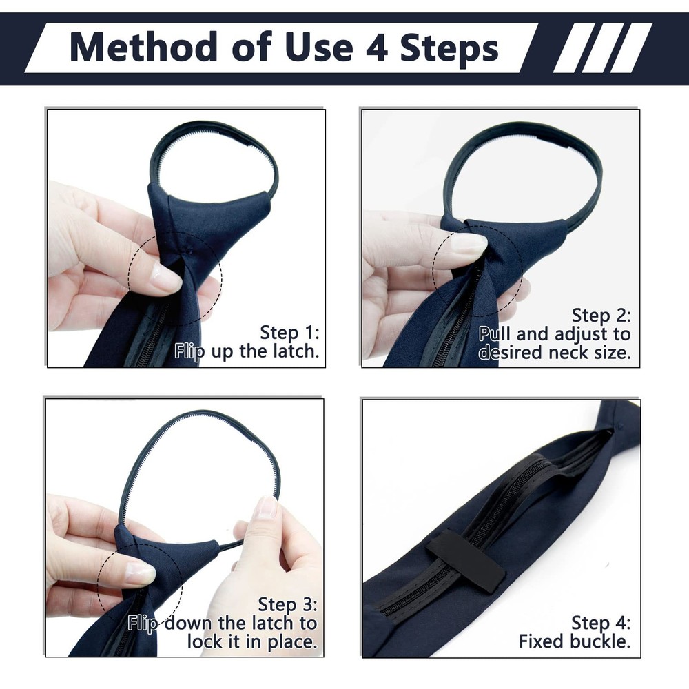 1. This pre-tied zipper tie is a game-changer! The navy color looks sharp, and the adjustable clip makes it super easy to wear—no fuss, just slip it on in seconds. Perfect for busy mornings, formal events, or casual outings. The quality feels great, especially for the price, and it stays neat all day. A must-have for any man who wants style without the hassle!