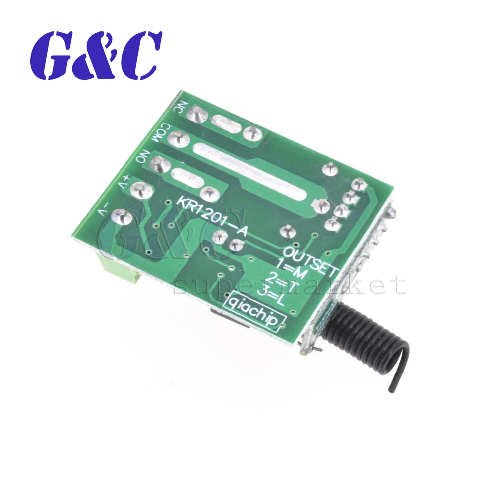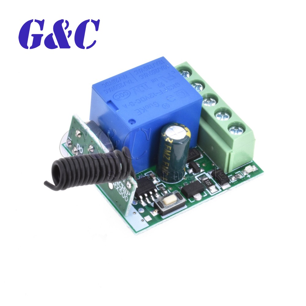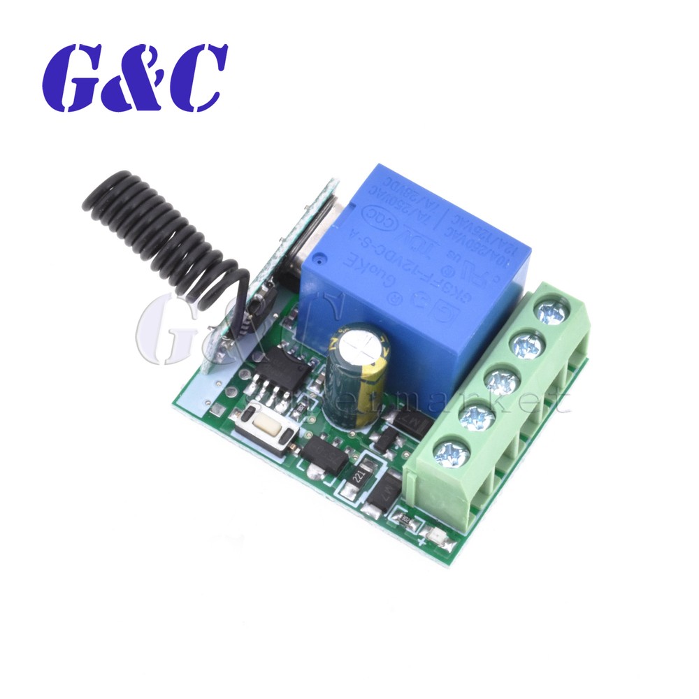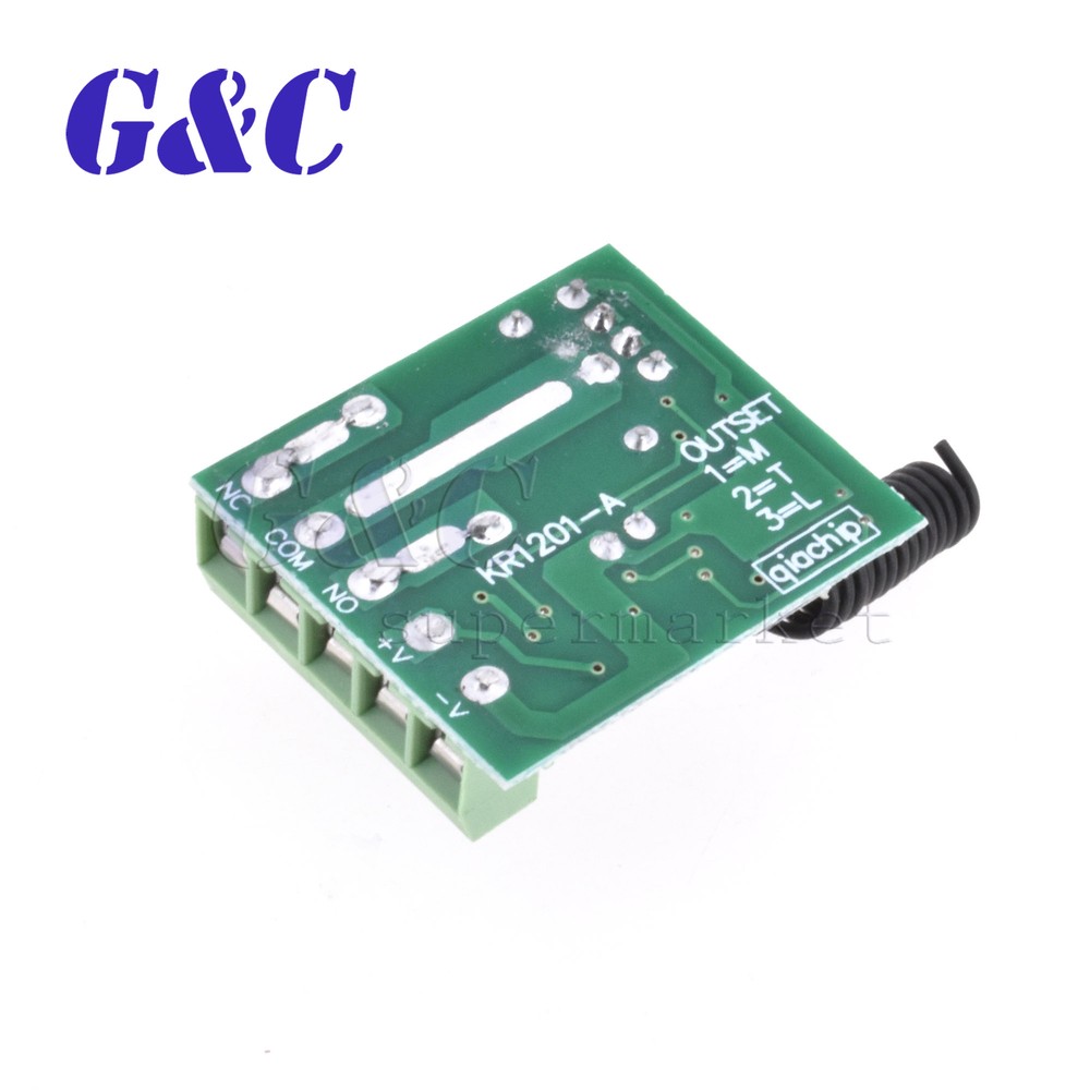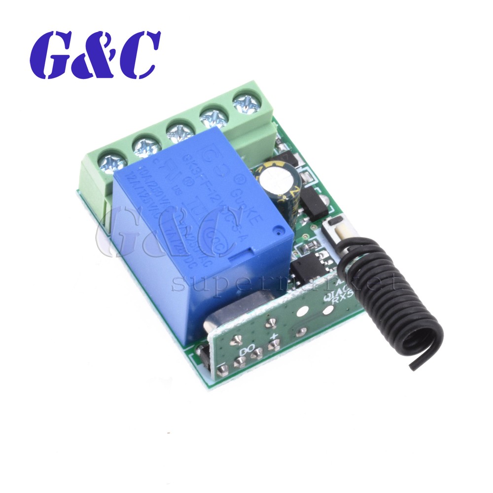 Store Categories Store Categories eBay Motor Fashion Books, Movies & Music Electronics Collectibles & Art Home & Garden Sporting Goods Toys & Hobbies Business & Industrial Health & Beauty Other Item Description Specification: Model:KR1201A Name:Wireless Relay 1.Input Voltage: DC10-14V 2.Standby Current: <5MA 3.RF Frequency: 315/433MHZ 4.RF Working mode:Super heterodyne receiver 5.Receiver Sensitivity: >90dBm 6.Remote Control Distance: >100 meter(In open environment) 7.Decoding Way: MCU Software decoding 8.Can store the number of remote control:50 9.Support remote control type: Fixed code, learning code 10.Channel: 1CH 11.Multiple working modes: (Jog/Non-Latched ,inter-lock/Latched ,self-lock /Self-Latched,Delay off) 12.Wiring Method:Fixed wiring terminal 13.Working Voltage: DC12V 14.Output Current: 10A 15.Rated load:10A 250VAC / 10A 125VAC 10A 30VDC / 10A 28VDC 16.Output:Normally open,Common,Normally closed 17.Dimension:3.5cm*3cm*1.6cm Package included: 1 x 12V 315MHZ/433MHz 1 Channel Wireless Relay Switch(depengd on you choose) Working/output way: 1.Jog/Non-Latched: Press one button is Working /ON. Loosen your finger on the same button is Stop/OFF. One channel switch need one buttons remote control. 2.Self -lock/Self-Latched: Press one button for one time is working/ON. Press the same button again is stop/OFF. One channel switch need one buttons remote control. 3.Inter-lock /Latched: Press one button is working/ON, press another button is stop/OFF. One channel switch need 2 buttons remote control. 4.Delay: Press remote control 's one button,relay is working,release the remote control and begin timekeeping,after 5s/10s/15s will automatically close the relay Learn: 1. press the learning code .the indicator flash ,loosen your finger ,press any button of the remote control (press 1 times to learn Momentary;2times-Toggle;3times-Latched;4times-5s delay;5times-10s delay;6times-15s delay) the indicator flash 2 times and off .it mean you learn it successfully . 2. it can learn 2272 2262 or 1527 chip with the different code wireless 315MHZ/433MHz remote control. Feedback Payment Shipment About us Feedback We appreciate positive feedback . we always try our best to service our customers . so if you have ant question ,PLEASE DON’T HESITATE TO TELL US, we are always here to offer help . Payment We prefer PayPal .For purchasing multiple items , please contact us for a combined invoice . generally we would like to receive payment thin 48 hours if . Shipment We provide airmail service with good package . The items will be shipped within the nest 2 business days after we received the payment . when you buy multiple items ,your shipping cost will be combined with discount . SHIPPING TIME (weekends/holidays excluded) Country Name Shipping Time Country Name Shipping Time USA/Canada 10 -15d Spanish/Portugue 10-25d East/South Asia 10 -15d France/West Asia 10-25d United Kingdom 10 -20d Italy 10-30d Australia/New Zealand 10 -15d West Asia/Middle East 15-25d Most Country of West/North Europe 10-20d South America and Africa 15-30d East /Middle Europe/Russia 10-25d About us NEW, GOOD QUALITY, ORIGINAL PACKAGE LARGE STORE AND THE LOWEST PRICE NO-QUESTION-REFUND, FOR LARGE QUANTITY ,OFFER BETTER PRICE, ORIGINAL PACKING(TAPE REEL/TUBE/TRAY) We specialize in electronic components . ICs, Capacitors, Diodes, Resistors, LEDs, Transistors, and so on. Especially in Hard To Find Parts . we only sell NEW , ORIGINAL parts . please buy with confidence .We offer NO-QUESTION-REFUND go to my store