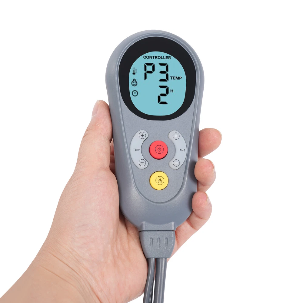 31.5in*15.75in Heating Pad For Back Pain Relief And Cramps Six Adjustable Gears Description The heating pad is a commonly used treatment to accelerate blood circulation, increase metabolism, relieve joint pain, and promote muscle relaxation. This product is made of high-quality polyester through the weaving and hemming processes, which can be used for a long time. The product has a large size of 31.5*15.75in, 6 adjustable heating temperature gears, and 5 timer levels to meet your needs. It can be used for adults, seniors, and athletes as well as pain sufferers, and is also a thoughtful gift for parents and friends. Specifications Material: Polyester Process: Weaving, Hemming Style: Modern Color: Grey Shape: Rectangle Assembly Required: No Target Audience: Adult Washing Machine Safe: Yes Power Source: Corded Electric Plug Type: US Standard Control Method: Wired Remote Control, Wireless Remote Control Display Type: LCD Number of Heating Temperature Gears: 6(25℃-55℃/77-131℉) Power Cord Length: 2m/6.56ft Thickness: 15-20mm/0.59-0.79in Timing: 1, 2, 4, 6, 8H Wired Controller Voltage: AC 120V, 60Hz Wired Controller Max. Power: 55W Heating Pad Voltage: 110-230V Heating Pad Power: 75W Remote Control Distance: 3m/9.84ft Product Size(L*W): 80*40cm/31.5*15.75in Package Size: 38.5*9*9cm/15.16*3.54*3.54in Gross Weight: 0.55kg/1.21lbs Net Weight: 0.4kg/0.88lbs Package Included 1* Heating Pad 1* Power Cord 1* Remote Control 1* English Manual Key Features High-quality Material: It is made of high-quality polyester through the weaving and hemming processes, which is heat-resistant and more durable for longer service life. Convenient and Economical: With this device, you can enjoy professional treatments at home without having to spend money on expensive services at massage parlors or beauty salons. Thoughtful Design: The child lock prevents children from accidentally touching it and causing danger. The controller on the power cord features an LCD display that allows you to operate it simply. Embrace Smart Life: The product can adjust the temperature (77-131℉) and timer (1, 2, 4, 6, 8 hours) within a range of 9.84ft using the wireless remote control, which makes it easier to operate. Proper Size: It is big enough (31.5*15.75in) to cover a large area on a person's body, which is suitable for most men, women, and elderly people to use and effectively relieve muscle pain. Good Treatment Effect: It effectively penetrates deep into the skin tissue to help you relieve pain, such as muscle aches and pains, as well as joint pains in the legs, back, knees, shoulders, elbows, and other parts of the body. Safety Guard: The product is designed with insulation and overheating protection, which can ensure your safety when you use it, so you can use it with peace of mind. Easy to Carry&Store: Thanks to the soft material, you only need to bend the product to carry and store it easily. Hassle-free Cleaning: The surface of the heating pad is waterproof, and it is hand or machine-washable and very easy to clean. Excellent Gift: Its modern look and powerful function make it an ideal gift for family, friends, and loved ones so that they can enjoy a healthy life. Buy with Confidence: We stand behind all our guests and look forward to assisting you with your purchase. It is our pleasure to answer your confusion and questions. The end of the story between us is not "we sell and you buy". Details Long Power Cord: It comes with a 6.56ft power cord, giving you plenty of useable length and operational flexibility. Enough Thickness: It has a 15-20mm thickness, which is very thick, providing you with a more comfortable experience. Application It can be used at home, massage parlors, health centers, beauty salons, medical centers, etc. to relieve muscle and joint pain, etc. It is suitable for adults, seniors, athletes, pain patients, etc. Notes Please note that it is for indoor use only. Please note that the controller of this product is not waterproof. Please don't sit or put the pad underneath the body. Please don't sharp fold the pad while using it. Please note that the product's 6-level temperature default temperature is 122-131℉, when adjusted to the level, continuously heats for 13-17 minutes and then intelligently back to the 5-level, according to the remaining timer continuous heating. The default temperature of 5-level temperature regulation is 113-122 ℉, when adjusted to this level, the continuous heating is 20-23 minutes after the intelligent back to 4-level, according to the remaining time for continuous heating. The rest of the four gears when adjusted to the position when the temperature control is constant in that gear. Please pay attention to the safety precautions in the manual or purchase and use under the guidance of medical personnel. Please keep away from all kinds of flammable materials and pay attention to ventilation. Please do not use the device on infants and young children without physician approval. Please allow the slight color difference caused by the shooting light and 1-3cm error due to manual measurement, and make sure you do not mind before you order. Payment Delivery details Terms of sales About us Contact us Payment We accept ebay payment 。 Fees such as import duties, taxes are not included in the item price or shipping costs. These charges are the buyer's responsibility. Delivery details Shipping: 2-9 working days to: USA Terms of sales We maintain high standards of excellence and strive for hundred percent customer satisfaction. Feedback is very important to us. We hope that you contact us immediately before you give neutral or negative feedback, so that we can address your concerns. It is impossible to address issues if we do not know about them! About us Your satis faction is our ultimate goal. We work hard to earn your trust and future business. Our certified technicians have tested each item before shipping. The unit comes with 1 year limited warranty on all manufacturing defects.