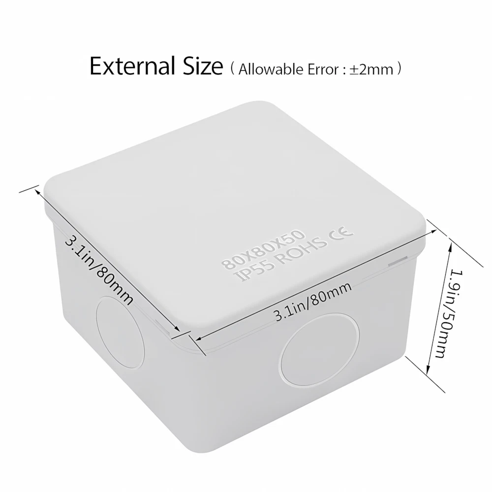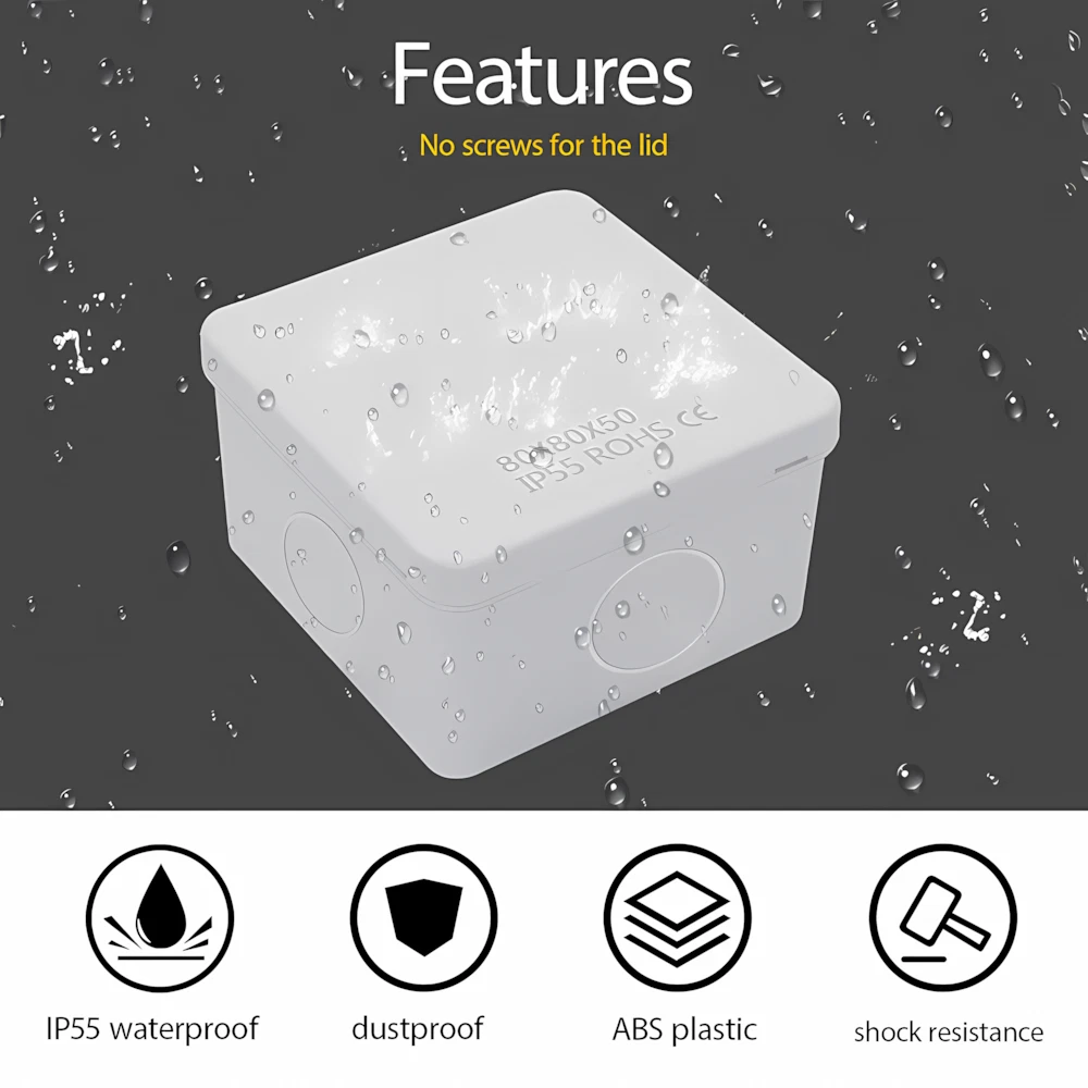 Features: [ Sturdy Construction ] Electrical Junction box is made of high-quality ABS plastic material, which offers excellent impact resistance and electrical insulation. Rest assured that your equipment will be well-protected in harsh environments. [ Safe and Certificated ] With CE RoHS compliant and waterproof rated, the electrical box is free of hazardous substances. The plastic box is predrilled which is easy to install and modify for your project. [ Indoor and Outdoor Use ] With the feature of water resistance and dustproof,it can effectively block splashing water, rain, dust, snow, oil, UV and more. Whether you need to use it indoors or outdoors, this surface mounted project box is easy to operate. [ Extensive Application ] Our junction box is used in a variety of applications: residential homes wiring and connecting electrical devices, such as light fixtures, switches, and outlets; protect and connect electrical equipment for machines, motors etc. Size: 3.15"x3.15"x1.96" Package Included: 1x Waterproof Electrical Junction Box