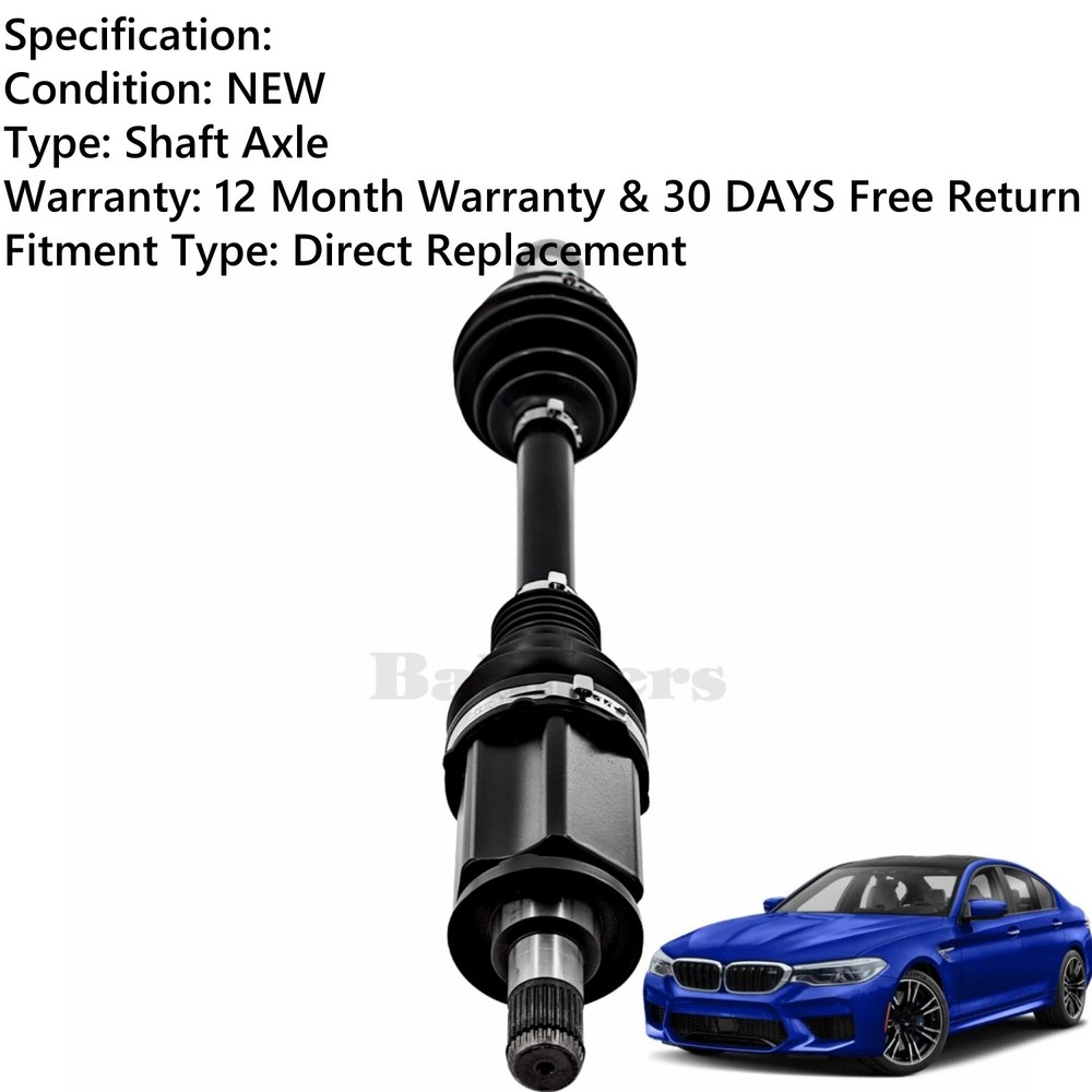 OE Part Number: 31608062093 Compatible Models: For 2024 BMW M8 Competition 4.4L V8 - For 2024 BMW M8 Gran Coupe Competition 4.4L V8 - For 2023 BMW M5 Base 4.4L V8 - For 2023 BMW M8 Competition 4.4L V8 - For 2023 BMW M8 Gran Coupe Competition 4.4L V8 - For 2022 BMW M5 Base, CS 4.4L V8 - For 2022 BMW M8 Base, Competition 4.4L V8 - For 2022 BMW M8 Gran Coupe Base, Competition 4.4L V8 - For 2021 BMW M5 Base, Competition 4.4L V8 - For 2021 BMW M8 Gran Coupe Base, Competition 4.4L V8 - For 2020 BMW M5 Base, Competition, Edition 35 Years 4.4L V8 - For 2020 BMW M8 Base, Competition 4.4L V8 - For 2020 BMW M8 Gran Coupe Base, Competition 4.4L V8 - For 2019 BMW M5 Base, Competition 4.4L V8 - For 2018 BMW M5 Base 4.4L V8 - Home Payment Shipping Return Policy About Us Contact Us Feedback Title Other Catalytic Converter Shock Absorbers Struts Other Fuel Pump 31608062093 New Front Left Driver Side Shaft Axle for 2018-2022 BMW F90 M5 AWD Front Left Driver Side Shaft Axle 31608062093 for BMW F90 M5 AWD Only 18-22 Specification: Condition: NEW Type: Shaft Axle Warranty: 12 Month Warranty & 30 DAYS Free Return Fitment Type: Direct Replacement OE Part Number: 31608062093 Compatible Models: For 2024 BMW M8 Competition 4.4L V8 - For 2024 BMW M8 Gran Coupe Competition 4.4L V8 - For 2023 BMW M5 Base 4.4L V8 - For 2023 BMW M8 Competition 4.4L V8 - For 2023 BMW M8 Gran Coupe Competition 4.4L V8 - For 2022 BMW M5 Base, CS 4.4L V8 - For 2022 BMW M8 Base, Competition 4.4L V8 - For 2022 BMW M8 Gran Coupe Base, Competition 4.4L V8 - For 2021 BMW M5 Base, Competition 4.4L V8 - For 2021 BMW M8 Gran Coupe Base, Competition 4.4L V8 - For 2020 BMW M5 Base, Competition, Edition 35 Years 4.4L V8 - For 2020 BMW M8 Base, Competition 4.4L V8 - For 2020 BMW M8 Gran Coupe Base, Competition 4.4L V8 - For 2019 BMW M5 Base, Competition 4.4L V8 - For 2018 BMW M5 Base 4.4L V8 - Package: 1 X Front Left Side Axle Shaft ( As shown in the picture ) Terms of sales Delivery details Payment About us Contact us Terms of sales If you are not sure about the compatibility, or you are looking for other car parts, just contact us. We are happy to offer any help. Bellow information will help: VIN(Vehicle Identification Number), detailed car model, part number and photos of the parts. as the information in the " vehicle compatible chart" section above is generated by eBay Motors and not from us. 📣30-day window for returns and exchanges for reason other than defect. 📣Standard 1 year warranty on all parts except as noted. 📣 We do not warranty for improper installation or usage after time of purchase. 📣 Please make sure your address and contact information is accurate and correct. 📣 Except the product costs, international buyers may need to pay additional import taxes to local customs. Our prices do NOT include taxes. Delivery details 👉Domestic orders are usually shipped within 2 working days. Delivery is between 2-5 business days. (except holidays and weekends). Sometimes the carrier may not update the tracking in time, so we arranged staff to follow up the tracking status of all orders. If there is any abnormality, we will provide solutions to guarantee the rights and interests of customers. (Domestic orders will be shipped FREE of charge via UPS/ FedEx/ USPS at our discretion.) 👉Outside the United States, orders will be shipped within 3 working days and delivered within 2-7 working days. Apart from the product cost, international buyers may have to pay additional import duties to the local customs. Our price does not include tax. (International orders will be shipped via DHL, FedEx, UPS) Payment Please use the eBay checkout system when paying for your order. Immediate payment is required for all orders. About us We are a leading auto parts supplier with our own supply chain system. Our products are produced according to the original factory standard, with high quality and a competitive price, and the warranty period is one year. Our Advantage: Expert Guidance and Support: Our team of knowledgeable and experienced professionals is here to provide expert guidance and support. Exceptional Quality Assurance: Quality is our top priority. All our auto parts undergo rigorous testing and quality assurance processes to meet or exceed industry standards. Competitive Pricing and Value : We understand the importance of competitive pricing without compromising on quality. Our commitment is to provide customers with value for their money, offering affordable auto parts that don't sacrifice performance or reliability. Specialized in automotive shock absorber and catalytic converter parts, fuel pump, Transfer Case, ignitioncoil, Vacuum Pump, Repair kit, etc. Contact us ❤️ Communication is the best way to solve the problem. If you have any problems after purchasing, please contact us in time, before opening return or case 🔔Please contact us before committing to buy if you have any questions about the applicability, warranty or conditions of the product. ⚠️Notes: Due to the time difference, we may not be able to reply in time. Please be patient. Please don't worry. We will definitely reply your email within 24 hours. Main Brand