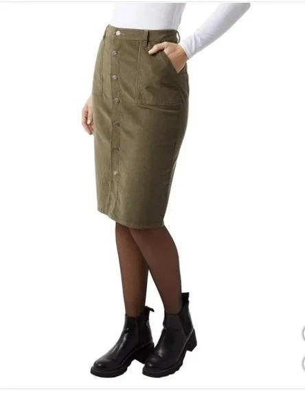32 Degrees Heat Women's Straight Midi Corduroy Belt Loops Skort Size: Small Color: Green Content: 99% Cotton / 1% Spandex