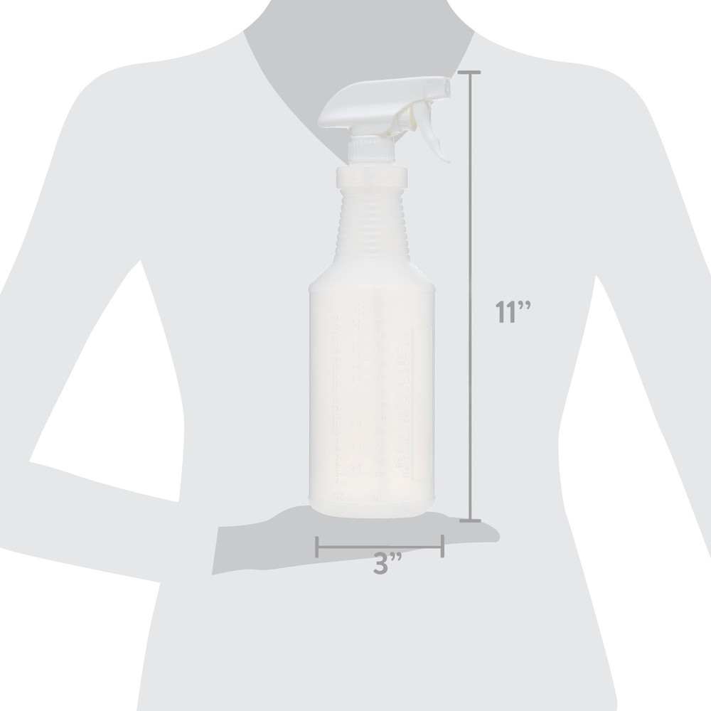 A 12-pack of 32-ounce all-plastic spray bottles for your spraying needs. All-plastic sprayers mean no metal parts that can corrode. The convenient 12-pack means you always have a spray bottle ready for your spraying needs inside and outside your home. This multi-purpose sprayer is your one-stop shop for all your indoor and outdoor spraying needs. You can use this multi-purpose sprayer to clean your home, water your plants, train your pets, or clean your car. All-plastic sprayer 32 fl oz spray bottle capacity On/off spray option Refillable and reusable