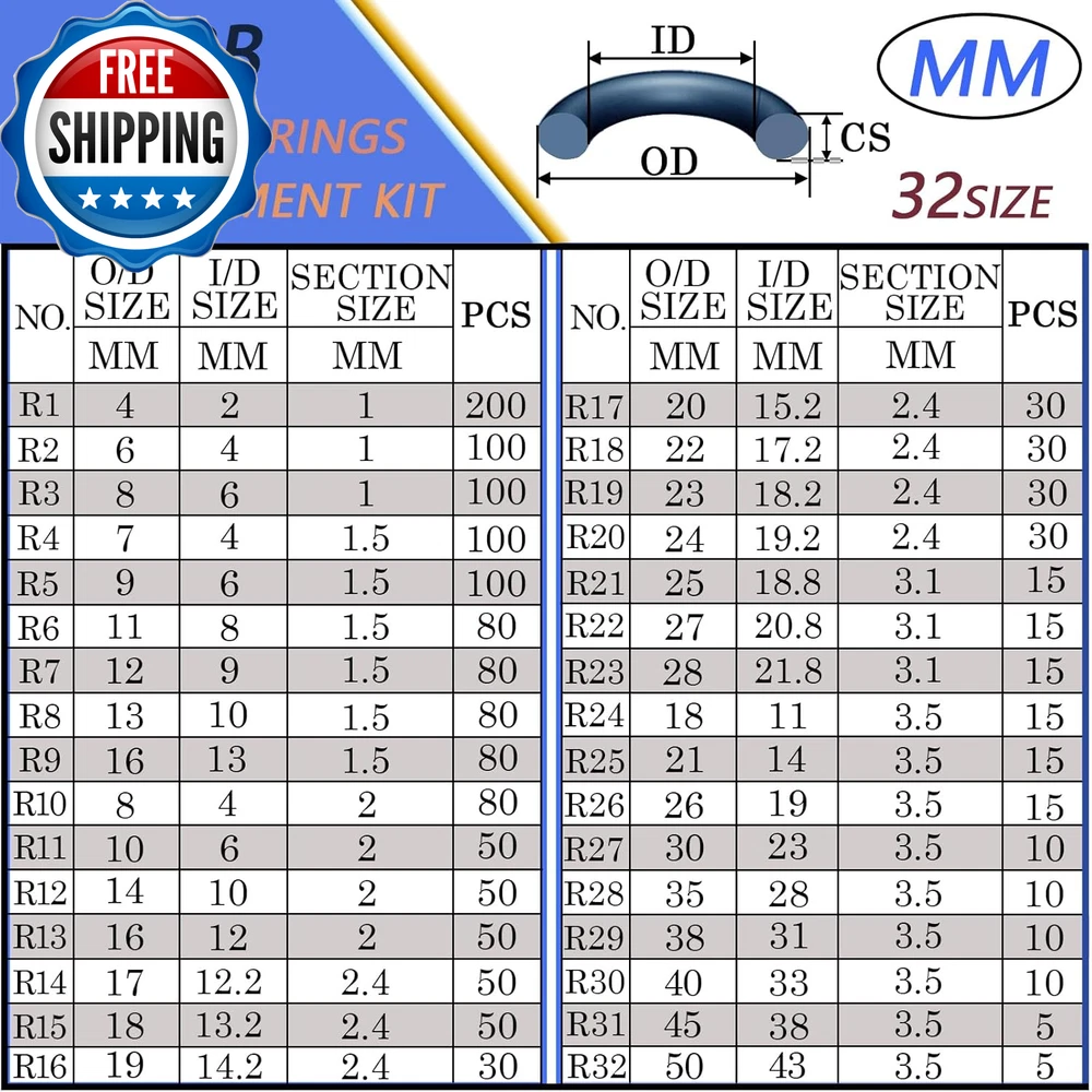32 Size 1540 Pcs O Rings Assortment Kit Metric Nitrile Rubber Oring Set with 4 Pick for Automotive Faucet Pressure Washer Plumbing Air or Gas Repair OD 4Mm-50Mm {WIDE APPLICATION}:Rubber O-ring kit for faucets plumbing,pressure washer, hose nozzles, sinks,filters,hydraulics fluid,auto engines, machinery bearings,pumps,boats,oils,gas control valve, spray,air,kitchen bathroom water fitting seal leak repair.A {MULTIPLE SIZE}:Assorted o ring washer gasket assortment set contains 32 Metric size OD:(4mm,6mm,7mm,8mm,9mm,10mm,11mm,12mm,13mm,14mm,16mm,17mm,18mm,19mm,20mm,21mm,22mm,23mm,24mm,25mm,26mm,27mm,28mm,30mm,35mm,38mm,40mm,45mm,50mm)X (Thk:1mm,1.5mm,2mm,2.4mm,3.1mm,3.5mm),can meet almost all your needs {INCLUDED TOOLS}:O rings Rubber kits comes with 4-Piece precision pick and hook set, includes 1-pc. full hook; 1-pc. 45-degree pick; 1-pc. 90-degree pick; 1-pc. straight pick, each is designed with high torque acetate handles and precision tips for use on clips, wire, O-rings, gaskets and other precision fasteners and components {HIGH-QUALITY MATERIAL}:Black o rings set made of high-quality commercial grade nitrile rubber (NBR) material, it has excellent high temperature and low temperature resistance, the working temperature range is from -40℉ (-40℃) to +248℉ (+120℃), maintains good elasticity, has It has the advantages of ozone resistance and weather resistance, so it is suitable for thermal mechanical sealing gaskets. widely used in machinery, electronics, hot water and other industries {PACKAGING FEATURES}:TWCC assorted o rings kit the 32 sizes are placed in a sturdy plastic storage box in order, and each size is attached with detailed label paper, which is very convenient to use, o rings are stored in order of small to large for easy retrieval. It can be used for months or even years rather than buying them at a hardware store Product Description The nitrile rubber O-ring kit has good heat resistance: -30℃/-22℉ to 120℃/248℉. The kit satisfies all the requirements for your seal, used for common maintenance and replacement, is a good helper for maintenance workers. 6 common thicknesses to meet your different choices. Nitrile O-rings are the most widely used O-ring material in life. It has excellent oil resistance, good water tightness, high temperature resistance and wear resistance, and corrosion resistance. Various advantages Metric O-Ring Kits in 32 Popular Sizes to Meet Nearly All Your Everyday Needs. Stored in compartments for easy use 4 hooks for all your needs Premium Nitrile O-rings Item model number 0770807587577 Style OD Metric 32 Size with Pick 1540 Pc Material Buna-N, o ring, nitrile, Rubber, NBR Color black Item Diameter function(f) {var _np=(window.P._namespace("DetailPageProductOverviewTemplatesJava"));if(_np.guardFatal){_np.guardFatal(f)(_np);}else{f(_np);}}(function(P) { P.when('A').execute(function(A){ A.on('a:truncate:po-attribute-truncate-2:updated', function(data) { var isTruncated = !data.truncateInstance.getIfTextFits(); var seeMoreElement = document.getElementById('po-attribute-see-more-id-2'); if(seeMoreElement) { seeMoreElement.style.display = isTruncated ? '' : 'none'; } }) }); })); OD:(4mm,6mm,7mm,8mm,9mm,10mm,11mm,12mm,13mm,14mm,16mm,17mm,18mm,19mm,20mm,21mm,22mm,23mm,24mm,25mm,26mm,27mm,28mm,30mm,35mm,38mm,40mm,45mm,50mm)X (CS:1mm,1.5mm,2mm,2.4mm,3.1mm,3.5mm Millimeters See more Country of Origin China Nominal Inside Diameter function(f) {var _np=(window.P._namespace("DetailPageProductOverviewTemplatesJava"));if(_np.guardFatal){_np.guardFatal(f)(_np);}else{f(_np);}}(function(P) { P.when('A').execute(function(A){ A.on('a:truncate:po-attribute-truncate-1:updated', function(data) { var isTruncated = !data.truncateInstance.getIfTextFits(); var seeMoreElement = document.getElementById('po-attribute-see-more-id-1'); if(seeMoreElement) { seeMoreElement.style.display = isTruncated ? '' : 'none'; } }) }); })); ID:(2mm,4mm,6mm,8mm,9mm,10mm,11mm,12mm,12.2mm,13mm,13.2mm,14mm,14.2mm,15.2mm,17.2mm,18.2mm, 18.8mm,19mm,19.2mm,20.8mm,21.8mm,23mm,28mm,31mm,33mm,38mm,43mm)X (Thk:1mm,1.5mm,2mm,2.4mm,3.1mm,3.5mm) Millimeters See more Package Dimensions 11.1 x 7.48 x 1.81 inches; 1.08 Pounds Shipping Fast shipping is very important for us. Our standard US shipping service is FREE. Your order will be shipped within 2-3 business days upon full payment received. Your order will be delivered within 2-3 business days after the handling time. We only ship to the confirmed PayPal address. We reserve the right to cancel any order for any reason at any time. We are not responsible for undeliverable addresses. Returns and payment We offer a 30 days return policy from checkout winning date. We allow only PayPal as payment method FeedBack Your feedback very important to us, after you get your package and you are satisfied with our service please leave us positive feedback If you have any problem with your order / any questions please before leave any type of feedback Please visit our eBay store to check out other items for sale! Thank you for shopping at our store.
