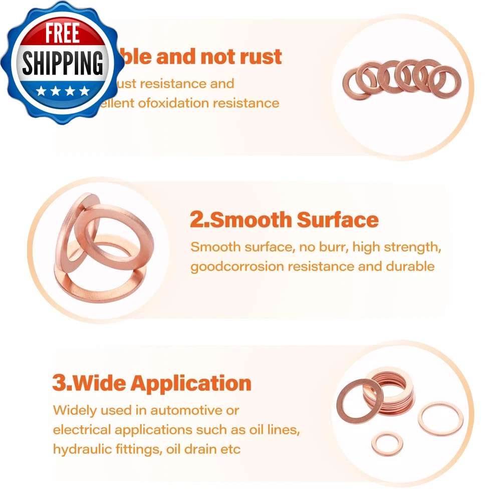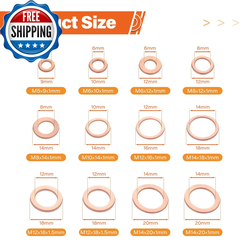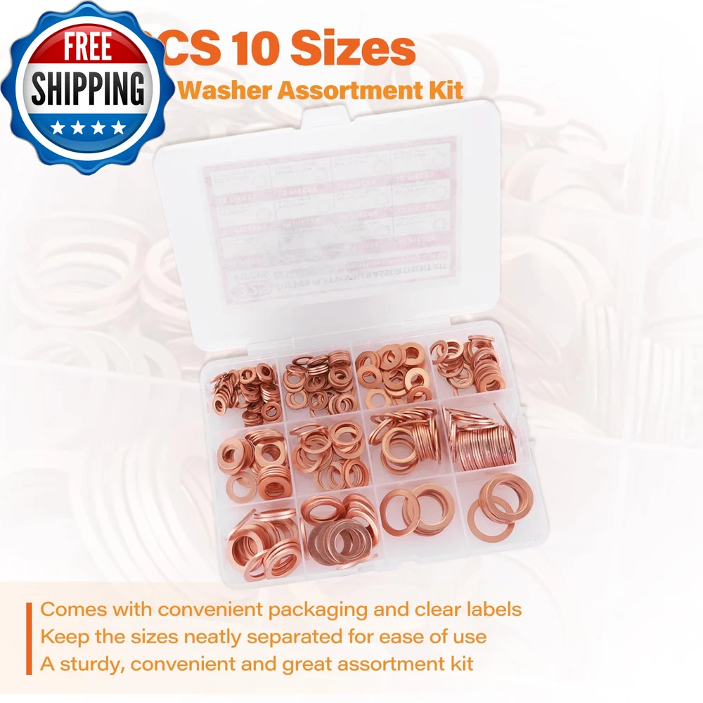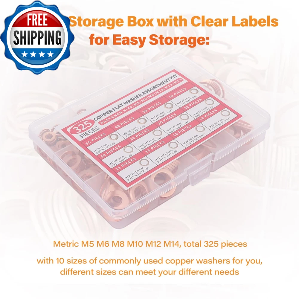 325PCS 10 Sizes Copper Metric Sealing Crush Washer Assortment Kit, Flat Ring Oil Drain Plug Gaskets Assortment Set, Copper Sealing Washers Assortment Kit (M5 M6 M8 M10 M12 M14) Comprehensive Set:There are a total of 325 pieces and 10 sizes, almost all sizes you may need: M5 M6 M8 M10 M12 M14. Different sizes can meet your different needs Premium Quality:Oil drain plug gasket assortment is made of copper, it has good corrosion-resistant and oxidation-resistant, can be used in harsh environments such as high temperature, cold weather and high humidity areas Wide Application:Widely used in automotive or electrical applications, such as oil pipes, hydraulic fittings, oil drain pipes, etc Packing Includes: Crush washer oil drain plug washer kit is including: M5(55 PCS), M6(70 PCS), M8(60 PCS), M10(30 PCS), M12(60 P CS), M14(50PCS) crush washer oil drain plug washer Packaging: The oil drain plug gasket is packed in an easy-to-storage plastic box. There is a label with the oil drain plug model on the packaging box for easy identification of the gasket model and easy access Product Description Item model number T5846 Item Thickness 0.04 Inches Material Copper Country of Origin China Outside Diameter 0.35, 0.47, 0.55, 0.63, 0.71, 0.78 Inches Washer Type Flat Fastener Size M5, M6, M8, M10, M12, M14 Package Dimensions 6.61 x 5.59 x 1.06 inches; 9.42 ounces Shipping Fast shipping is very important for us. Our standard US shipping service is FREE. Your order will be shipped within 2-3 business days upon full payment received. Your order will be delivered within 2-3 business days after the handling time. We only ship to the confirmed PayPal address. We reserve the right to cancel any order for any reason at any time. We are not responsible for undeliverable addresses. Returns and payment We offer a 30 days return policy from checkout winning date. We allow only PayPal as payment method FeedBack Your feedback very important to us, after you get your package and you are satisfied with our service please leave us positive feedback If you have any problem with your order / any questions please before leave any type of feedback Please visit our eBay store to check out other items for sale! Thank you for shopping at our store.