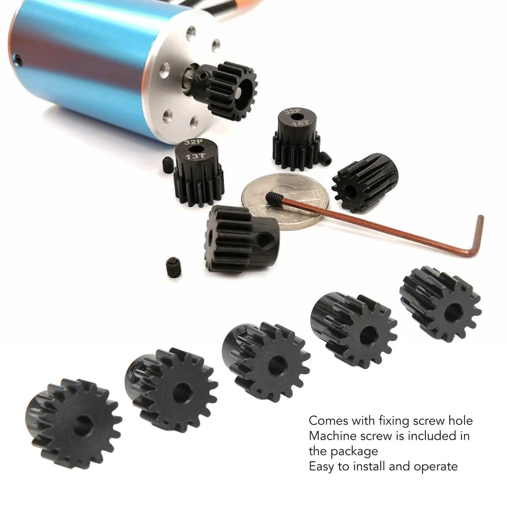 Feature: 1. High Strength: The pinion gear is made of high accuracy chrome molybdenum alloy steel with heat treatment process, and it has super hardness and wear proof, corrosion proof, and long service life. 2. Applicable Model: The exterior of the pinion gear is rust proofed and is an ideal replacement for old or damaged parts for 1/10 RC model car 3.175mm shaft motors. 3. 5 Pinion Gears: Provides 5 pinion gears of 12T 13T 14T 15T 16T, giving you more choices in gear ratio and making your RC car perform better. 4. Stable Performance: Compared with other pinions, our pinions have better machinability, low roughness and low noise, making them roll smoothly. 5. Easy To Install: Exquisite processing makes the gears roll smoothly. Comes with fixing screw holes, easy to install and operate, with machine screws in the package. Specification: Item Type: RC Motor Pinion Gear Material: Chrome Molybdenum Alloy Steel Product Color: Black Gross Weight: 38g / 1.3oz Number of Teeth: 12T 13T 14T 15T 16T Gear Pitch: 32DP / 0.8M Center Aperture: 3.175mm / 0.13in 12T Size: 10.8x13mm / 0.43x0.51in 13T Size: 11.8x13mm / 0.46x0.51in 14T Size: 12.5x13mm / 0.49x0.51in 15T Size: 13.5x13mm /0.53 x0.51in 16T Size: 14.3x13mm / 0.56x0.51in Applicable Model: Suitable for 1/10 RC model car 3.175mm shaft, for Traxxas, for Arrma Package List: 5 x Motor Pinion Gear 5 x Machine Screw 1 x Wrench Note: 1. Due to manual measurement, 1‑3mm error is allowed, thank you! 2. Due to the difference between different monitors, the picture may not reflect the actual color of the item. All the items will be dispatched within one business day by Airmail after the payment is clear. Most times you will receive your order within 10-30 business days after we transfer your package to the delivery company. We cannot guarantee the delivery timeframe if the post office has any unexpected delays due to holiday,weather,customs, or other conditions. Some countries like Russia, Brazil, or some European countries may take up to 50 days or longer for delivery. We appreciate your patience if you haven't received items in 30 days(Russian customers may need more patience by reason of the local delivery system and/or customs). If you are concerned in any way, please feel free to contact us via ebay message instead of leaving negative/neutral feedback or opening a dispute . We will do our best to solve any problem(resend or refund any missingitem). Customs duty is obligation and liability of citizens in yourresponsible for any tax and custom duty incurred. Generally, thedelay or failure delivery is sometimes caused by the policy of different customs. Our listing price includes the value of goods,packaging cost,and export taxes,not including international duties. duties,taxes,and charges are not included in the item price or shipping fee. The duties are buyers' responsibility. Please check with your country's customs office determine what these additional costs will be prior to your purchase. All disputes arising from the duties will be submitted to ebay for solution. Any questions, pls. contact us via ebay message or email us. We will reply your message within 48 hours. If you do not receive our reply within 48 hours, pls. post a message again because sometimes our message system may block some emails. If you are satisfied with our service, pls. kindly leave us a positive feedback and give us the Detailed Seller Rating with all " 5 " in very area. Our aim is to provide Level Customer Service, your recognition will encourage us greatly and serve you better. We strive to keep all our customers satisfy. We will do our up most to exceed your expectations in customer service, communication and dispatching of your orders.