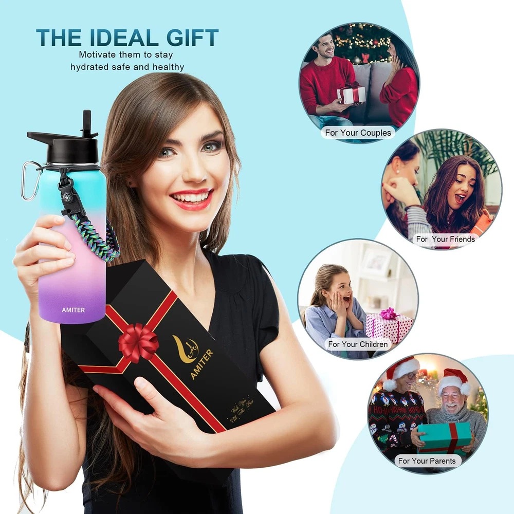 Store New Arrivals Add to Favorite View Feedback Contact 32Oz Insulated Bottle with Straw & Spout Lid, Wide Mouth Stainless Steel Water Bottles with Paracord Handle Description Capacity 2 Pounds Number of Items 1 Color Hydrangea Pattern Modern Material Stainless Steel Item Weight 2 pounds Cap Type Straw Cap Theme Sport With Lid Yes Age Range (Description) Adult Recommended Uses For Product Water Included Components Lid Special Feature Cold 24 Hours, Leakproof, Double Wall Product Dimensions 3.5"W x 9"H Product Care Instructions Hand Wash Only 【2 Lids Included】It comes with 2 compatible and leakproof lids to fit your every need. One spout lid with screw cap allows for fast water flow when you're feeling the burn. Another straw lid allows you to enjoy spill-proof sipping without efforts. They allow easy one-handed or hands-free drinking even when you're busy. Perfect for any indoor and outdoor activities. 【Valuable Paracord Handle】We have equipped this water bottle with 1 paracord handle combined with several gadgets includes compass, flint, whistle, carabiner and military grade paracord, which allowing you to enjoy the ultimate convenience and fashion while obtaining high-quality insulated water bottles! 【Double Vacuum Insulation】Perfectly designed with vacuum sealed and double wall insulation technology, AMITER water bottle will keep your beverages iced for 6 hours, cold for 24 hours, and hot for 12 hours with fresh taste. 【Premium Stainless Steel】Made of food grade 18/8 stainless steel that is 100% BPA free and non toxic, this insulated bottle is fully resistant to oxidation and rust , never leave a metal taste which is more durable and lasting. And the wide-mouth design is easy to clean and fill with ice cubes. 【Great Gift Choice】Vibrant colors designed makes it an ideal gift for your beloved ones. WHAT YOU GET: 1 x 32oz Water Bottle, 1 x Spout Lid, 1 x Straw Lid, 2 x Straw, 1 x Straw Brush, 1 x Gift Box. Product Description AMITER Water Bottle with Straw & Handle (22oz, 32oz, 40oz, 64oz, 128oz), Vacuum 18/8 Insulated Stainless Steel Sport Water Bottles Leakproof AMITER is committed to designing more convenient and humanized vacuum insulated water bottle to provide more available designs, sizes, colors for you to choose from. Package Includes: 1 x AMITER Water Bottle 1 x Spout Lid 1 x Straw Lid 2 x Straw 1 x Straw Brush 1 x Gift Box ABOUT US We offer the best prices around on high quality products. Our E-store includes media such as books, movies, music and games while offering electronics, toys, sporting apparel, clothing, tools, general home, garden items and more. SHIPPING We are always working hard to ensure your package arrives as soon as possible. Please understand that some factors like weather, high postal traffic, and the performance of shipping companies are outside of our control. We offer free shipping to the lower 48 states and ship within 2 business days of payment, usually sooner. We do not accept P.O. Boxes. Please provide a physical address. For shipping outside of the continental USA, we only use eBay's Global Shipping Program.The item is shipped to KY and then sent to the rest of the world. International customers are responsible for all duties and taxes. Continue to check out in order to calculate costs for shipping the item to your country. Messages regarding eBay's Global Shipping Program MUST be directed at eBay EXCLUSIVELY. RETURNS We offer a 30-Day Return Policy on items which you are not completely satisfied with. You have the option for a full-refund or an exchange of the item. No returns are available on items shipped outside of the USA. PAYMENT We accept PayPal. CONTACT US This page content is yet to come Please ad us to your favorite seller and visit again later Thank You CUSTOMER SATISFACTION We try our very best to make sure every customer is completely satisfied. If there's a problem, message us! We're happy to help. WE ACCEPT Copyright © 2021 AutoDS. | All Rights Reserved