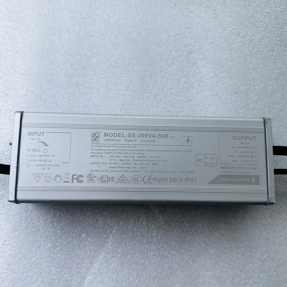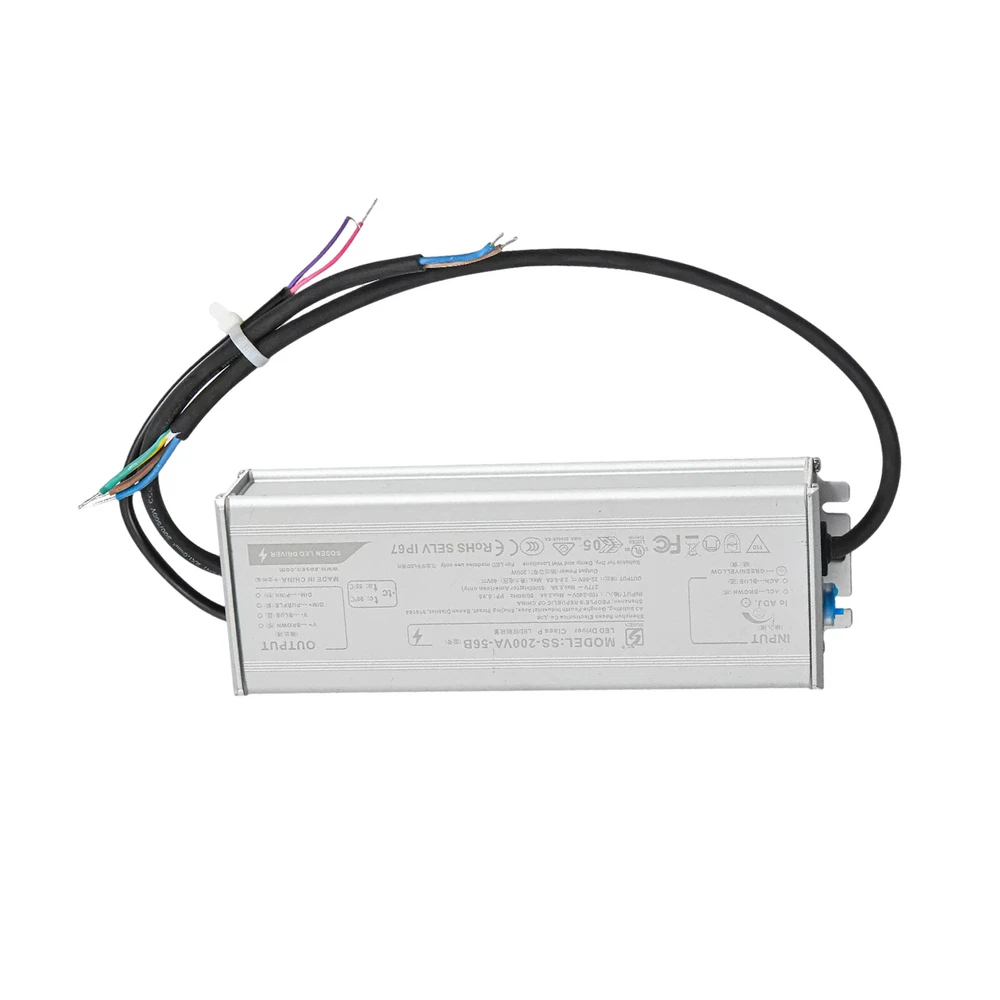 Output Voltage: 32-54V DC MAX 60V Type: LED Driver Brand: Unbranded Power: 200W Max gtin13: do not apply Certifications: UL, FCC, IP67 UPC: do not apply Input Voltage: 100-277V AC Power Factor: 95% IP Rating: IP67 Bulb Wattage: 200 W