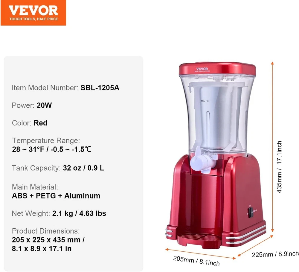 SALT and ICE: Only need to add salt and ice in ice bucket. Slowly pour the slushy ingredients into the feeding chute (you can continue to add ice and salt to the ice bucket during the process). The machine keeps stirring and just wait for 15-20 minutes to enjoy delicious slushies. Pre-chilling the slushy ingredients and ice bucket for 30 minutes can speed up the slushy-making process. Kids can easily DIY their own creations! 32oz Slushy Machine: Craft multiple servings of refreshing slushies with this slush frozen drink machine, capable of holding up to 32 ounces of your favorite beverages. Perfect for home gatherings or kids' parties, adding a cool, icy touch to any event. Theritualy Slushie Machine for Home, 32oz Tank Home-use Margarita Machine, Smoothie Frozen Drink Maker with Food-grade Materials, Slushy Machine for Home DIY, Kids' Parties, Red SALT and ICE: Only need to add salt and ice in ice bucket. Slowly pour the slushy ingredients into the feeding chute (you can continue to add ice and salt to the ice bucket during the process). The machine keeps stirring and just wait for 15-20 minutes to enjoy delicious slushies. Pre-chilling the slushy ingredients and ice bucket for 30 minutes can speed up the slushy-making process. Kids can easily DIY their own creations! 32oz Slushy Machine: Craft multiple servings of refreshing slushies with this slush frozen drink machine, capable of holding up to 32 ounces of your favorite beverages. Perfect for home gatherings or kids' parties, adding a cool, icy touch to any event. Versatile for Various Beverages: This home-use slushy machine can turn a range of drinks—such as syrups, fruit juices, sodas, and more—into delightful slushies or chilled treats. The clear tank showcases your colorful creations, adding a vibrant look to any occasion. Easy Operation: Enjoy a simple 4-step process that’s fun and easy, even for kids to DIY their own drinks. The double-insulated design ensures your slushies stay at the optimal temperature for hours. Effortless Cleaning: The detachable parts make it easy to disassemble and rinse with water, so you can clean up quickly and enjoy more time indulging in frozen treats with this margarita machine. Perfect for Gifting & Parties: Featuring a nostalgic, lightweight design, this margarita slush maker is ideal for taking anywhere—whether it’s creating treats for kids, sharing a fun time with friends, or gifting during holidays, it’s sure to delight. If you have any problems while using this timed cat feeder, please contact us for specific instructions. Hope our cat food feeder can help all pet owners reduce the burden of taking care of their pets and get the most pleasant purchasing experience from us Item Specifics brand unbranded Type Commercial Frozen Drink Machines Product weight 4.6 Pounds Color Red Material ABS PETG Aluminum Included Components 1 x Slushy Machine Model Name Slushy Machine for Home Color Red Material ABS PETG Aluminum Included Components 1 x Slushy Machine Model Name Slushy Machine for Home Item Weight 4.6 Pounds Product Care Instructions Hand Wash UPC 197988088103 Product Dimensions 8.07 x 8.86 x 17.13 inches Item Weight 4.63 pounds Country of Origin China Item model number SBL-1205A Brand Unbranded Payment We accept PayPal payment,PayPal Credit,Credit card or debit card and so on. Payment should be completed within 4 (Four) days of auction closing. Or unpaid dispute will be filed for closing auction. We will leave a positive feedback immediately after payment is received. We appreciate a positive feedback as much as you do. If for some reason there is any issue with the purchase, please contact us prior to leaving feedback, we will be glad to work together and provide a satisfying solution. Shipping 1.We usually ship within 3-5 business days of receiving cleared payment., and we provide Free Shipping for most items. 2.Fast shipping is very important for us. We use multiple fulfilment warehouse around the United States. We only ship to the lower 48 States and do not ship to PO Boxes. 3.Please make sure the correct Ship-To address is entered before checking out. Once the payment is completed, you may not be able to change the shipping address. We shall not be held responsible for any wrong or undeliverable addresses. Returns 1.We provide 14 days return upon the buyer received the item. It must be in good condition and you will undertake the returned shipping cost. 2.We will offer replacement or refund for all DEFECTIVE items (not including damage resulting from accidents / abuse / misuse / improper care), but a photo is needed for our reference beforehand and should be reported to us within 7 days from purchase date. 3.All items are brand new and have been passed the quality check. All are packed in a good condition before item dispatch. Contact Us 1.Dear customers, we appreciate your business, our aim is to provide Top Level Customer Service,if you are satisfied with our service, please leave us a 5 star positive feedback . 2.If you have any question or concern about your eBay order, please feel free to let us know. We will try our best to reply all questions within 24 hours. However, no answer will be replied during weekends or holidays. Please allow up to 48 hours delay in receiving our response after long weekends or holidays. 3.Please via eBay Message for a solution for resolutions before leaving negative feedback, we strive to providing the greatest service and bringing the highest satisfaction to all of our customers. Theritualy DESCRIPTION PAYMENT SHIPPING RETURN POLICY CONTACT US Shop Category Store Home Other Hot Item 365 Cfm Brown Powder Coated 5-Watt Solar Powered Roof Mounted Exhaust Attic Fan USD 111.23 8000Mah Portable Waist Fan Clip On Belt Personal Fan, 3 Speeds Rechargeable, Up USD 18.08 Oasis 360 Black, Large, Steel, Locking Parcel Mailbox With 2Access Doors USD 123.75 Flush Wall Vent (Lite) 4". X 10". White USD 36.99 ONE+ 18V Cordless 7 1/2 in.Bucket Top Misting Fan (T