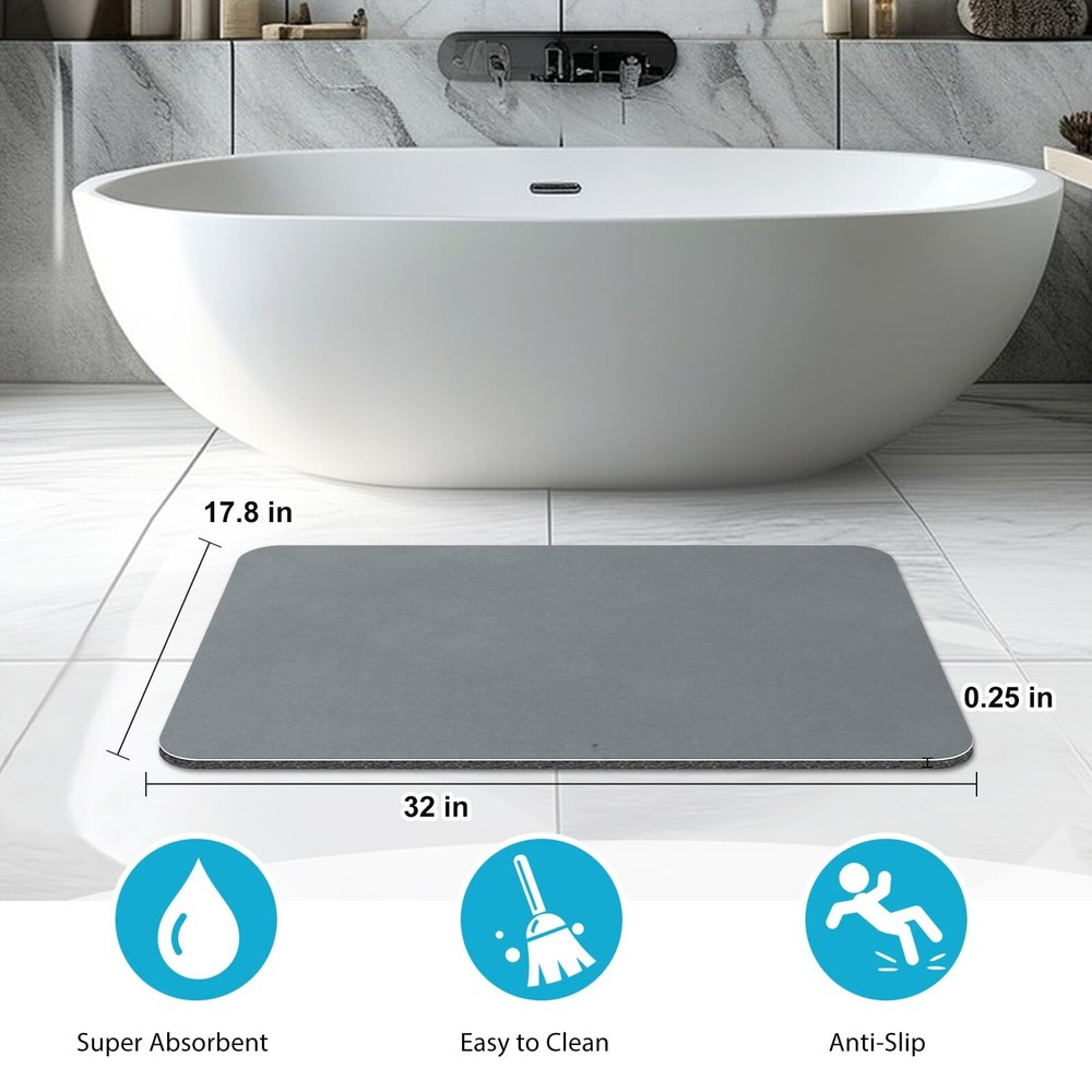 Bath Mat Rug 32"x17.8" Bathroom Mat Non Slip Bath Mat Quick Dry Super Absorbent Bathmat Bath Rug Bathroom Rug Easy to Clean Rectangle Grey 【Absorbent & Quick Drying】:The bath mat for bathroom is made of diatomite materials,which is easier to dry than normal plush mat. They can absorb as much water as possible from your wet feet immediately when you come out from bathtub or shower. This super absorbent bath mat will keep your space clean and safe. If you want to dry it quickly, just hang to air dry for one night. 【SOFT & COMFORTABLE】:The diatomite shower mat for bathroom contains a cushioning sponge layer for added comfort.,When you get out of the bathtub or shower, your feet will feel very soft on the surface. You won't feel cold or hard anytime. Enjoy a dry and comfortable experience after your shower. 【NON-SLIP BACKING Design】:The bathroom mat is designed with a rubber backing, it have a strong adsorption to the ground preventing slips and skids on wet surfaces. You can step out of the shower or bathtub with confidence 【Wide Use & Warmer】: This thin bathroom mat is suitable for wherever is easy to get wet, such as shower or bathtubs.Used for door mat, laundry room mat, kitchen mat, pet feeding mat, plant placement mat, desk mat, sink mat, living room mat,RV mat etc, You won’t feel cold in winter and won’t feel hot in summer when step on it. It's more than a mat for bathroom. 【Easy Clean & Durability】:The washable bathroom mat’s surface is designed to be smooth,unlike the plush bathmat. Never worry about cleaning hair and dust anymore.Just clean it with a damp cloth or rinse with a shower nozzle,even without the need of machine & hand washing. The rubber bath rug for bath room is used longger without problems caused by fibers, like fading, shedding, wearing. 【Best After-sales Service】: If you have any problem, please contact on us straightly. We will give you a satisfactory answer. SHIPPING Domestic Buyers - We have confidence in our products, but if you are not fully satisfied please contact us within 30 days of purchase and you will get full refund. - We ship within 3 business days of payment, usually sooner - We offer FREE shipping on all orders! - We only ship to the lower 48 states, no APO/FPO addresses or PO Boxes allowed International buyers – please note: Import duties, taxes, and charges aren't included in the item price or postage cost. These charges are the buyer's responsibility. - Please check with your country's customs office to determine what these additional costs will be prior to bidding or buying. * Order Cancellation Policy ** You can return a product for up to 30 days from the date you purchased it. 1. The seller reserves the right to cancel the special case only due to eBay cancellation fee. 2. The decision of seller is the final. 3. The seller will respond to the cancellation request within 2 business days. Please wait for the result of cancellation. 4. In case the cancellation is not completed by some reasons, the buyer can follow the options below to get the refund. 4.1 The buyer can reject the item when it arrives. 4.2 The buyer can send the item back to the seller within 30 days If the buyer receives item (USA Shipment ONLY). The seller will provide the FREE return label to the buyer when the buyer opens " Return Item" case on eBay by using the reason as "Change my mind" ONLY. 5. When buyer has placed the order. The order will be processed and completed by automatic warehouse system within 5 minutes. In case that buyer sends the cancellation request after 5 minutes of placing the order, the request will be rejected. **Sending direct message to cancel the order is not allowed for every case.* Return Policy For the return case - If buyer would like to return the items for refund or replacement, please CONTACT SELLER to receive the free return label from seller. The refund or replacement will be processed with the tracking number of return label which is provided by seller only. The other ways of return which are not approved by seller will not be processed for the refund or replacement.