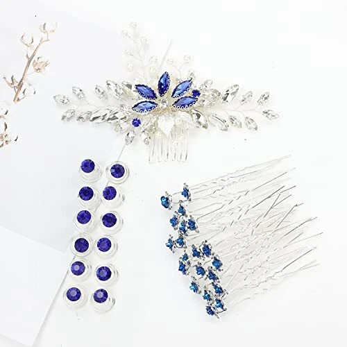 Return Policy Fast Delivery Trusted seller 33 Pack Royal Blue Rhinestone Pearl Crystal Leaf Flower Bridal Hair Side Combs+Spiral Gems Hair Clips+U Shaped Hair Pins Wedding Headpieces Accessories for Women Girls Brides Bridesmaids Product Description Material: Every hair side comb or hair pin is handmade by high quality alloy decorated with artificial rhinestones, crystals or pearls. Excellent materials make these wedding headpieces more elegant, unique and pretty. Main Color: Royal blue, special color for you. What You Get: 33 pack in total as photo show (1pc hair side combs+32pcs U-shaped hair pins) in the good package. Size: See the size photo on the left. Different sizes and styles are enough for you to do your hair styles. Design: Well made bridal hair accessories. Flower or leaf hair side combs/hair pins with artificial rhinestones, crystal and pearls decoration. Beautiful look and easy to use. They are good assistant for you to DIY your own hairstyles. Make women, brides or bridesmaids more charming and graceful. Occasions: These exquisite wedding headpieces are perfectly suitable for brides or bridesmaids to wear at a wedding party or as photography props in photo shoot. Also as great gifts for your friends or relatives. Shipping Returns Payment Shipping Shipping is FREE to all addresses other than APO/PO boxes in the lower 48 states. All our stock ships from US-based warehouses. Shipped via USPS or UPS (depending on location and package weight) Unless stated otherwise, all orders will ship within 24-72 hours of your payment being processed. Check our feedback to see the great reviews of FAST shipping we offer. Returns Seller does not accept returns Payment We currently accept payment via eBay managed payments only. Once payment is cleared, we will dispatch your shipment within 1-3 business days. Please refer to the "Shipping" tab for more information regarding shipping speed to your destination.