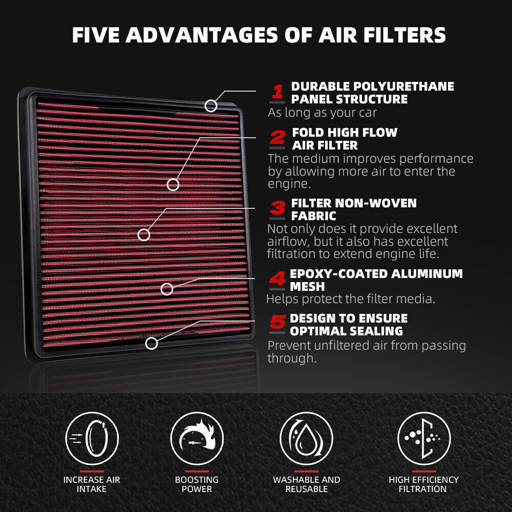 33-2385 Replacement Air Filter For 11-24 Ford F150 3.5L 11-16 F250 F350 6.2L New SPECIFICATIONS: Type: Air Filter Material: Plastic + Non-woven Fabric FEATURES: 100% Brand New and Never Used or Installed Designed to increase horsepower Washable, reusable, and engineered to last for the life of your vehicle Designed to provide high airflow and exceptional filtration Engineered to fit easily into your factory air box Only needs cleaning every 50,000 miles under normal highway driving conditions [How often should air intake filter be replaced?] It should be inspected once a year or every 15,000 to 30,000 miles, but this can varybased on the car and driving environment. If you often drive through dusty terrain oron unpaved roads, you may need to change it more frequently. APPLICATION: Fit for Ford Expedition 3.5L 15-24 Fit for Ford Expedition 5.4L 07-14 Fit for Ford F-150 2.7L 15-24 Fit for Ford F-150 3.0L 18-21 Fit for Ford F-150 3.3L 18-23 Fit for Ford F-150 3.5L 11-24 Fit for Ford F-150 3.7L 11-14 Fit for Ford F-150 4.6L 09-10 Fit for Ford F-150 5.0L 11-24 Fit for Ford F-150 5.4L 09-10 Fit for Ford F-150 6.2L 10-14 Fit for Ford F-250 Super Duty 5.4L 08-10 Fit for Ford F-250 Super Duty 6.2L 11-16 Fit for Ford F-250 Super Duty 6.8L 08-10 Fit for Ford F-350 5.4L 08-09 Fit for Ford F-350 6.2L 11-16 Fit for Ford F-350 Super Duty 5.4L 08-10 Fit for Ford F-350 Super Duty 6.2L 11-16 Fit for Ford F-350 Super Duty 6.8L 08-10 Fit for Ford F-450 Super Duty 6.8L 08-15 Fit for Ford F-550 Super Duty 6.8L 08-15 Fit for Ford F650 6.8L 12-13 Fit for Lincoln Navigator 3.5L 15-23 Fit for Lincoln Navigator 5.4L 07-14 PACKAGE INCLUDE: 1 × Air FilterAll accessories in the picture are included. SHIPPING INFORMATION PAYMENT WARRANTY ABOUT US CONTACT US SHIPPING INFORMATION We will only ship this item to buyers by Normal Mail, please confirm your address is correct, and if you want to change the delivery address, just feel free to contact us when you purchase. Usually, we will ship the orders out and upload the tracking number within 1-2 business days(Monday to Saturday from 8:30am-5:30pm) after you complete the payment. PAYMENT We will only accept eBay payment. Please pay using eBay payment ONLY within 7 days from the date of transaction be made. WARRANTY Please inspect your order upon receipt.No damage claims will be honored after 14 days of delivery. All item we sold come with 90 days defective warranty from the date. ABOUT US We are a powerful factory producing auto parts,and we have a professional sales and after-sales team that can provide you with excellent products and services. CONTACT US For any reason you want to contact us,We aim at satisfying every visitor, no matter what kind of situation you meet with, we will be right here to serve you. Please contact our team. If you are happy with the transaction with us, leaving us an ALL-5-STAR positive feedback would be greatly appreciated. Have a good shopping.