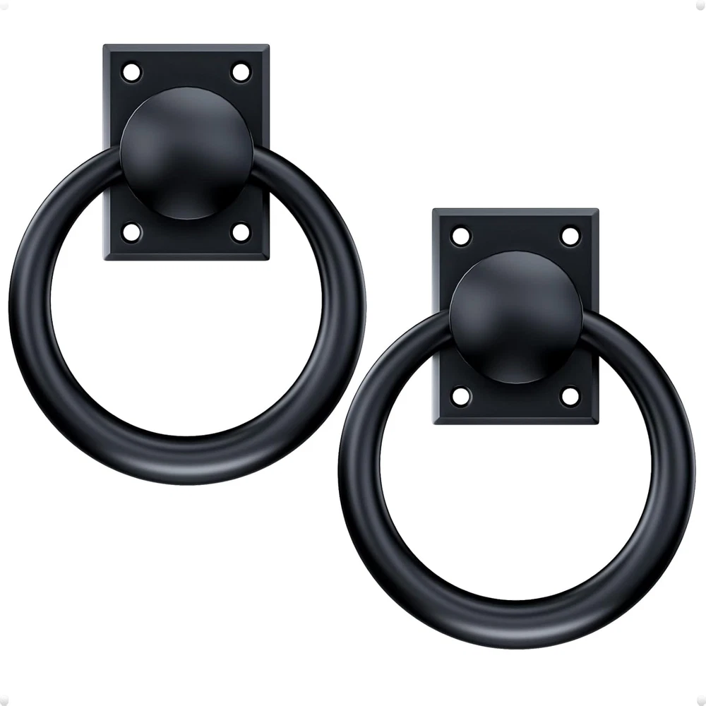 Business is our speciality NEW 3-3/4" Rotatable Matte Black Sliding Barn Door Handles Garden Fence Gate Pulls, Zinc Vintage Ring Bi-Fold Closet Door Handles, Trapdoor Attic Pull down Hardware Kit FEATURES EXCLUSIVE FOLDABLE DESIGN allows the door loop handle to flip 180 degrees from bottom to top, and the pull hinger to rotate 360 degrees. For more details, please check the second picture. ELEGANT and decorative gate door handles provide convenience, decoration, durability, and customization. They are essential for gates in various settings, including interior double-side barn doors, exterior door, hallway entry doors, outdoor front doors, carriage garage carport doors, garden decor barnyard picket fence doors, and bi-fold bypass doors. SIMPLY attach the flush handles to the wooden surface using the included 4 stainless steel bolts, and easily open or close sliding doors. VERSATILE: they function not only as door pull handles but also as steamer trunk / chest handles, shed and horse stable rope cross tie downs, dummy door knockers for front doors, and ladder attic door pull down handles, ceiling or floor basement access hatch handles, pool electrical equipment box cover handles DURABLE: These door hardware items are made from 100% heavy-duty Zinc (not cheap cast iron) with an anti-corrosion coating for weather resistance. UNIVERSALLY fit all types of wooden doors, whether solid or hollow core. The matte black color, slightly lighter than flat black, adds elegance to the overall design. UNIQUE horseshoe decorative barn door hardware adds style and sophistication, reflecting the room's personality. GIFT for her or him as the horseshoe is universally known as a symbol of protection and good luck Product Description HORSESHOE SHAPE Hanging a horseshoe hardware at your barn door or gate door is believed to attract positive energies and bring good luck and happiness to your home Flexibility in Door Customization Sliding Barn Door Handle Door handles are essential for opening and closing these doors, as well as for privacy and security. Carriage Garage Door Handle Round door handles offer a combination of functionality, durability, and aesthetic appeal, making them a popular choice for garage doors. Gate Fence Door Handle Even if not used for their original purpose, they can serve as decorative elements on doors, adding visual interest and enhancing curb appeal. Front Door Knocker They may be used as symbols of hospitality, respect, or good fortune. High Standard To Meet Rustproof Solid Zinc Material Our gate door handles are crafted entirely from zinc, ensuring they remain stainless and durable. Unlike cheaper cast iron handles, these will withstand the test of time. Powder Coating These zinc door handles are specially treated using an advanced technique called powder coating. This makes them durable and suitable for outdoor use, whether it’s on gates, fences, garages, or front doors. trust4care Compact Gate Handle Features Circular Design Circular handles are often easier to grasp and operate, especially for individuals with limited hand mobility or strength. Left/Right Sliding The 360-degree swivel function enables you to slide the barn door smoothly in either the left or right direction. Thin Height(1.2 inches) The slim handle's lower profile saves space. It sticks out less from the door, reducing the chance of snagging clothes or blocking traffic flow. 180-degree Rotation These handles can be attached to fence or heavy chests. Their 180-degree rotation function allows you to use as either door pulls or chest handles. Ring Handle vs Rectangle Handle Ring Shape Horseshoe Shape Rectangle Shape Rectangle Loop Rectangle Shape Rectangle Loop Large Size 4 fingers inside the ring Small Size 2 fingers inside the loop Small Size 2 fingers inside the loop Number of Items 1 Theme entry door, sliding barndoor, French Door, entrance door, Swinging Cafe Door, bifold Closet door, Ladder Attic Pull Down Handles, gate, shed horse stable, Laundry Batteries Included? No Unit Count 1.0 Count Room Type Kitchen, Bedroom, Living Room, Dining Room Finish Powder Coated Gem Type horseshoe, round, drop rings, circle Exterior Finish black Material Cast zinc, Zinc casting Item Depth 3.75 inches Metal Type Cast zinc, Stainless zinc, solid zinc Specific Uses For Product sliding barn door handle, door knocker, garage door handles, horse stable, gate handles Item Package Quantity 2 Indoor/Outdoor Usage Outdoor, Indoor Batteries Required? No Item Weight 1.59 pounds Size 3-3/4" Lock Type bolts mount, screws mounts Special Features Durable, Easy to Install, Versatile Special Feature Durable, Easy to Install, Versatile Color Flat Black Shape Pentagonal Finish Type Powder Coated Hand Orientation Towing Hitch Handle Material Stainless Steel, Zinc Style horseshoe Handle Type Pull Handle, gate pull open Included Components install template Product Dimensions 3.75"L x 3.75"W Grit Description Fine Number Of Pieces 2, 4 3.75 "w x 3.75 "w. Weight: 1.59 lb Ask us anyhting Free shipping PAYMENT We accept all payments via Ebay using Credit Cards , PAYPAL , Apple Pay and many others SHIPPING We are always working hard to ensure your package arrives as soon as possible. Please understand that some factors like weather, high postal traffic, and the performance of shipping companies are outside of our control. DELIVERY & RETURN POLICY We offer a 30-Day Return Policy on items in which you are not completely satisfied with. You have the option of a full-refund or an exchange of the item. No returns are available on items shipped outside of the USA.