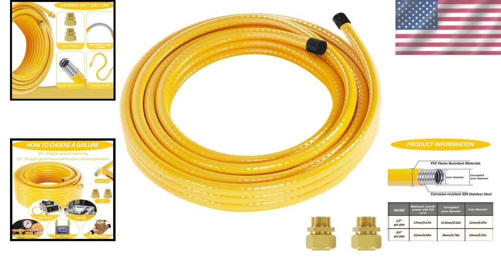 33FT Propane Pipe Conversion Kit with Solid Brass Connectors - Reliable Gas Line ‹ › ‹ › ‹ › ‹ › ‹ › ‹ › ‹ › 33FT Propane Pipe Conversion Kit Transform your outdoor and indoor gas connections with this exquisite 33FT Propane Pipe Conversion Kit, featuring solid brass connectors for a reliable and safe gas line. Features: Manufactured from high-quality 304 stainless steel bellows with corrosion-resistant material. Thickened PVC exterior prevents surface burns and gas leakage. Each gas tube undergoes rigorous three-layer pressure testing for complete reliability. Solid brass connectors on both ends ensure greater durability compared to rubber and plastic fittings. Flexible design allows the tubing to be cut to any length, adaptable to your needs. Inner diameter: 0.47" / 12mm; Outer diameter: 0.63" / 16mm - optimizes airflow for larger equipment. Benefits: Eliminate the risk of gas leaks with a one-piece molded design. Flexible tubing can navigate tight spaces and pass around corners with ease. Installs safely buried, concealed, or exposed, adapting to your unique setup. High-temperature resistance and explosion-proof material ensure your safety. Versatile applications for BBQ, grills, pizza ovens, patio heaters, gas stoves, water heaters, and more. Why Choose Our Propane Pipe Conversion Kit? Opt for our 33FT Propane Pipe Conversion Kit and embrace uncompromising reliability and safety in your gas line installations. Crafted from premium materials and designed for flexibility, this kit meets the individual needs of users for both indoor and outdoor setups. Whether you’re connecting a grill, water heater, or stove, you can trust this exceptional product to perform flawlessly. Invest in safety and convenience with our versatile gas line solution! Shipping Free & Fast Shipping - We offer free shipping to most of the USA with a normal delivery time of 3-7 days. However, due to the current situation, additional delivery time (up to 3 weeks) may be required for some items. Alternative Carriers - We may use alternative carriers (e.g. USPS, FedEx, UPS, etc.) to ensure your package arrives safely and on time. Due to the use of multiple carriers, we are unable to provide a tracking number automatically. Handling Time - Orders are processed and shipped within 1-2 business days of receiving cleared payment. Shipping Restrictions - Shipping to Alaska, Hawaii, Puerto Rico, Guam, and other US territories may incur shipping charges or delivery restrictions. Please contact us before ordering, or your order can be refunded/cancelled. State Restrictions - There may be restrictions based on your state of purchase. For example, certain items may not be shipped to California due to state regulations. Contact for Tracking Updates - If you require tracking updates or have any concerns about the delivery of your order, please feel free to contact us, and we will be happy to assist you. Return 30-Day Hassle-Free Returns - We want you to be completely satisfied with your purchase. If you are not, you can return the item within 30 days of receiving it for a full refund or exchange. Easy Return Process - To start a return, simply contact us and we will provide you with a prepaid return shipping label and detailed instructions. Restocking Fee - There are no restocking fees for returns. However, the buyer is responsible for return shipping costs if the return is not due to a seller's error. Refund Processing Time - Refunds will be processed within 5 business days of receiving the returned item in its original condition. Payment We accept all major credit cards, PayPal, and Apple Pay for your convenience. Your payment information is secure and encrypted to ensure a safe and seamless transaction. Please complete your payment within 3 days of purchase to avoid any delays in shipping. Feedback Your feedback is extremely important to us. We strive to provide the best products and customer service possible. If you are satisfied with your purchase, please take a moment to leave us a positive review. If you have any concerns or issues with your order, please contact us before leaving negative feedback. We are committed to resolving any problems and ensuring your satisfaction. Contact Us If you have any questions or concerns, please feel free to reach out to our customer support team. You can contact us through the eBay messaging system. We are available Monday to Friday, 9:00 am to 5:00 pm EST, and we will do our best to respond to your inquiry within 24 hours. Buy it now and enjoy a pleasant shopping experience! UPC: Not Set Unit Quantity: 33 Material: Stainless Steel,304 Stainless Steel,PVC Compatible Brand: Not Set Compatible Model: Universal Brand: Unbranded Type: Gas Conversion Kit Color: Yellow MPN: Not Set Year Manufactured: Not Set Item Depth: 0.63 in Item Diameter: 0.63 in Model: Not Set Item Height: Not Set Item Width: Not Set Country/Region of Manufacture: Not Set Item Weight: 3.34 lb Manufacturer Warranty: Not Set Unit Type: ft