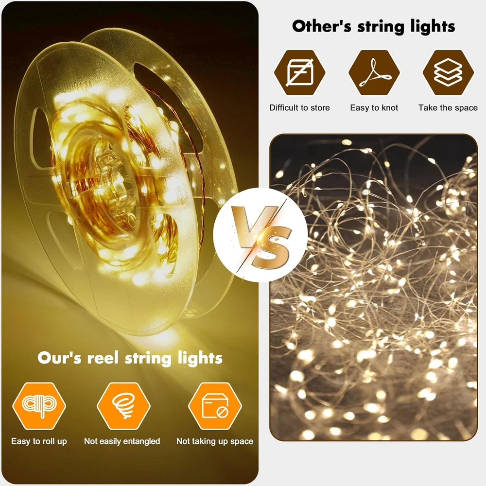 Flexible Copper Wire Fairy Lights: The 33Ft 100 LED Warm White Fairy Lights are designed with flexible copper wires that allow for creative and versatile decoration. You can easily twist and shape the lights to wrap around plants, staircases, furniture, or even drape them along walls and mirrors. This adaptability makes them perfect for any occasion or setting, allowing you to express your unique style and creativity. Safe and Energy Efficient: Operating on a low voltage of 4.5V, these fairy lights are not only energy-efficient but also safe to touch, even after prolonged use. They are designed to prevent overheating, ensuring a safe environment for children and pets. With no need for batteries, simply plug them in and enjoy the warm, inviting glow they provide for both indoor and outdoor spaces. Convenient Storage and Use: The lights come neatly coiled on a specially designed winding reel, preventing tangles and making storage easy when not in use. An ON/OFF switch is included for convenient operation, particularly useful for setting the mood in bedrooms or during gatherings. Durable Indoor and Outdoor Use: Crafted from waterproof copper wire, these lights are built to withstand various weather conditions, making them ideal for outdoor decorations. They can enhance the ambiance of your garden, patio, or backyard while also being suitable for indoor spaces, adding a touch of elegance to your home. Customer Support: We are committed to your satisfaction. If you have any questions or concerns regarding the product, our dedicated team is available to provide solutions within 24 hours. Please note that while the copper wires and LEDs are waterproof, the transformer is not designed for outdoor use. Product Description Transform your living space with the enchanting glow of our 33Ft 100 LED Warm White Fairy Lights. These versatile lights are perfect for creating a magical atmosphere, whether for everyday decor or special occasions. The flexible copper wire allows you to shape the lights in countless ways, making them ideal for wrapping around plants, decorating staircases, or enhancing your festive events. Designed with safety in mind, these LED string lights operate at a low voltage, ensuring they remain cool to the touch and safe for use around children and pets. The waterproof copper wire makes them suitable for outdoor use, allowing you to illuminate your garden, patio, or backyard with ease. Elevate your home decor and create unforgettable memories with these stunning fairy lights. Best Features Flexible and customizable copper wire for easy shaping and wrapping. Safe to touch with low voltage operation, preventing overheating. Convenient storage with a specially designed winding reel. Durable and waterproof construction for both indoor and outdoor use. Responsive customer support available for any inquiries or concerns.