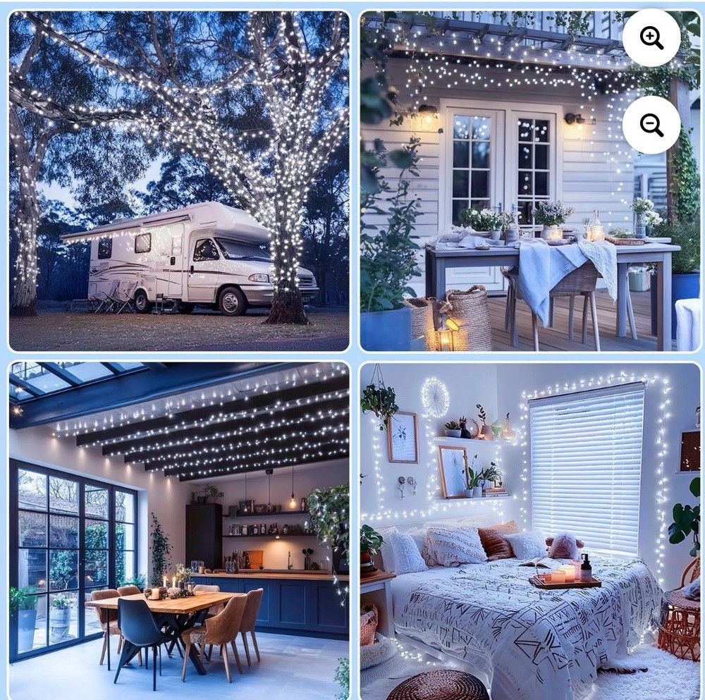 Vibrant Illumination: Features 100 bright, non- dazzling LED bullos on a 33 ft green wire, blending seamlessly with natural surroundings for both indoor and outdoor use. • Versatile Modes: Offers 8 distinct lighting modes, including combination, sequential, and twinkle, adjustable via a button on the adapter to suit various moods and occasions. • Durable Construction: Crafted from high-quality copper and plastic, these UL certified lights are safe to touch and built for longevity, consuming minimal electricity. • Weatherproof Design: Boasts an IP65 waterproof rating for outdoor decoration in various weather conditions, though the power adapter is not waterproof. • Eco-Conscious Lighting: Utilizes energy-saving LED light beads, promoting environmental protection and a low-carbon lifestyle with extended lifespan compared to traditional bullbs. Buy now Add to