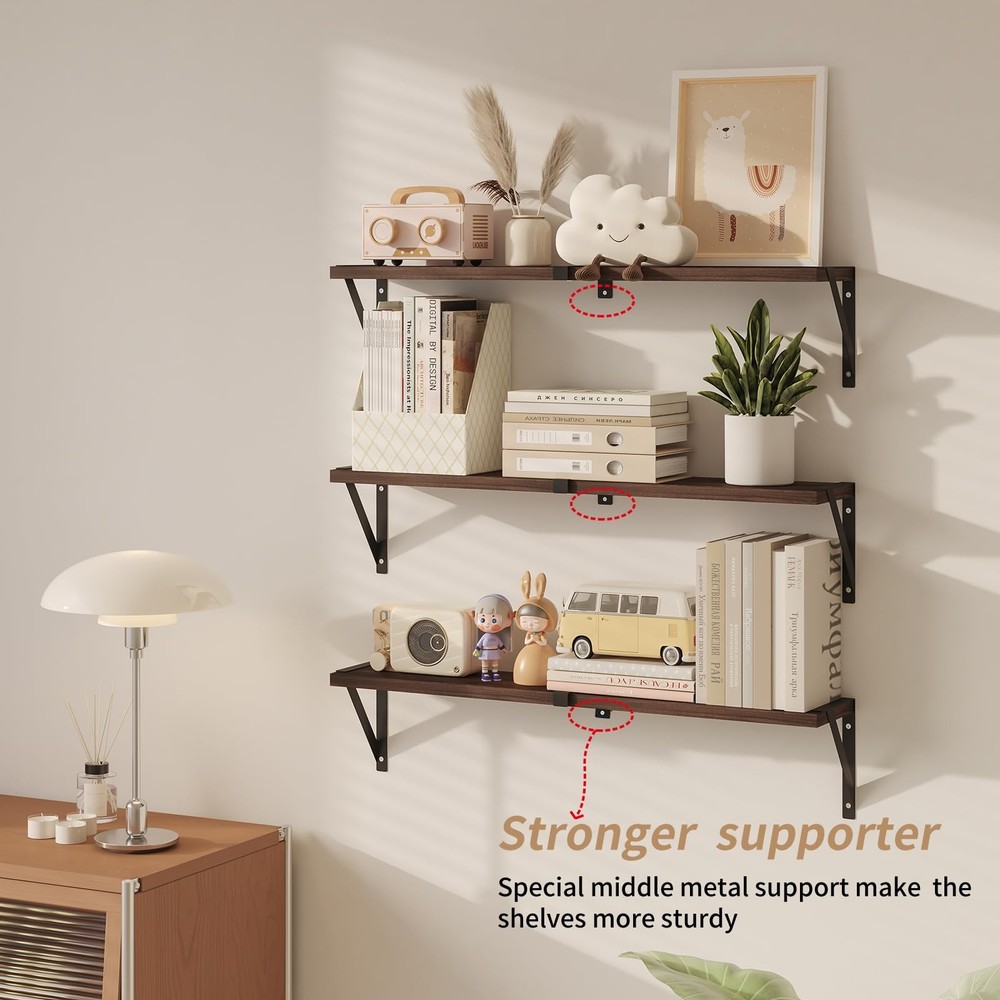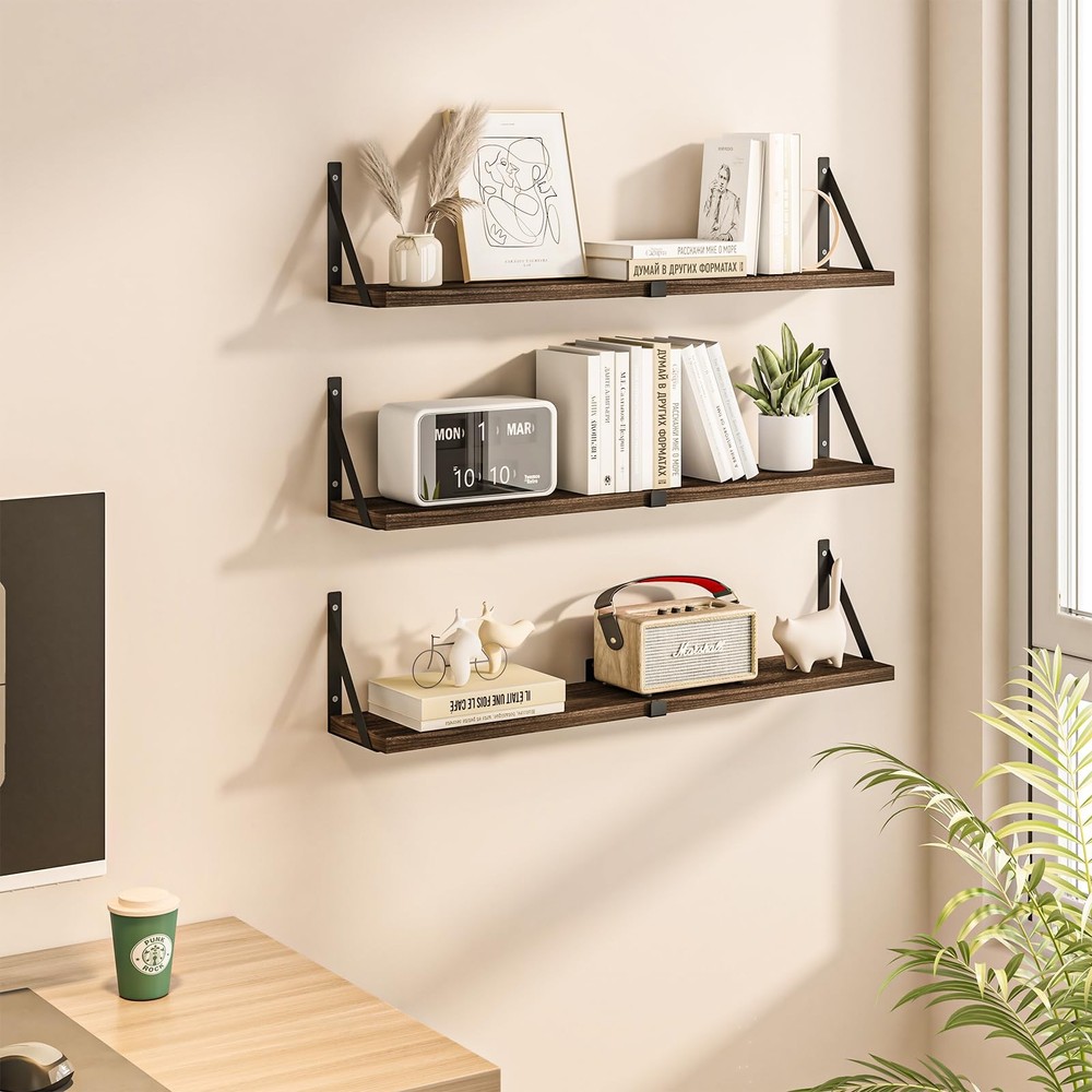 Love how these floating shelves add stylish storage to my space! The sturdy design holds books and decor securely, and the minimalist look blends perfectly with my living room. Super easy to install and adds a modern touch—highly recommend for anyone looking to organize with flair.