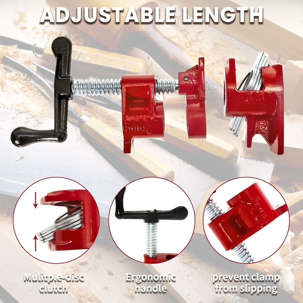 Ideal for both industrial and DIY woodworking, these 3/4 pipe clamp stabilize wood pieces during gluing, drilling, and other tasks.