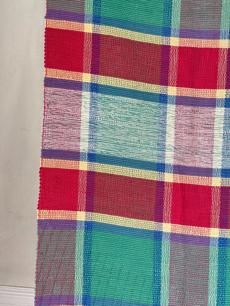 Welcome To The Textile Trunk ~ please follow us on Instagram , we are @textiletrunk ~ ~*~ I’m so excited to share this beautiful handwoven European rag rug! Each piece tells a unique story, woven from strips of leftover fabric, creating a stunning array of colors and textures. Rag rugs like these were cherished household items, made to be both practical and beautiful, offering warmth and personality to any space. Rag rugs have a long history in European homes, particularly in rural areas where resourcefulness was essential. These rugs were traditionally made using remnants of old clothing or fabric scraps, repurposed into durable and decorative floor coverings. Each rug reflects the creativity and skill of its maker, with patterns that vary from simple stripes to intricate designs. This tradition of upcycling materials speaks to the timeless appeal of sustainability, a value we hold dear today! This charming rug would be perfect for a farmhouse, cottagecore, or rustic interior, adding a touch of history and warmth to your space. Use it as a runner, accent rug, or wall hanging—it’s as versatile as it is lovely! Not only do I feel so lucky to share these amazing works of art for use in our homes today, but this also supports eco-friendly practices by giving old materials a new life through upcycling and creative reuse! MEASUREMENTS Approximately 3.4 yards long by 36 inches wide ! Super wide for these beauties!~ CONDITION This textile is in as found, not freshly laundered condition. There are some marks in the bottom half, please use the zoom feature to see them exactly. I've reduced the price of this bolt because I'm not sure that they will clean or not !~It will certainly get lighter with cleaning but may not disappear Otherwise Lovely with only light signs of time and use. This textile can be dry cleaned, easier to take to have it cleaned as it's difficult to do in a home washing machine!~ This bolt has a seam around the middle around 3 yards ish!~ Inventory: RR641