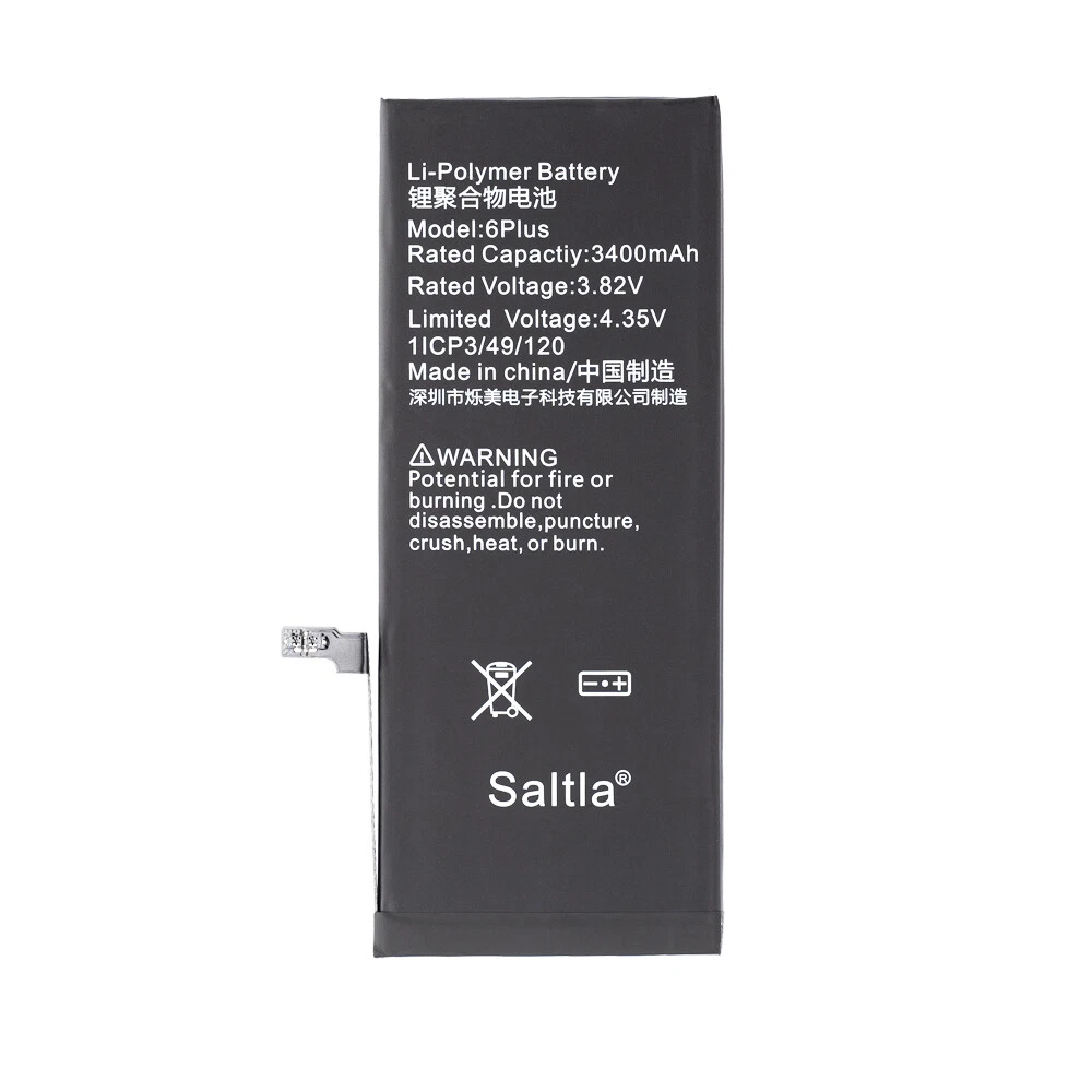 This battery is compatible with iPhone 6 Plus only. Features: • 100% Brand New, Tested, and Never Used • High Quality Replacement Battery for iPhone 6 Plus • Li-ion Battery • Easy Installation • Light Weight, High Capacity and Low Impedance • Best Replacement for the Old Battery with Comparable Standby and Talk Time • Save Your Money and Give Your iPhone a New Life • Compatibility with iPhone 6 Plus (All Carriers) • Battery Type: Lithium Ion • Battery Capacity: 3400mAh • Voltage: 3.82V Package Include 1 x 34 00mAh High Capacity Battery For iPhone 6 Plus 1 x Tools Kit 1 x Adhesive Tape