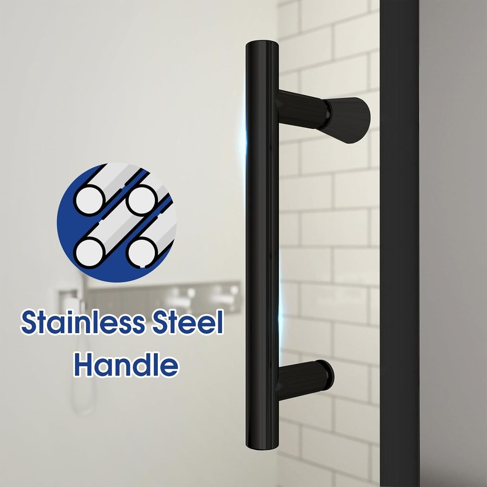 34-35.4" W x 72" H Frameless Pivot Shower Door, 1/4" (6mm) Clear SGCC Tempered Glass Shower Door, Pivot Swing Shower Glass Door in Matte Black Finish, Reversible Installation Item Description About this item Adjustable Sizing: This frameless shower door 34" width and 72" high, the width can be adjusted from 34" to 35 3/8", with a 3/8 inch adjustment at the pivot and 1 inch on the other side, walk-in opening size: 29 19/32 inches. (34-inch shower door fits a 36-inch shower base) Safe and Easy-to-Clean: This pivot shower door is built with 1/4" (6mm) SGCC certified clear tempered glass, ensuring exceptional durability and resistance to pressure and impact. Its smooth surface facilitates effortless cleaning. Magnetic Seal: Our shower door is equipped with a magnetic seal design, providing improved sealing and a smoother, quieter closing experience. This design offers superior water resistance compared to standard seals, effectively separating dry and wet areas and maintaining a dry and clean bathroom. Sturdy and Long-lasting: Our glass shower door is constructed with a premium aluminum frame and a 304 stainless steel handle, both of which are corrosion-resistant and rust-proof. This ensures that your shower door will remain reliable for years to come. Easy Installation: Our pivot swing shower door can be installed on either the left or right side, depending on your needs. The hinges and pivots can be rotated 180 degrees, allowing for easy opening and closing functionality. It comes with detailed installation instructions for your convenience. We recommend professional installation to ensure optimal results. › See more product details Premium stainless steel hardware is resistant to wear and tear, not easy to corrosion, long-lasting. Offers better sealing and a smoother, quieter closing experience than regular water stops. Effectively separating dry and wet areas and maintaining a dry and clean bathroom. The max adjustment range is 3/8 inch and can be adjusted according to the size of your shower space. This design ensures that the shower door can adapt to different sizes of shower rooms, providing more flexible installation options. The max adjustment range is 1 inch and can be adjusted according to the size of your shower space. This design ensures that the shower door can adapt to different sizes of shower rooms, providing more flexible installation options. Payment We accept payment only through PAYPAL Shipping We ship products worldwide through standard express courier service, it will reach within 7 to 10 days to abroad buyers, we ship the product after recieved clear payment and give full information about shipment to the buyer Return We accept product return within 7 to 21 days from delivery date but product should be in original position and not in damaged condition,the return shipping charges will be buyer responsibility