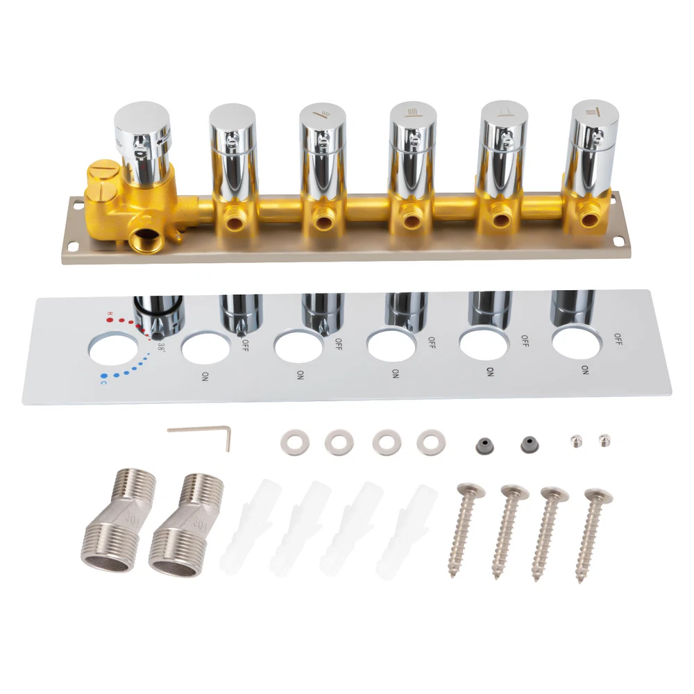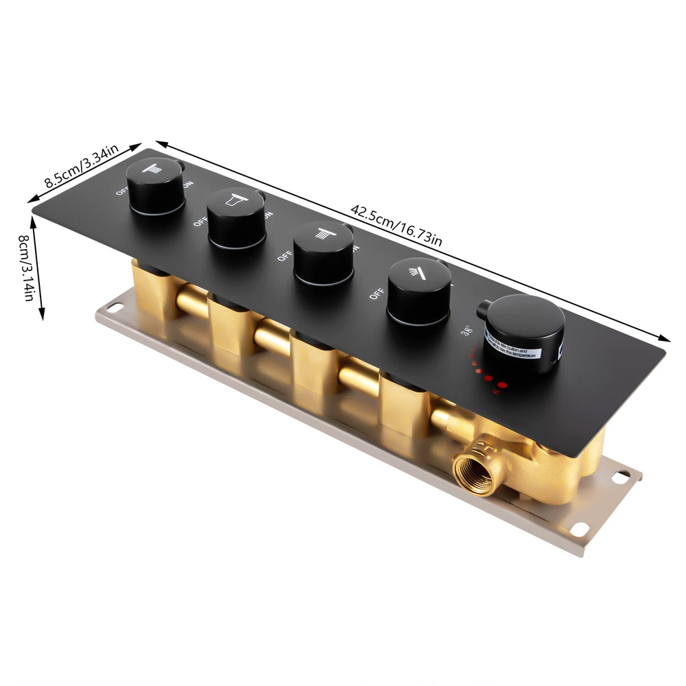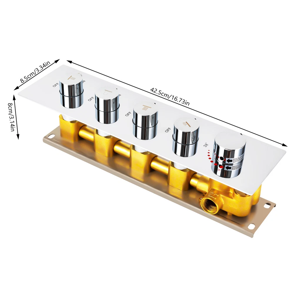 3/4/5 Way Shower Brass Thermostatic Valve Shower Diverter Flow Control Valve Kit Description~ Type 1:3-Function(Silver) Color: Silver Material: Brass Style: Classic Model: HI14006B-3 Surface Treatment: Chrome Function: Rainfall, Waterfall and Hand Shower Installation Mode: Vertical Material Analysis: Cu≥59 % Constant Temperature: 38℃/100.4℉ Hot Water Temperature: up to 52℃/125.6℉ Inlet Thread: 3/4'' Outlet Thread: 1/2'' Embedded Box Depth: 60mm/2.6in Gross Weight: 4.6kg/ 10.14 lbs Net Weight: 4.1kg/ 9.04 lbs Product Size: 38*8.5*8cm/14.96*3.34*3.14 in Package Size: 44*19*18.5cm/ 17.32*7.48*7.28in Type 2:3-Function(Black) Color: Black Material: Brass Style: Classic Model: HI14006B-3 Function: Rainfall, Waterfall and Hand Shower Installation Mode: Vertical Material Analysis: Cu≥59 % Constant Temperature: 38℃/100.4℉ Hot Water Temperature: up to 52℃/125.6℉ Inlet Thread: 3/4'' Outlet Thread: 1/2'' Embedded Box Depth: 60mm/2.6in Gross Weight: 4.6kg/ 10.14 lbs Net Weight: 4.1kg/ 9.04 lbs Product Size: 38*8.5*8cm/14.96*3.34*3.14 in Package Size: 44*19*18.5cm/ 17.32*7.48*7.28in Type 3:4-Function(Silver) Color: Silver Material: Brass Style: Classic Model: HI140068-2 Mounting Type: Vertical Surface Treatment: Chrome Four Functions: Rainfall, Waterfall, Hand Shower, and Body Jet Material Analysis: Cu≥59 % Constant Temperature:38℃/100.4℉ Working Pressure: ≥0.3MPa Inlet Thread: 3/4'' Outlet Thread: 1/2'' Embedded Box Depth: 60mm/2.6inch Gross Weight: 6.2kg/ 13.67lbs Net Weight: 5.5kg/ 12.13lbs Product Size: 42.5*8.5*8cm/16.73*3.34*3.14inch Package Size: 52*19*18.5cm/ 20.47*7.48*7.28inch Type 4:4-Function(Black ) Color: Black Material: Brass Style: Classic Model: HI140068-2 Mounting Type: Vertical Surface Treatment: Electrophoresis Four Functions: Rainfall, Waterfall, Hand Shower, and Body Jet Material Analysis: Cu≥59 % Constant Temperature: 38℃/100.4℉ Working Pressure: ≥0.3MPa Inlet Thread: 3/4'' Outlet Thread: 1/2'' Embedded Box Depth: 60mm/2.6inch Gross Weight: 6.2kg/ 13.67lbs Net Weight: 5.5kg/ 12.13lbs Product Size: 42.5*8.5*8cm/16.73*3.34*3.14inch Package Size: 52*19*18.5cm/ 20.47*7.48*7.28inch Type 5:5-Function(Silver) Model: HI14008A-1 Material: Brass Color: Silver Finish Type: Chrome Plated 5 Functions: Rain Shower, Waterfall, Side Spray, Handheld and Blank Installation: Concealed, Vertical Cold Water Temperature: 5°C-29°C (41℉-84℉) Hot Water Temperature: 50°C-80°C(122℉-176℉) Working Pressure: 0.3-1.0Mpa Inlet Connection Size: G3/4 Inches Outlet Connection Size: NPT1/2 Inches Valve Type: Diverter, Thermostatic Package Size: 64.5*18*21cm/25.39*7.09*8.27inch Product Size: 49*13*9cm/19.29*5.11*3.54 inch Gross Weight: 8.2kg/18.08lbs Net Weight: 7.52kg/16.58lbs Type 6:5-Function(Black ) Model: HI14008A-1 Material: Brass Color: Black Finish Type: Chrome Plated 5 Functions: Rain Shower, Waterfall, Side Spray, Handheld and Blank Installation: Concealed, Vertical Cold Water Temperature: 5°C-29°C (41℉-84℉) Hot Water Temperature: 50°C-80°C(122℉-176℉) Working Pressure: 0.3-1.0Mpa Inlet Connection Size: G3/4 Inches Outlet Connection Size: NPT1/2 Inches Valve Type: Diverter, Thermostatic Package Size: 64.5*18*21cm/25.39*7.09*8.27inch Product Size: 49*13*9cm/19.29*5.11*3.54 inch Gross Weight: 8.2kg/18.08lbs Net Weight: 7.52kg/16.58lbs tu1 Payment Delivery details Terms of sales About us Contact us Payment We accept ebay payment 。 Fees such as import duties, taxes are not included in the item price or shipping costs. These charges are the buyer's responsibility. Delivery details Shipping: 2-9 working days to: USA Terms of sales We maintain high standards of excellence and strive for hundred percent customer satisfaction. Feedback is very important to us. We hope that you contact us immediately before you give neutral or negative feedback, so that we can address your concerns. It is impossible to address issues if we do not know about them! About us Your satis faction is our ultimate goal. We work hard to earn your trust and future business. Our certified technicians have tested each item before shipping. The unit comes with 1 year limited warranty on all manufacturing defects. a) If you receive a defective item, you may return it or ask for a discount. Please contact us within 14 days after you receive the package. b) What you returned must be intact and in its original packaging as re? u. Customer is responsible for shipping costs of the returned item. c) We will cover the cost of shipping back t with the shipping rate indicated in the registration page. We will send you a new unit or refund the full payment you paid. Thank you. Contact us Business Hour Business Hour: Monday To Friday: 8:30 AM to 5:00 PM (Beijing China time) Due to time zones, our reply to your questions may not be immediately. But within above working time, we will reply your email within 24 hours. If it's non-workdays, please kindly be patient and wait till Monday. Please contact us with ebay message. Please feel free to contact us if you have any questions. Monday To Friday: 8:30 AM to 5:00 PM (Beijing China time) Due to time zones, our reply to your questions may not be immediately. But within above working time, we will reply your email within 24 hours. If it's non-workdays, please kindly be patient and wait till Monday. Please contact us with ebay message. Please feel free to contact us if you have any questions. shipping notice Can not ship to Puerto Rico,Alaska/Hawaii Brand ( 品牌 ) SENDERPICK Features ★Special Fashion Design★ Bundle Description no OE/OEM Part Number Does not apply MPN ( MPN ) n/a Suitable For Shower Type Shower Valve Number of Faucet Handles See Item Description Number of Faucet Holes See Item Description Material Brass Finish Brass Handle Type See Item Description Installation Wall Mounted Shower Head Shape See Item Description Shower Head Included No Item Width See Item Description Faucet Hole Spacing See Item Description Item Length See Item Desc