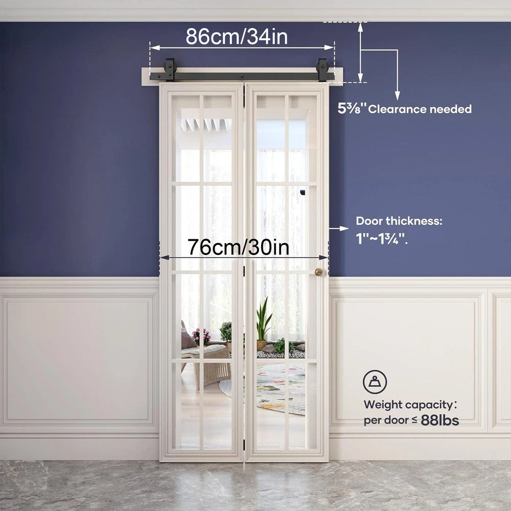 Store category Sign Up Now ! You may also like Product Description Bullet Points: Wide Range of Applications: This Rail Sliding Barn Door provides versatile elegance to your living room, dining room, or study, goodly saving space in various life situations. Its design concept enhances the ambiance of your space, making it perfect for different applications. Effortless Glide & Seal: Equipped with 2x scroll wheels and 3x hinges, our Rail Sliding Barn Door ensures a smooth operation, while the 1x sealing strip provides a warm fit, meeting your needs with sufficient quantity. Reliable Endurance: Crafted from high-quality carbon steel, this sliding barn door rail ensures a wear-resistant, solid, and enduring addition to your space. Install with Ease: Our Rail Sliding Barn Door kit includes detailed instructions and clear pictures to guide you intuitively through the streamlined setup process. Upgrade your space effortlessly with a quick and easy installation. Good Smoothness: Glide with ease on a 6mm thick track with the reliable bearing and nylon wheel combo of this Rail Sliding Barn Door rating for a high carrying capacity. Practical and durable, perfect for all your heavy-duty sliding needs. With 2*roller swivel stands, it slides smoothly on a solid, 6mm thick track. Pictures and text provide a detailed view of this durable, stylish door. Specifications: Colour: Black Material: carbon steel Track size: about 34 inches/86CM Track splicing method: 3 pieces Scope of application: Door panel thickness 0.5-50MM Packing List: 3*track 2*scroll wheel 2*roller swivel stand 1*roller holder 3*spacers 3*hinge 1*floor rail 1*sealing strip 1*screw pack 1*instruction manual 4*pipe clamp 35mm 4* wood screws Payment Delivery details Terms of sales About us Feedback & DSRs Payment Before you palce an order, please kindly make sure that you have a paypal account. We accept PAYPAL payment only. Payment should be completed within 2 days after auction closed, or unpaid dispute will be filed for an closing auction. An unpaid case will be filled after 4 days. Delivery details We ship to your eBay address. Each package will be shipped to US by UPS Regular Parcel with tracking number. Please check your shipping address carefully before checkout, it can't be changed if order completed. All items will be shipped within 1-2 business day upon receipt of payment.Orders placed on weekend will be shipped within 3 days. If you do not receive your item in 7-10 business days.please contact us immediately for further assistance. We will be responsible for any damages or losses incurred in the shipping process. About us We maintain high standards of excellence FIVE STAR and strive for 100% customer satisfaction! Positive Feedback is very important to us. We hope that you contact us immediately Before you give us neutral or negative feedback, so that we can satisfactorily address your concerns. We promise to offer the lowest price and high quality produce. Our working time: From Monday to Friday(9:30 am to 18:00pm), we don't working on holidays ,hope you can understand and know that , thank you. Please always talk to us via ebay Message. We appreciate your business and look forward to growing our e-Bay sales with satisfied customers. Feedback Contact us If you have any questions, please feel free to contact with us by ebay Message during our business hours ( 9:30a.m. to 5:30 p.m.), or email us through eBay, we will try our best to help you to resolve it. For any presale or after-sale questions,please do feel free to email us! Due to the time difference, each email will be replied within 1 working day,and weekend will be delayed a bit. Feedback