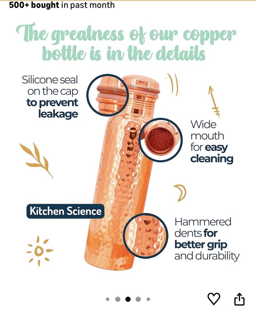 VANSH OVERSEAS Copper Water Bottle,(1Liter), Smooth Finish, Leak-Proof Design